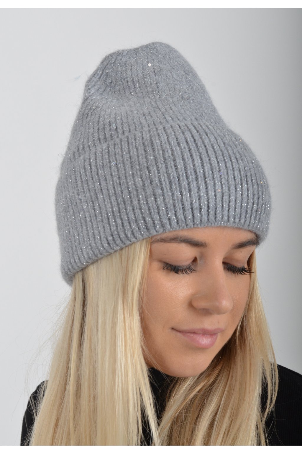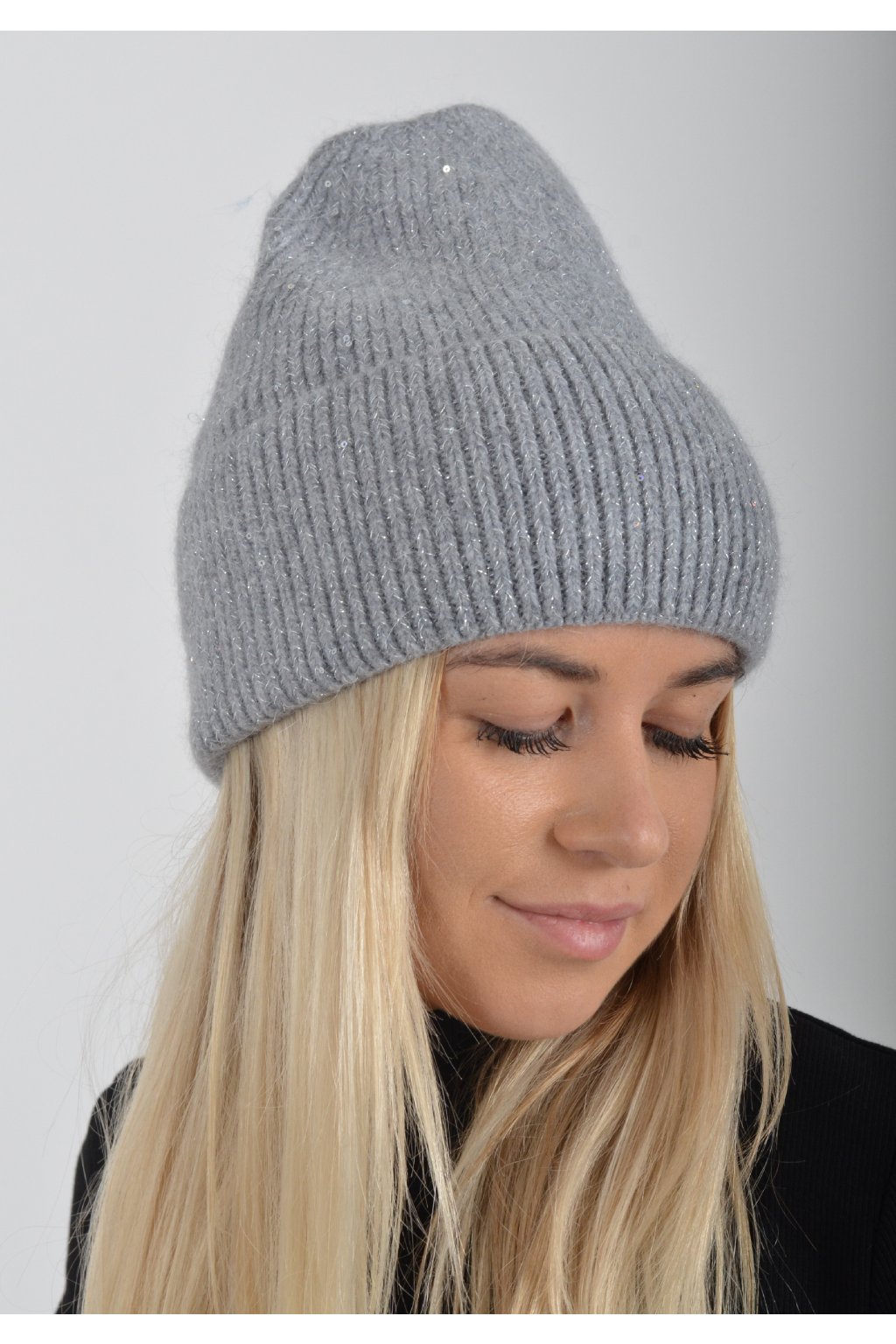 Zimní čepice z příjemného nekousavého materiálu a ozdobnými flitry.
