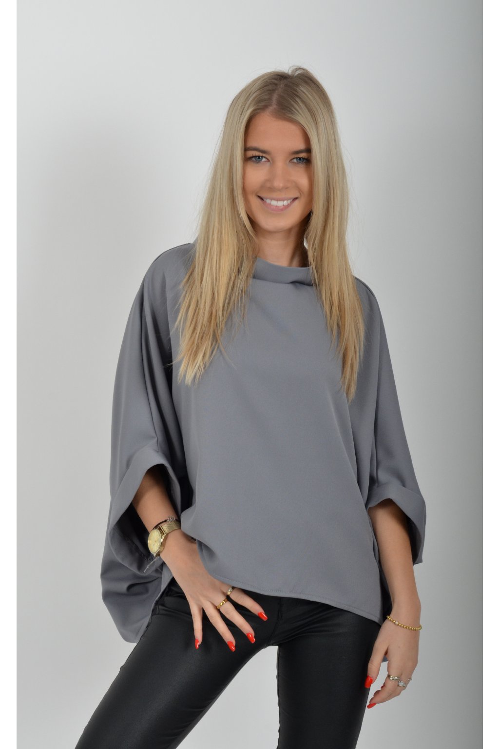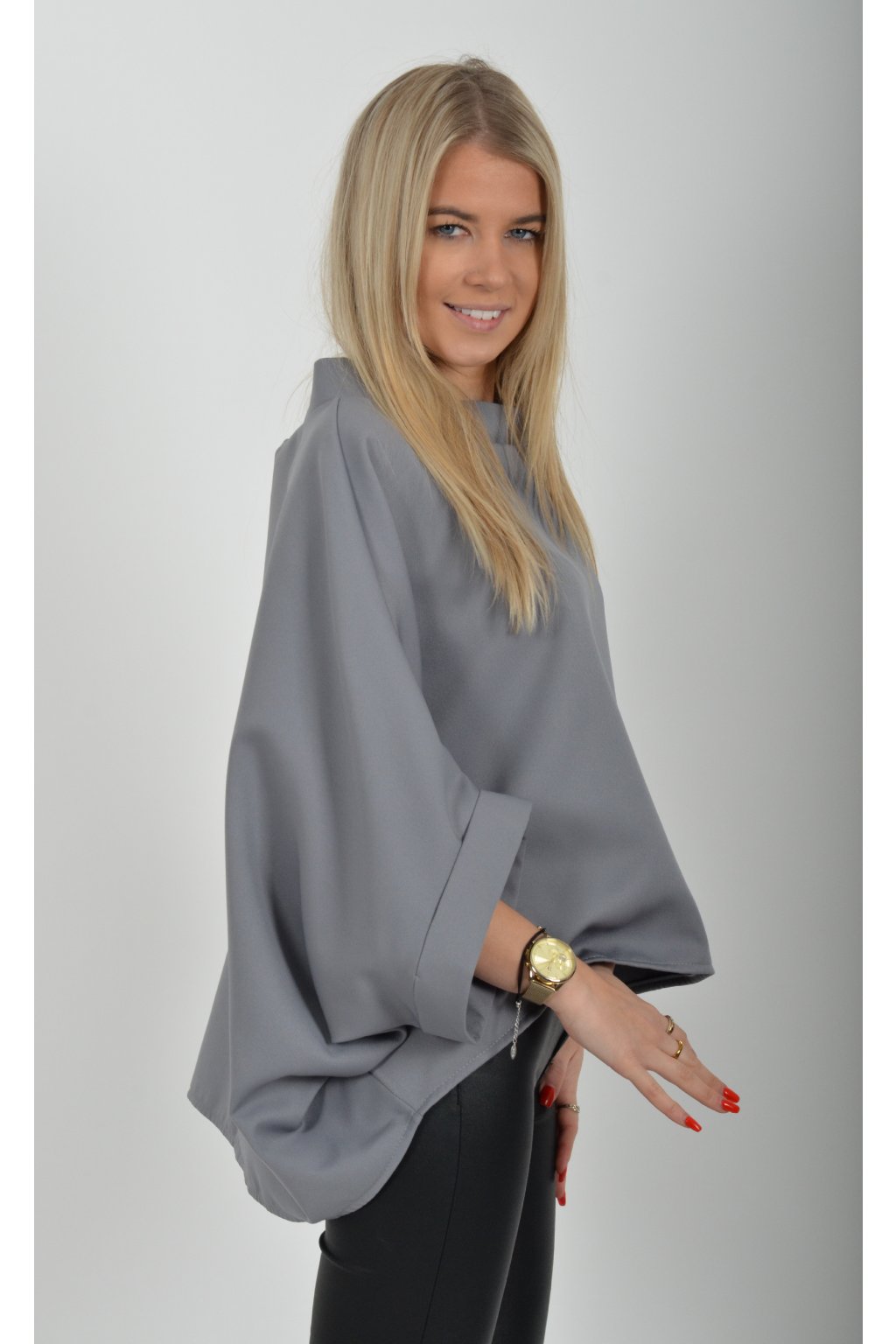Halenka značky Miss City Official s netopýřím rukávem vhodná jak pro společenské události, tak i volnočasové nošení. Je vyrobena z velice příjemného a pevného materiálu. Přední část halenky je kratší než zadní. Je volnějšího střihu.