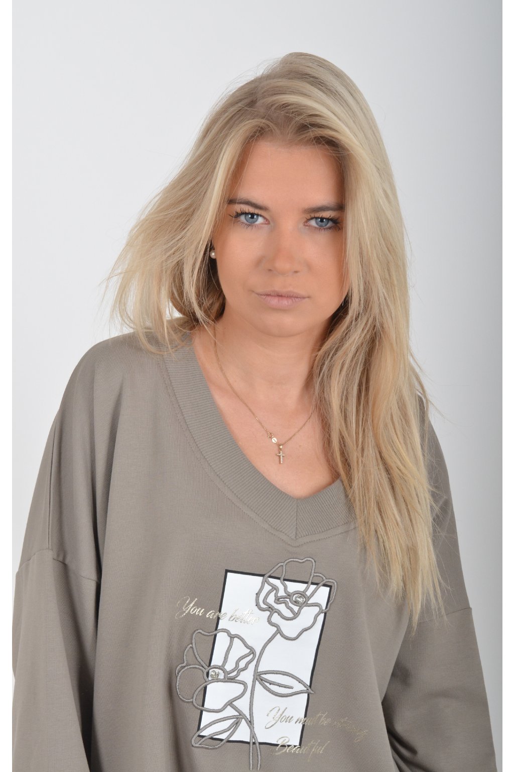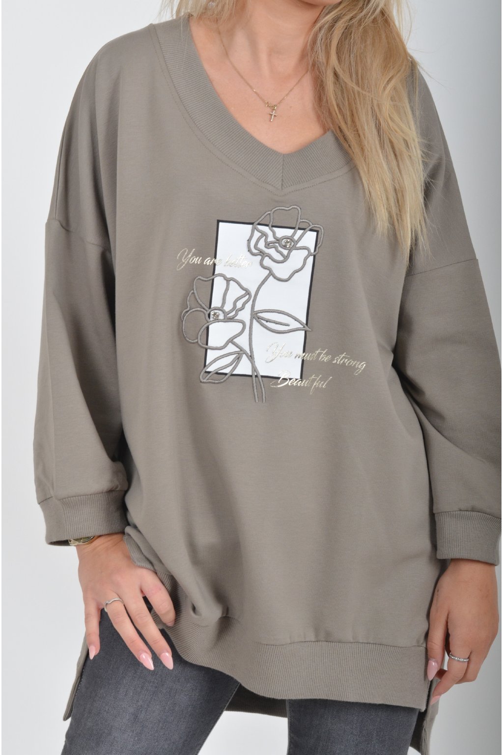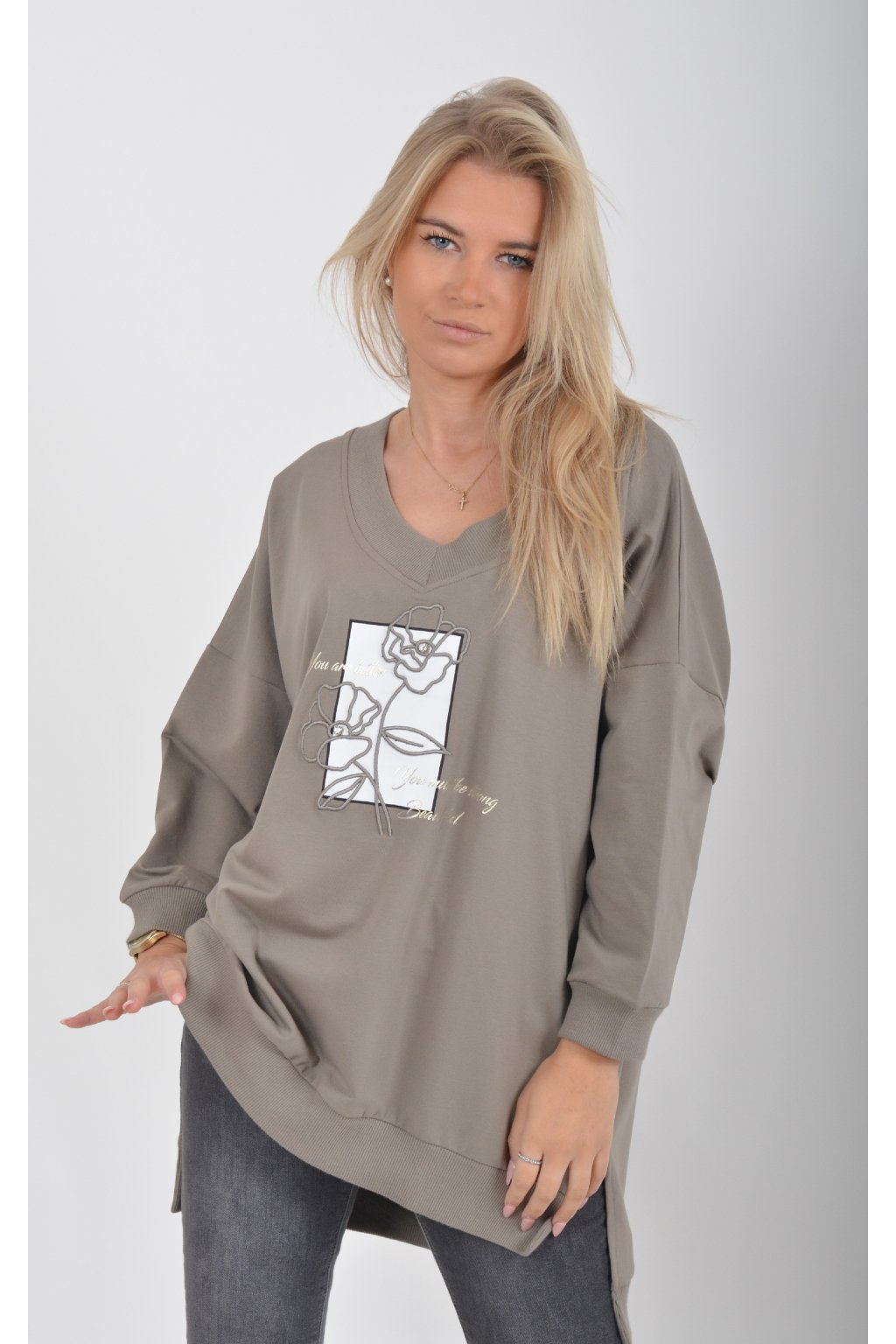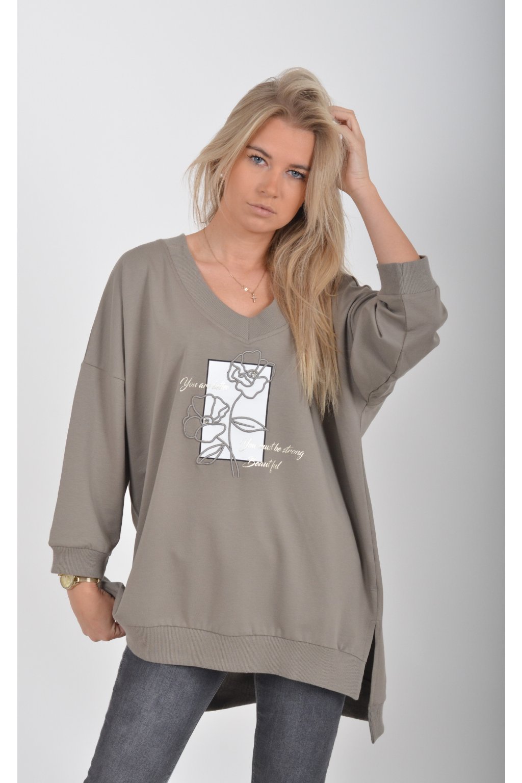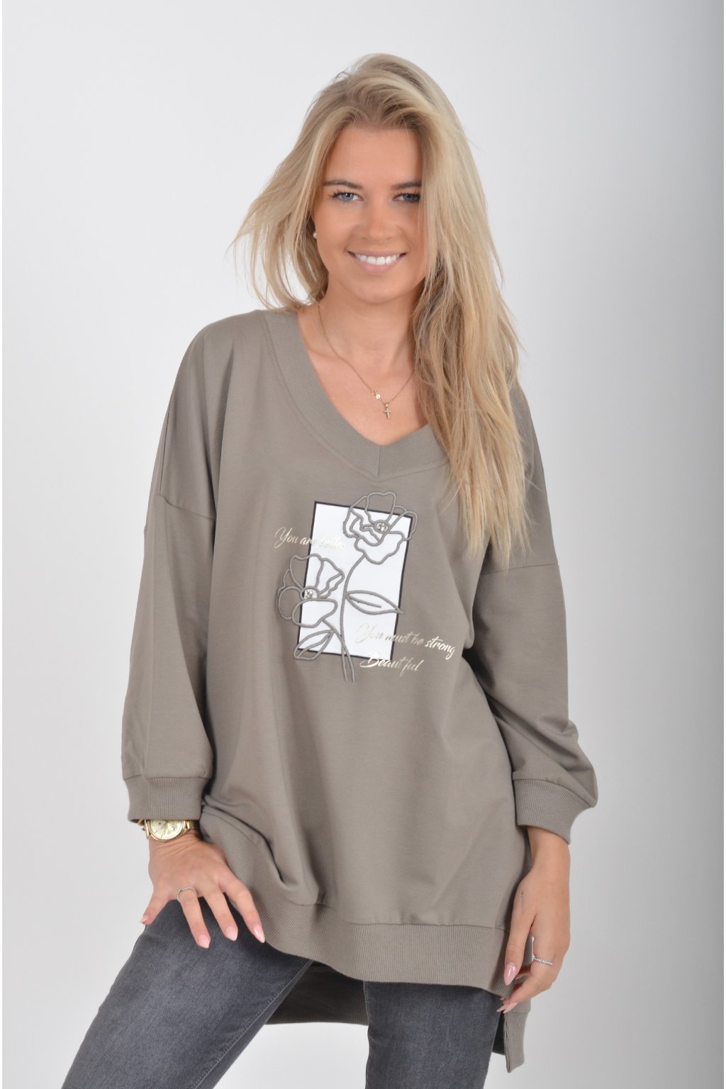 Prodloužená mikina se spadeným rukávem vyrobena z velice příjemné turecké bavlny.