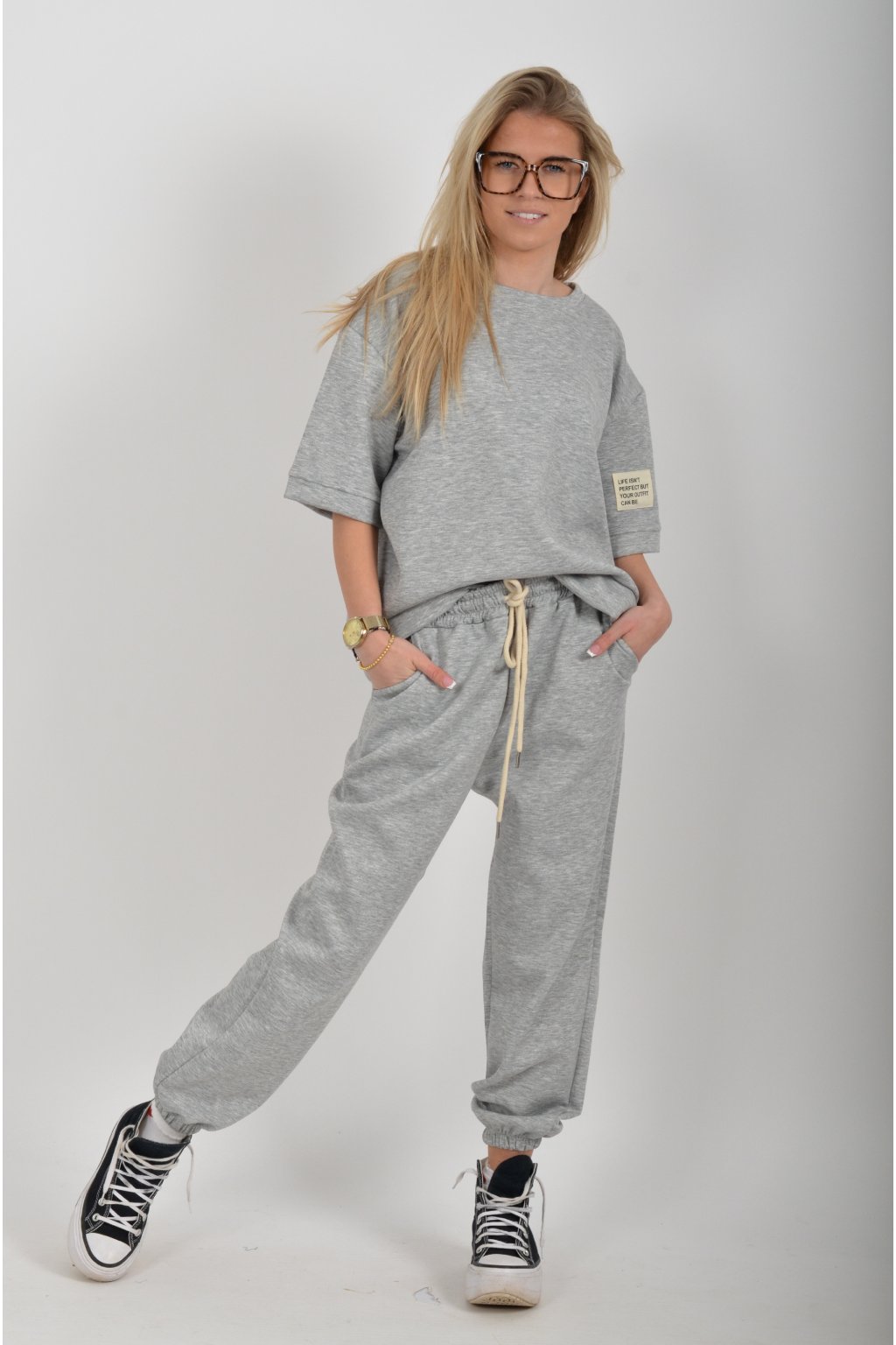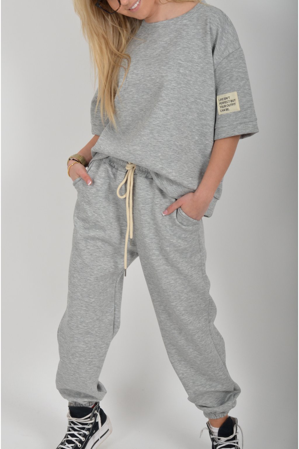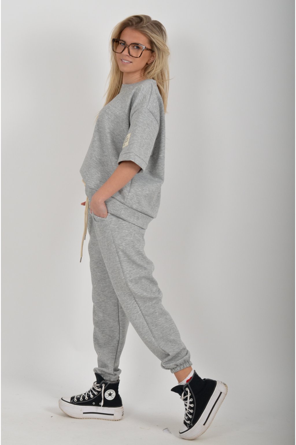 Tepláková souprava vyrobená z velice příjemného materiálu. Tepláky mají na bocích kapsy.