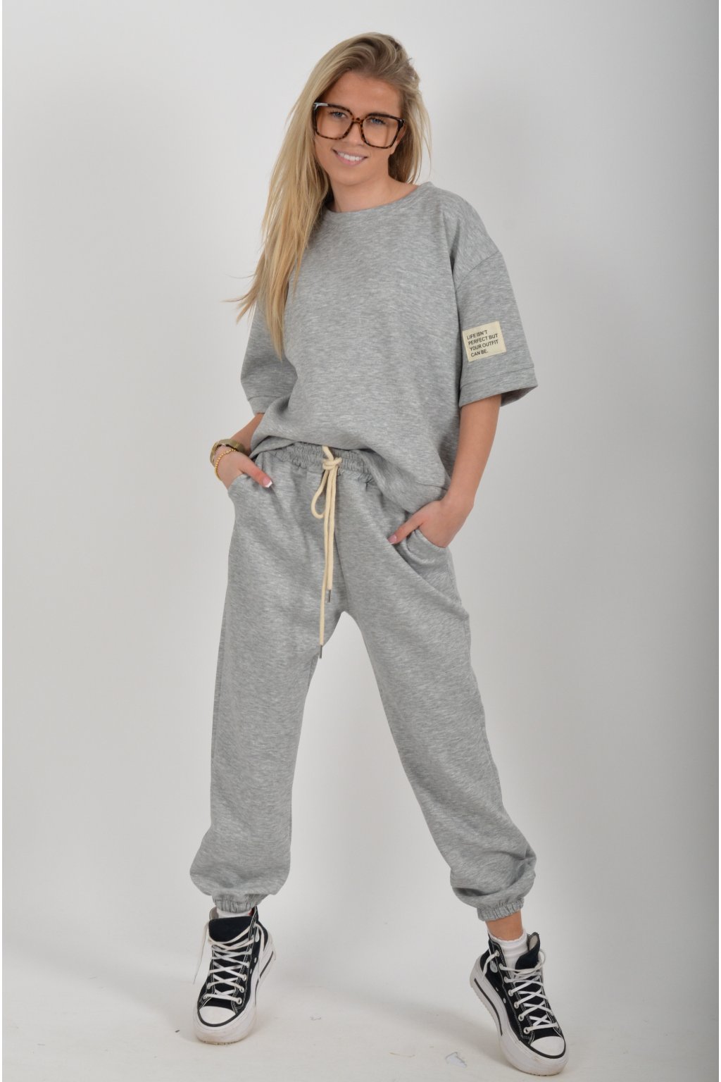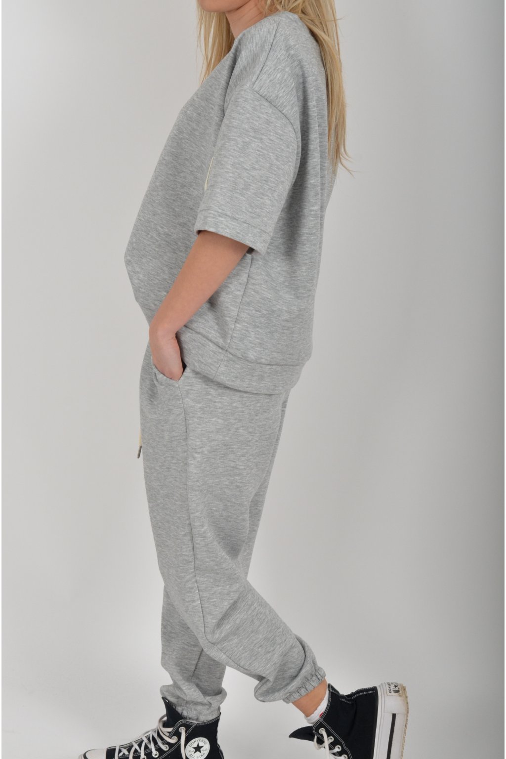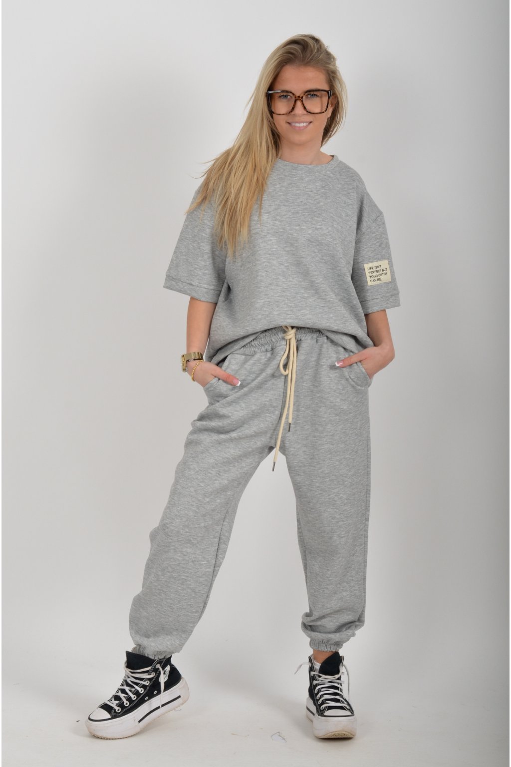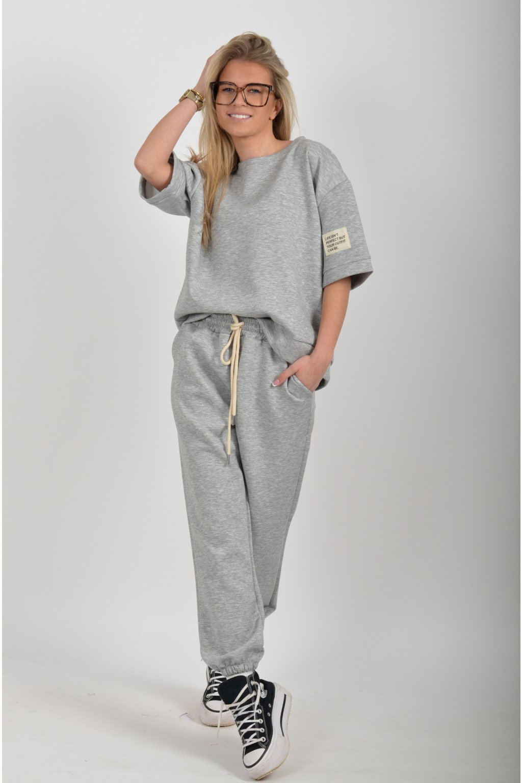 Tepláková souprava vyrobená z velice příjemného materiálu. Tepláky mají na bocích kapsy.