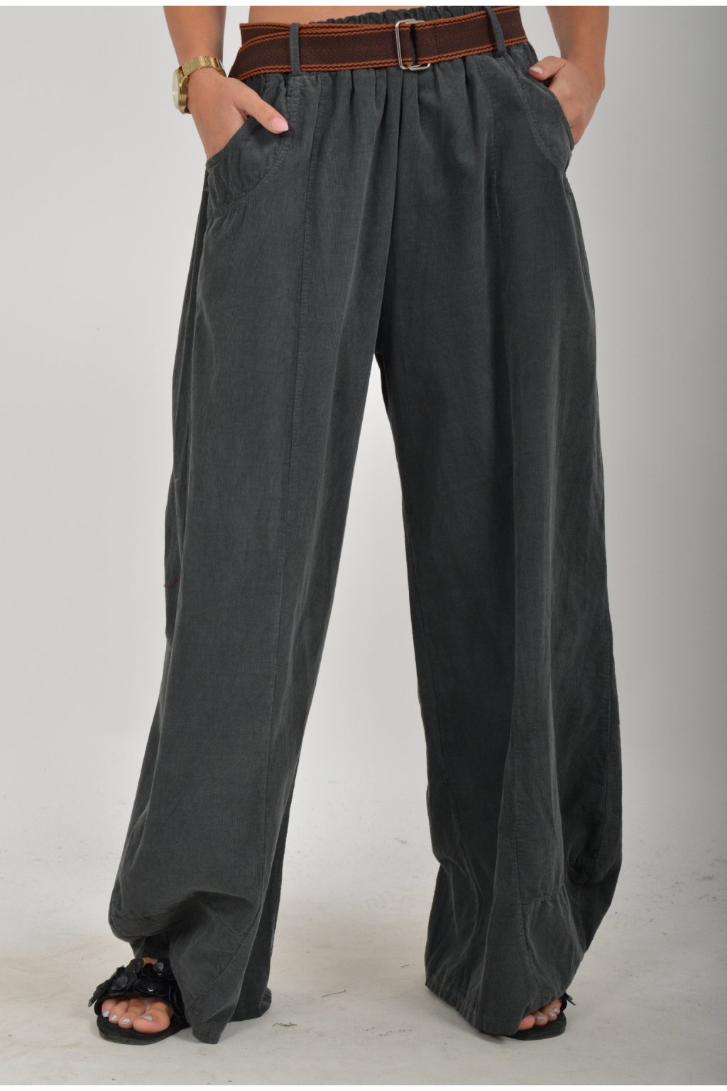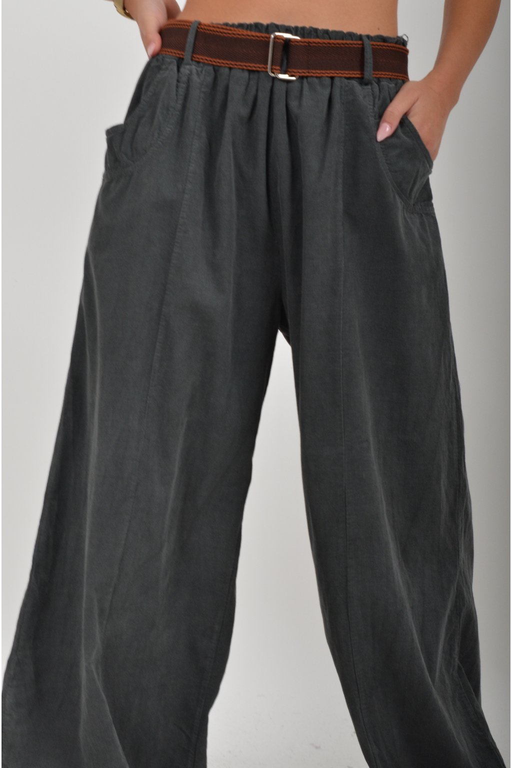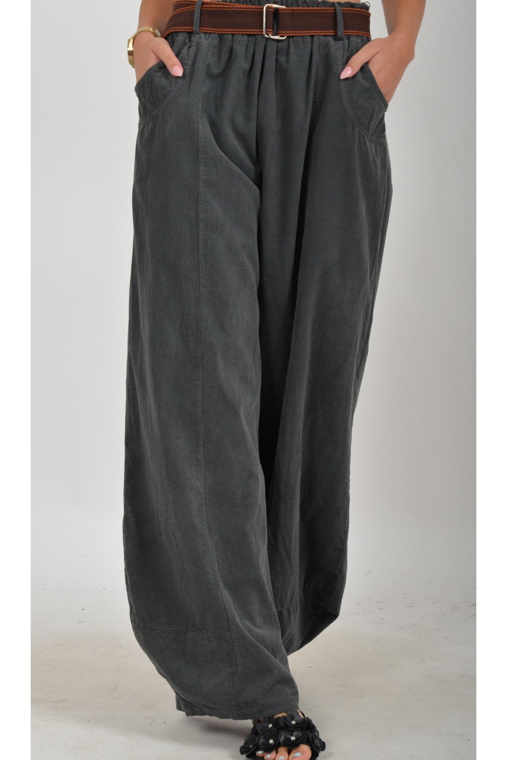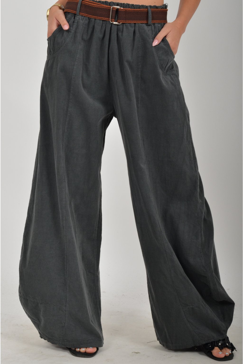 Pohodlné manšestrové kalhoty s kapsami na bocích. V pase mají zapracovanou gumu, součástí kalhot je pásek pro libovolné stažení. Kalhoty jsou z velice příjemného materiálu a jsou vhodné pro každodenní nošení.