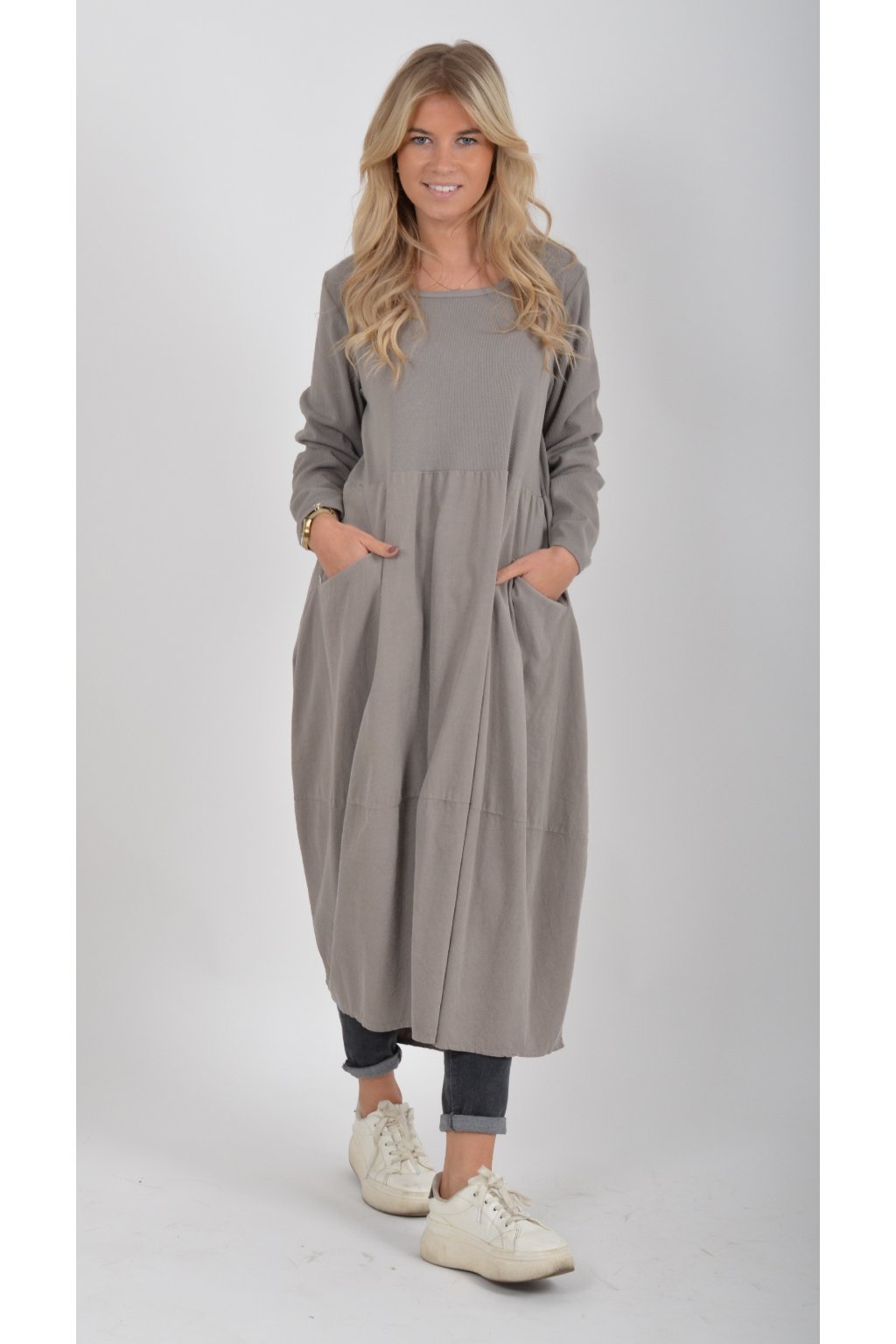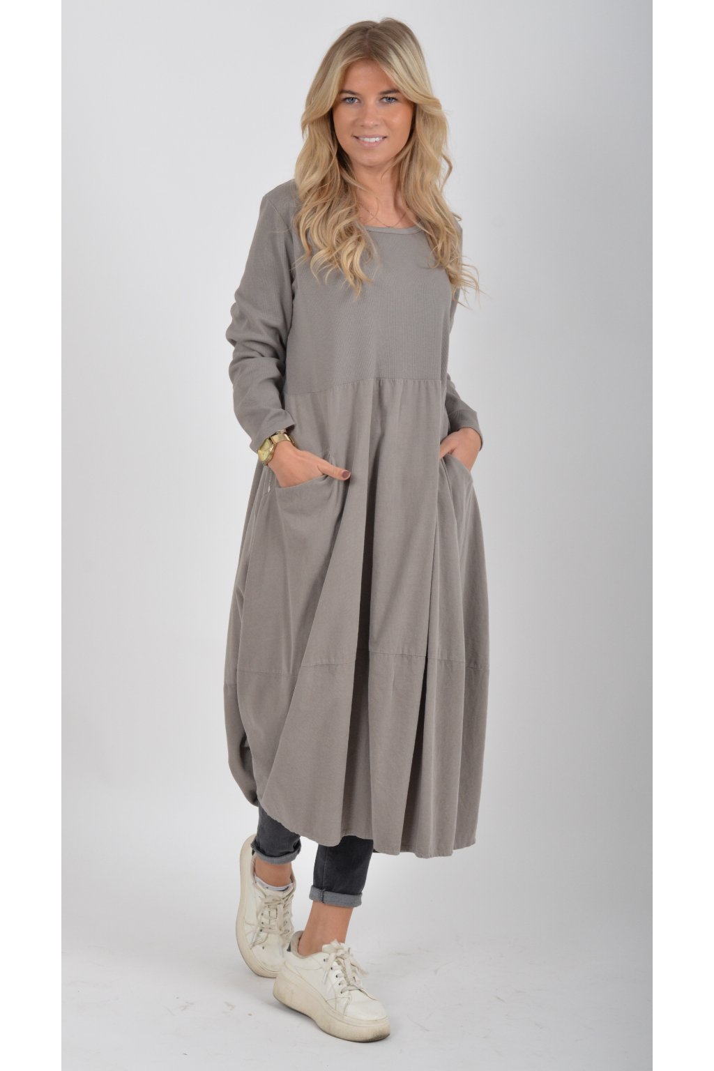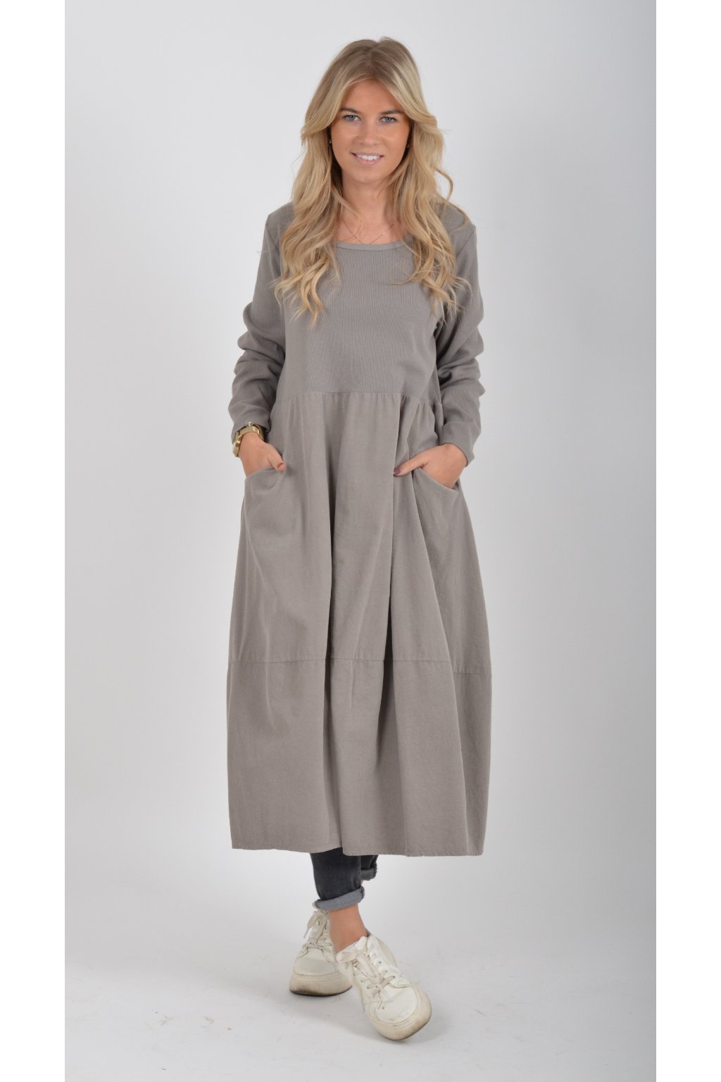Dlouhé manšestrové šaty áčkového střihu s kapsami v přední části. Šaty jsou z velice příjemného materiál a jsou vhodné do podzimních dní.