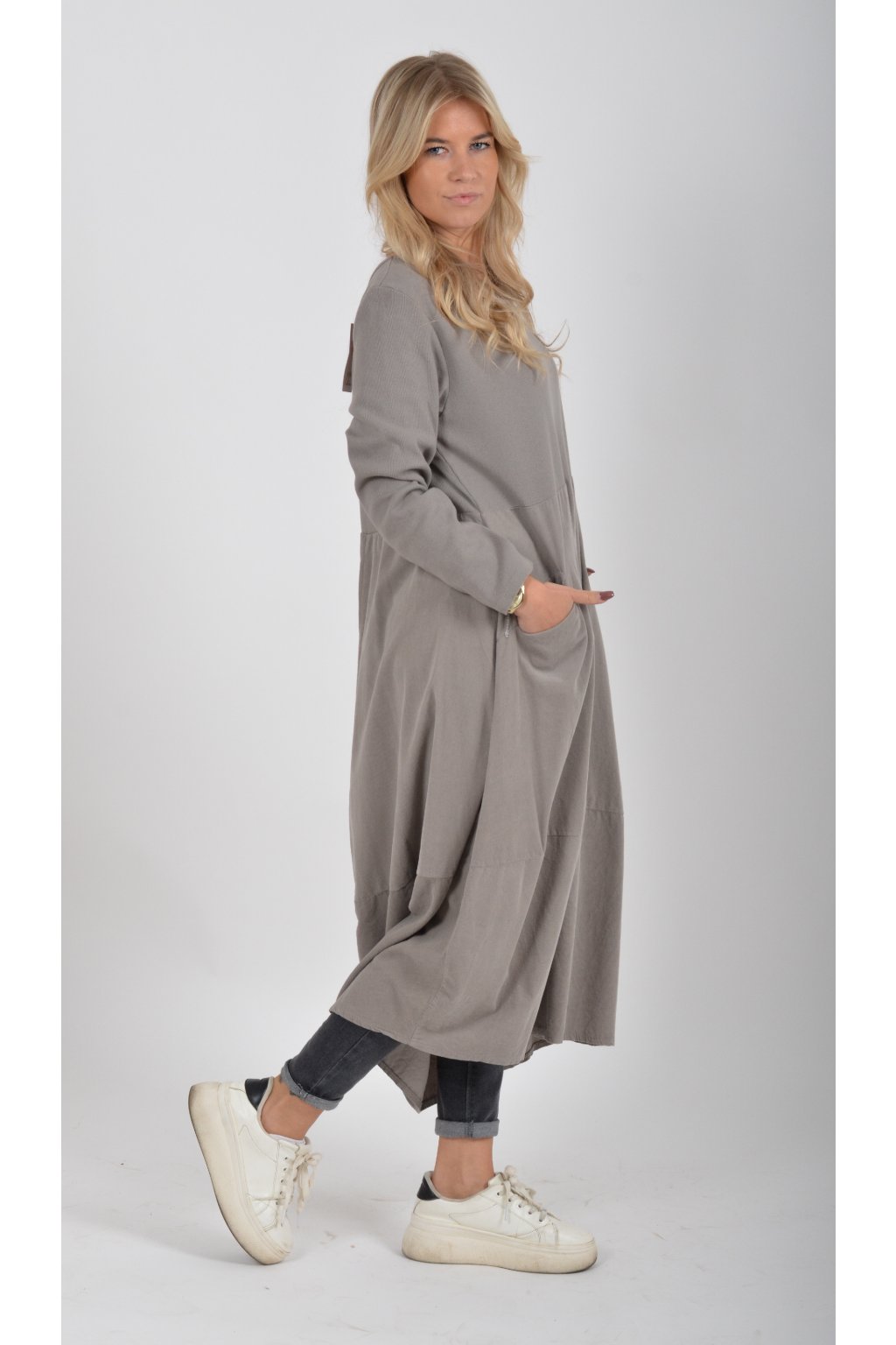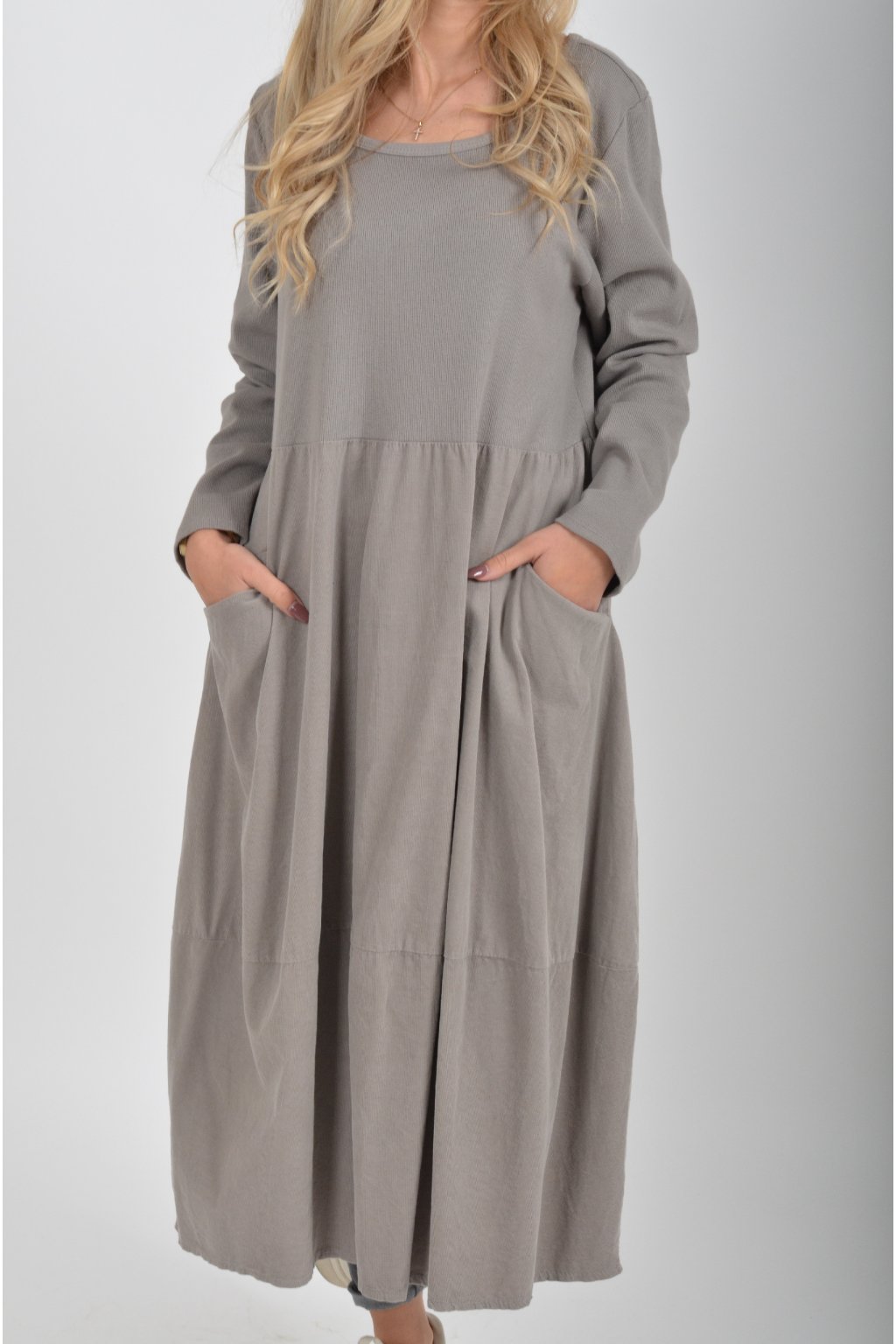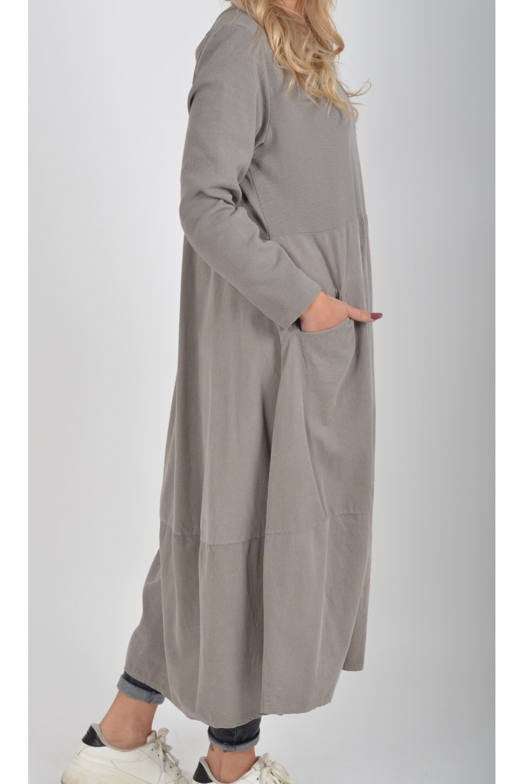 Dlouhé manšestrové šaty áčkového střihu s kapsami v přední části. Šaty jsou z velice příjemného materiál a jsou vhodné do podzimních dní.