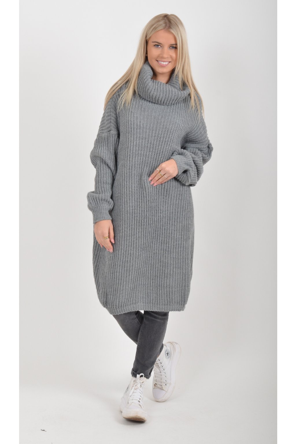Šedé pletené šaty ES6046