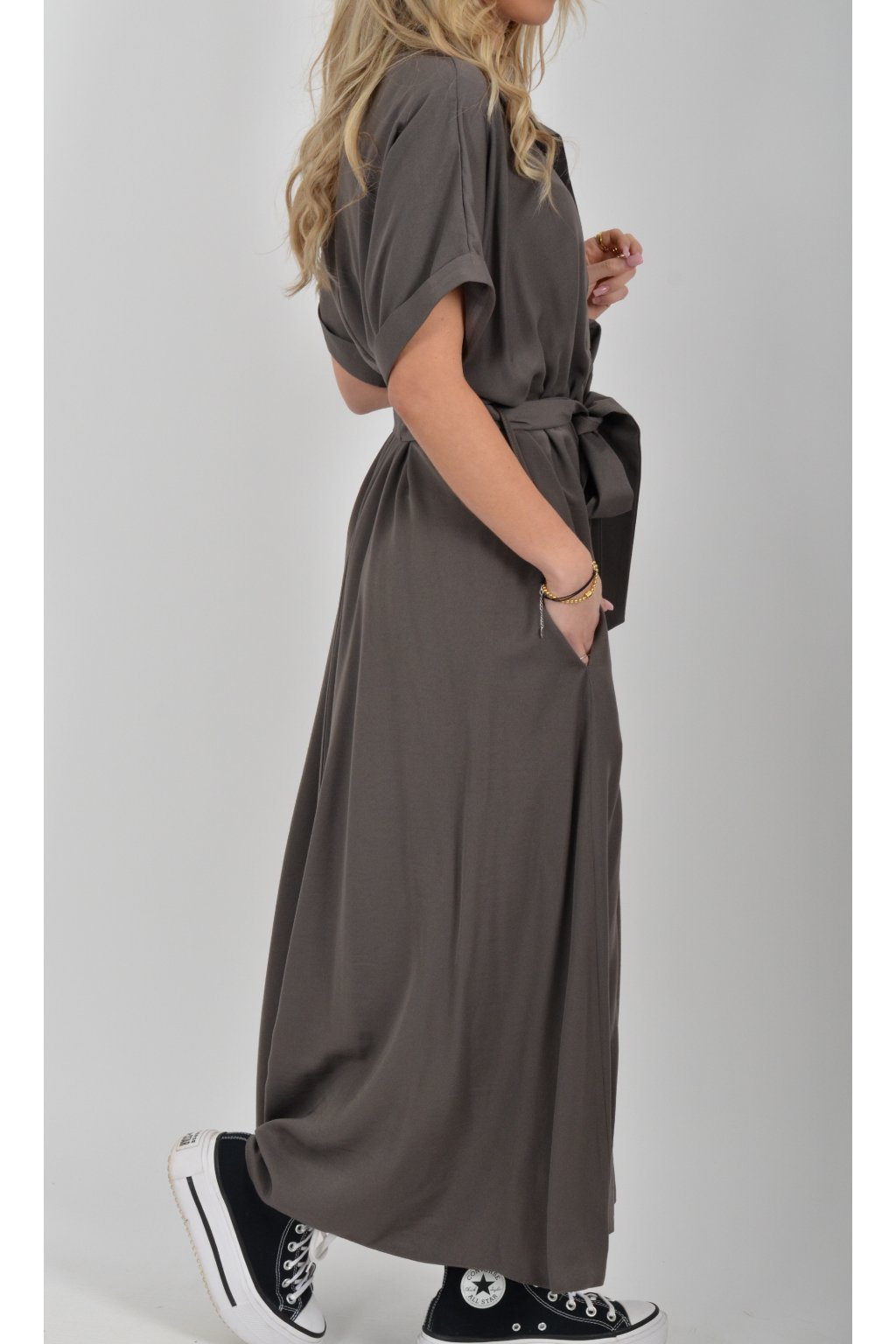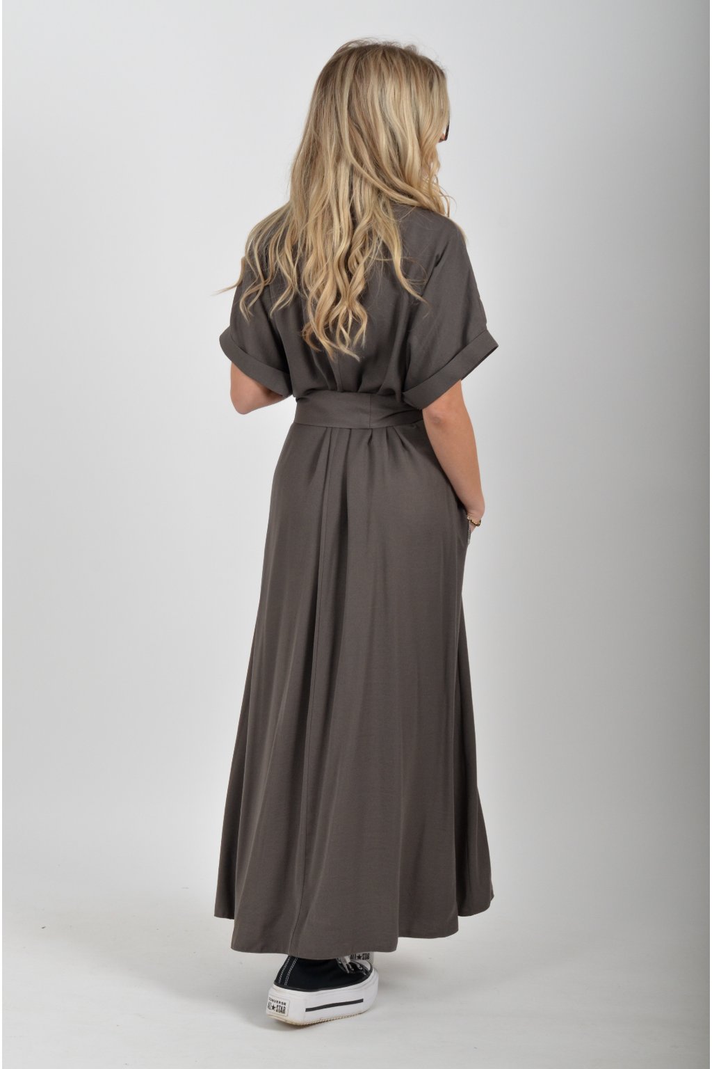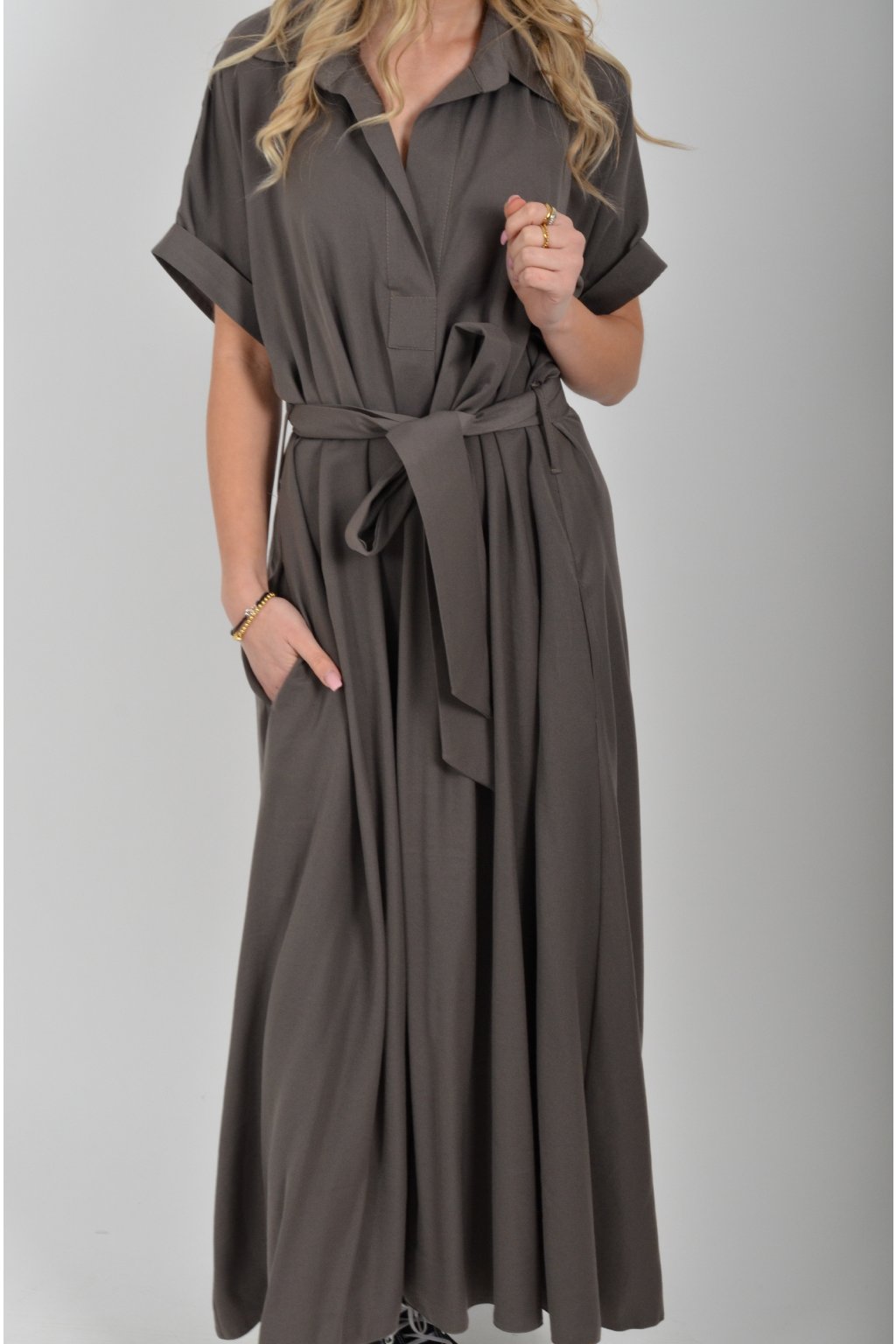 Luxusní šaty od značky La Furia. Mají košilový áčkový střih s rozevlátou sukní, která je v zadní části mírně delší. Šaty mají na bocích kapsy. Jsou vyrobené z velice příjemného prémiového materiálu.
