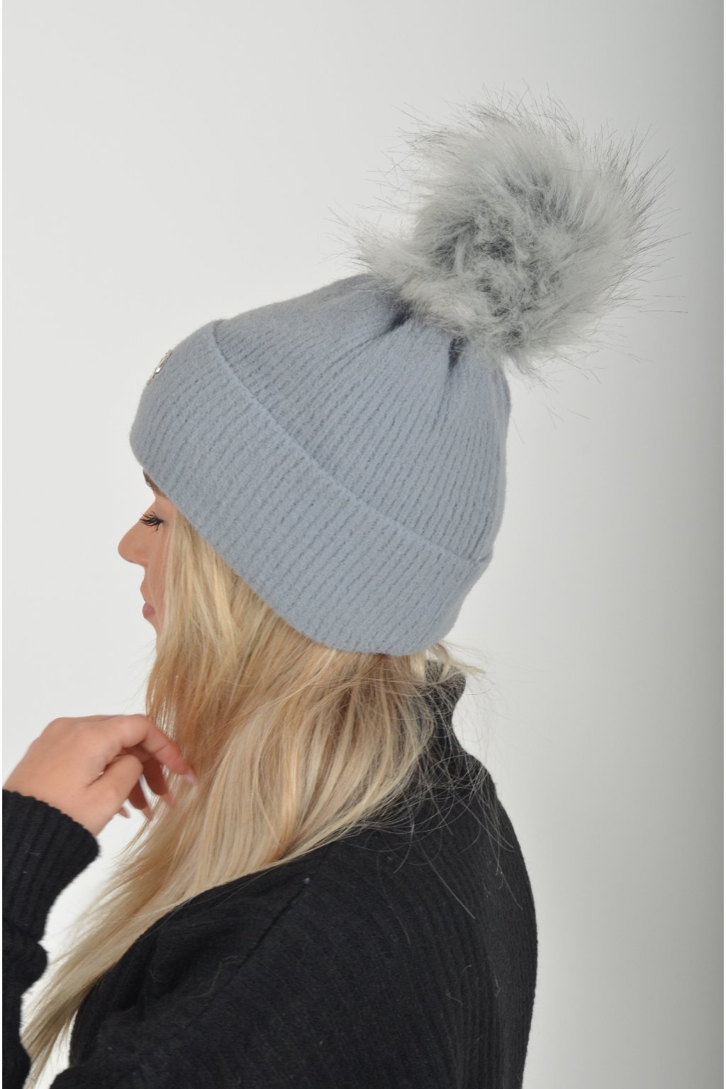 Zimní kulich z příjemného nekousavého materiálu s chlupatou bambulkou.
