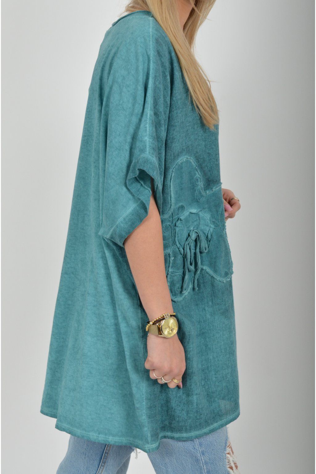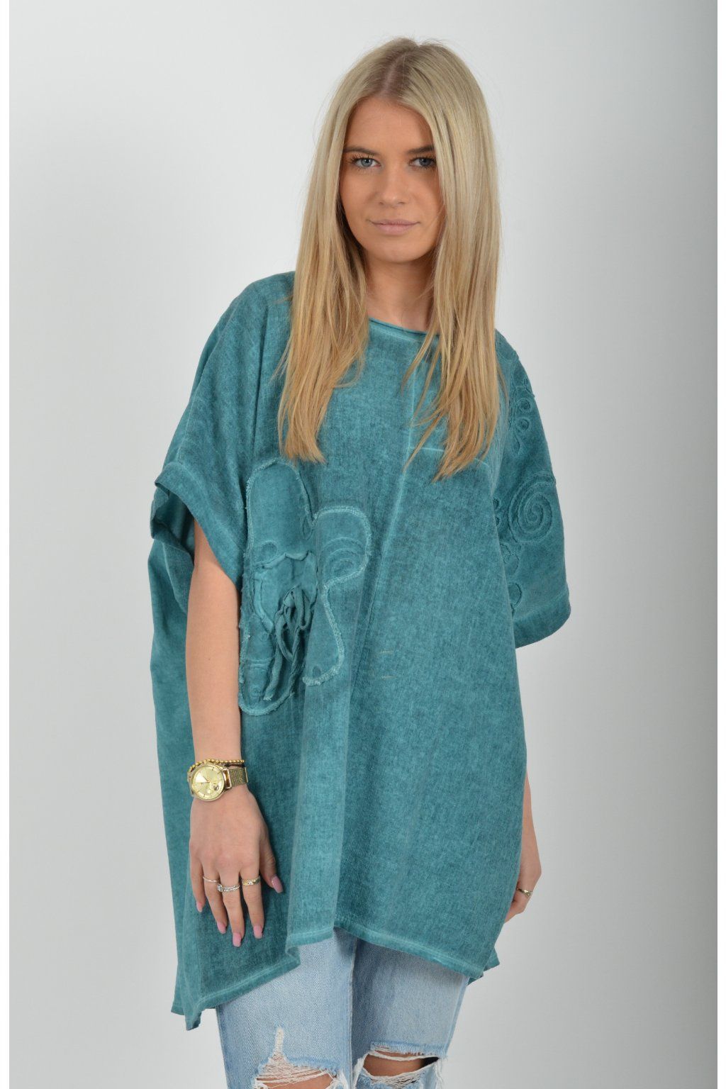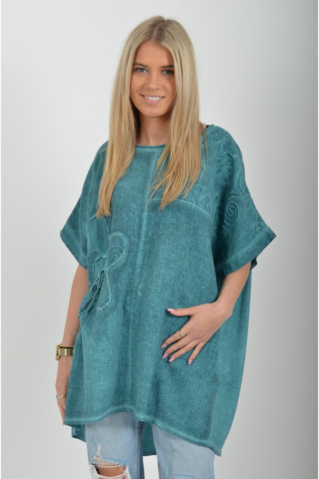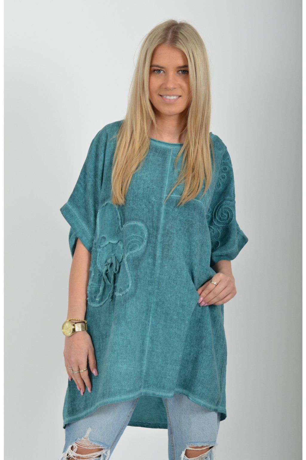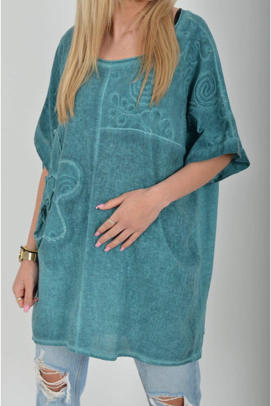 Oversize halenka s krátkým rukávem a vyšívaným vzorem vyrobená z velice příjemné bavlny. Materiál halenky je lehce pružný. Je volnějšího stylu nošení (není na tělo)