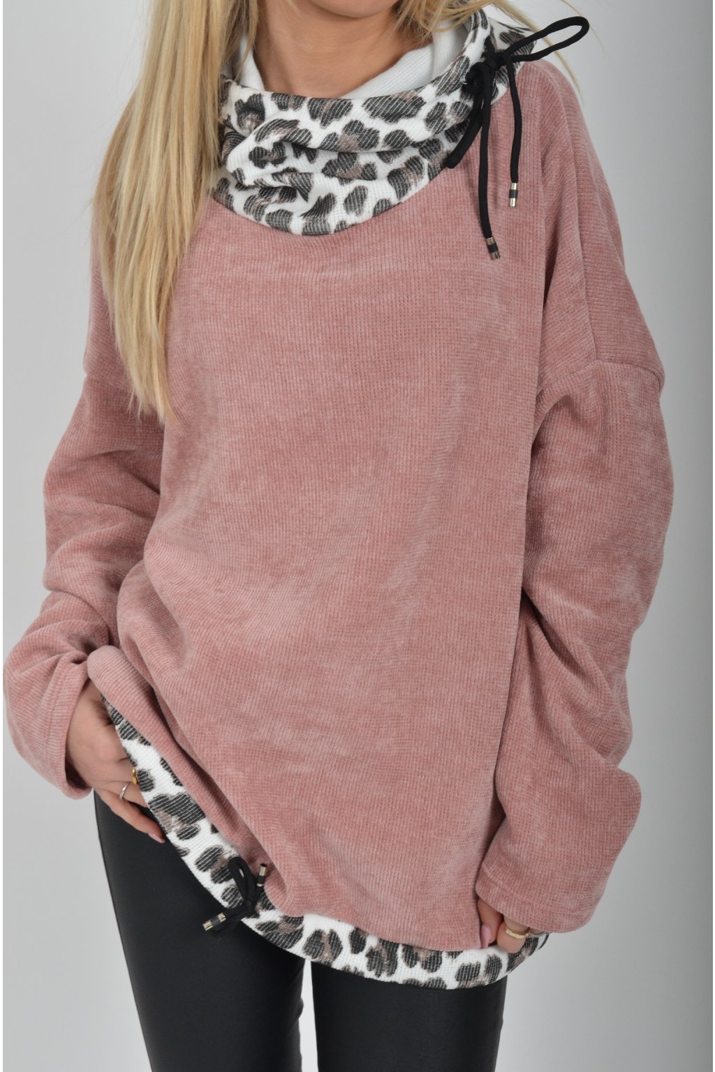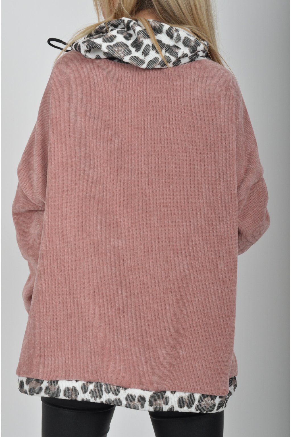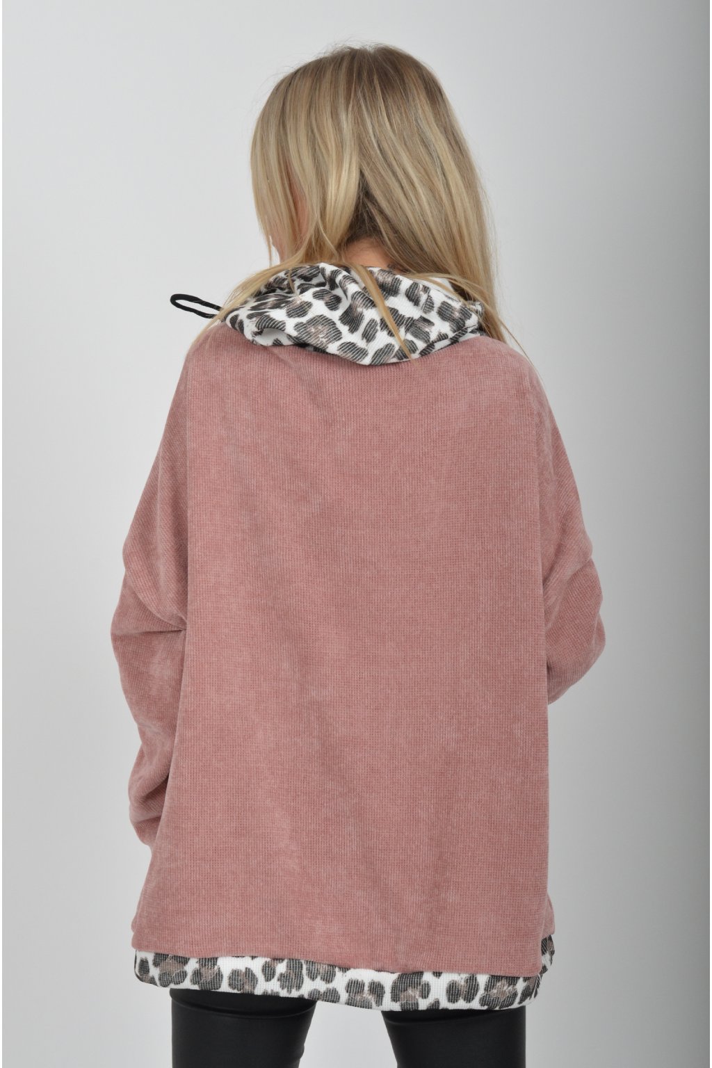 Stylová mikina s ozdobnými lemem a kapucí. Je vyrobena z velice příjemného materiálu. Ve spodní části má zapracovanou tkaničku, která slouží k libovolnému stažení. Hodí se jak k džínům, tak i k legínám. Heboučký materiál zaručí příjemně strávený den.