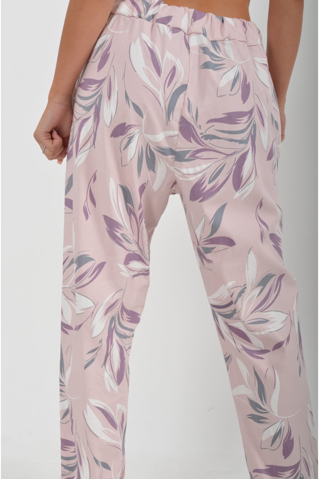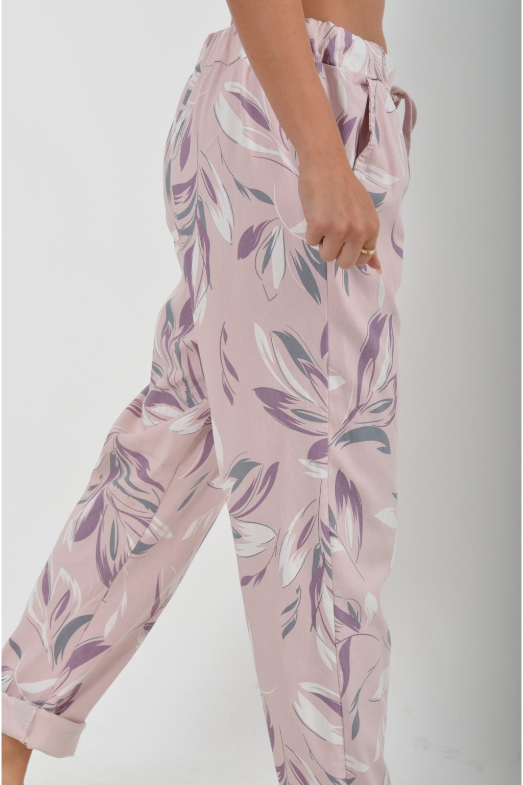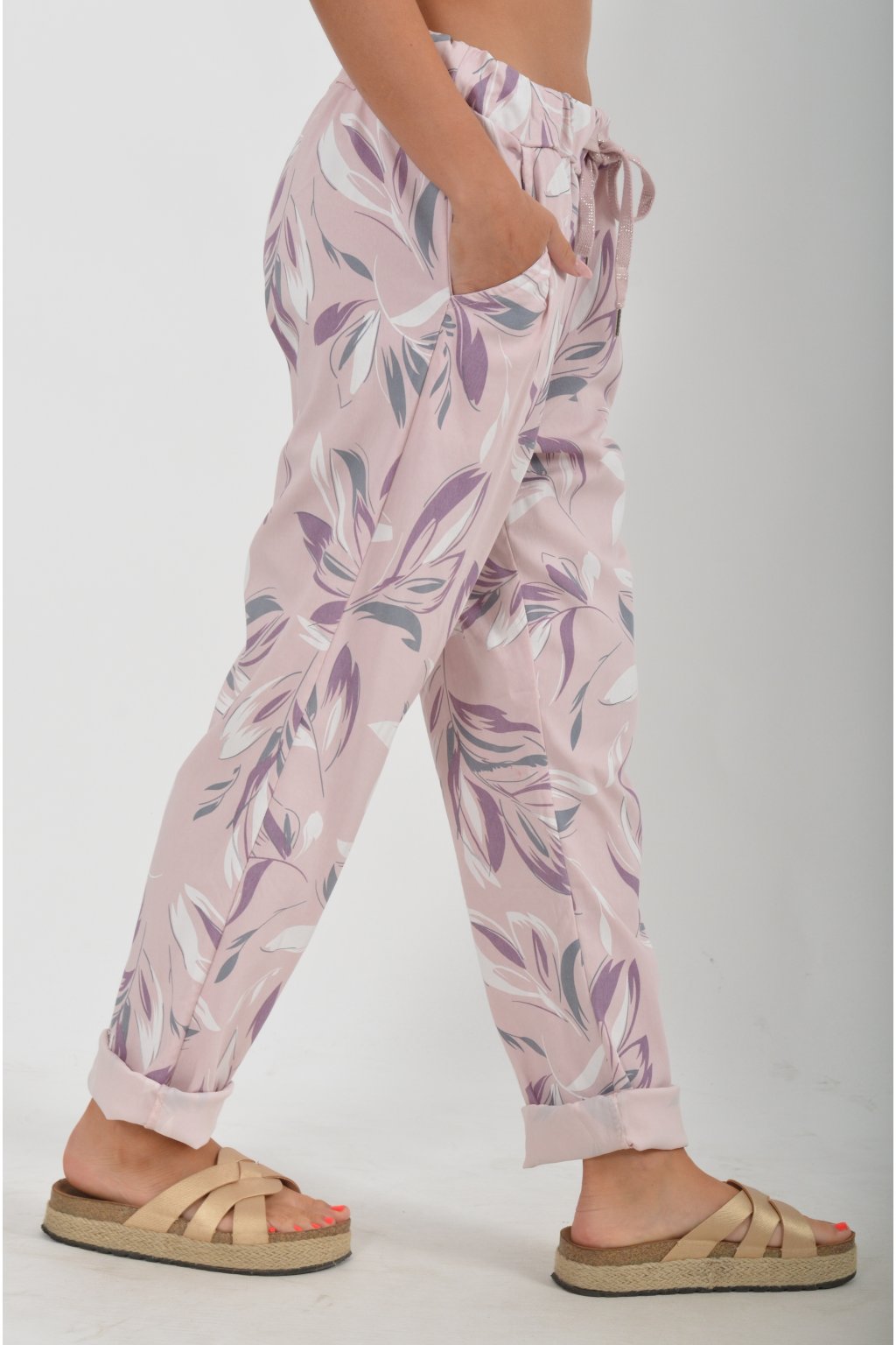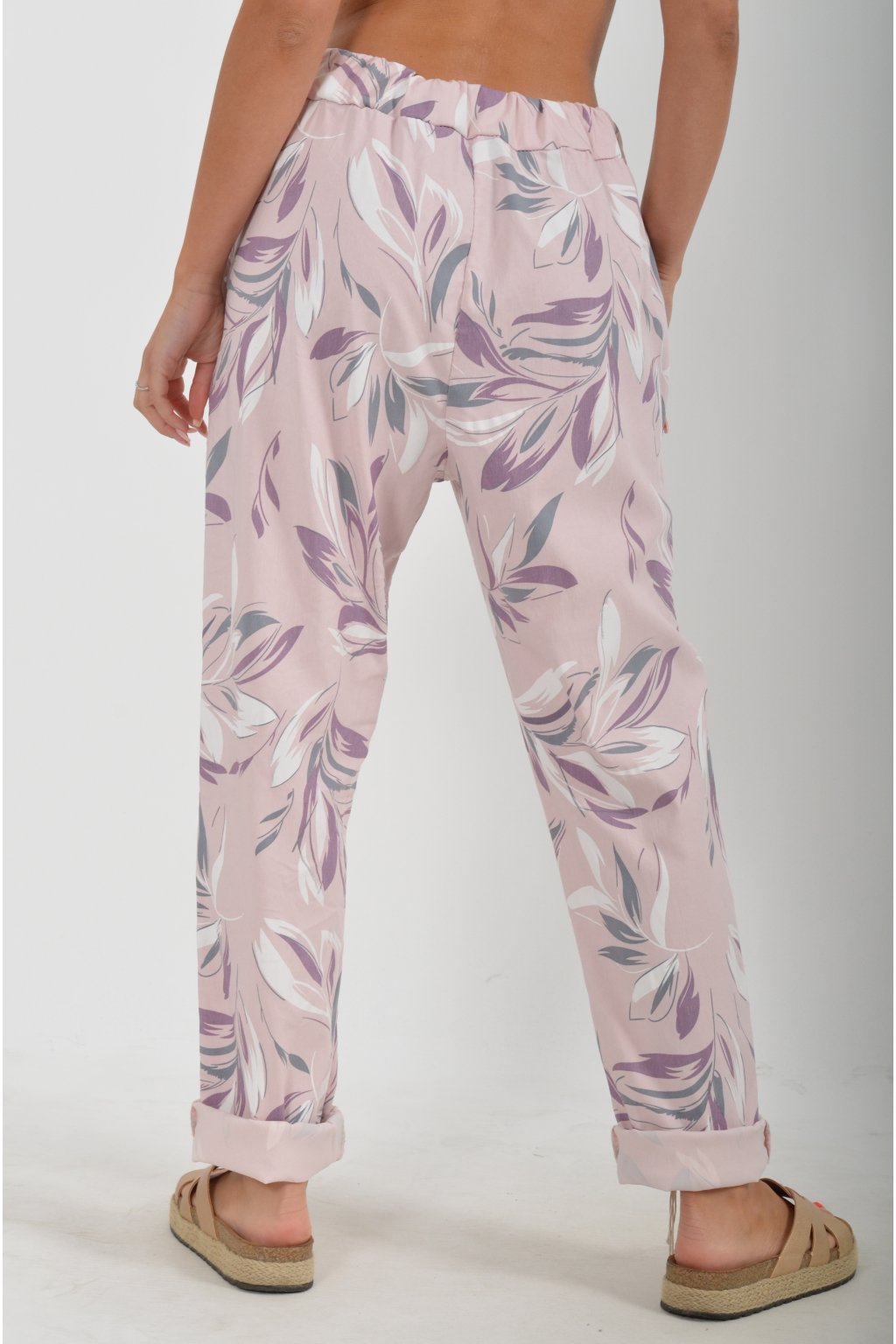 Vzorované kalhoty s kapsami na bocích, které se krásně přizpůsobí postavě, díky podílu elastanu. Jsou vhodné pro každodenní nošení. V pase je zapracovaná guma a tkanička pro libovolné stažení.