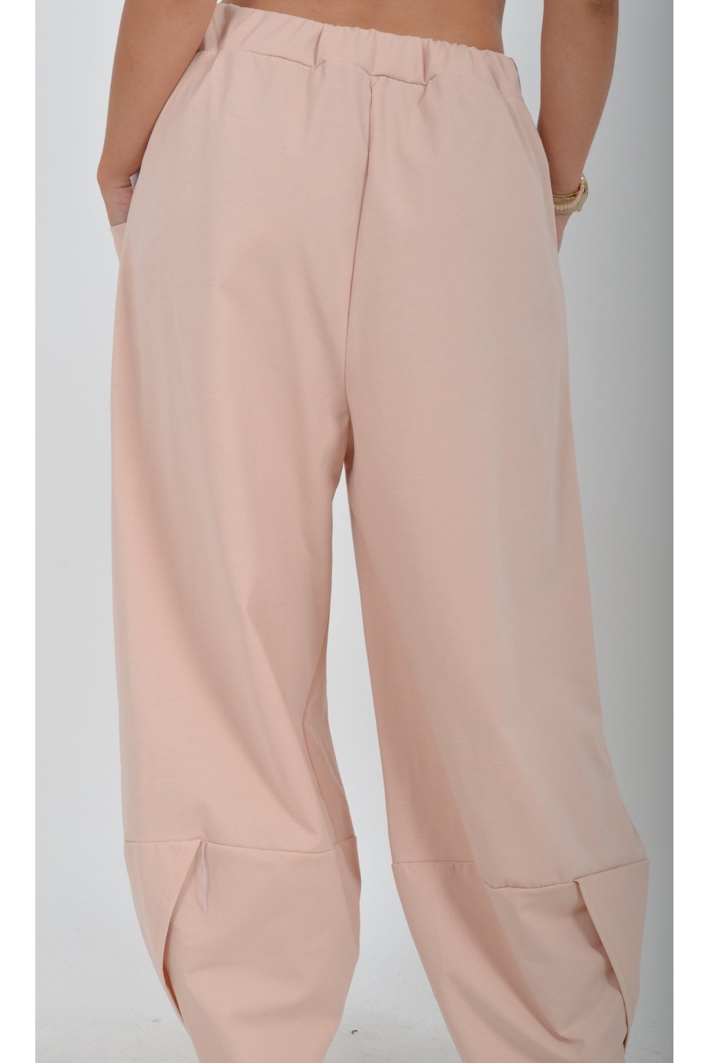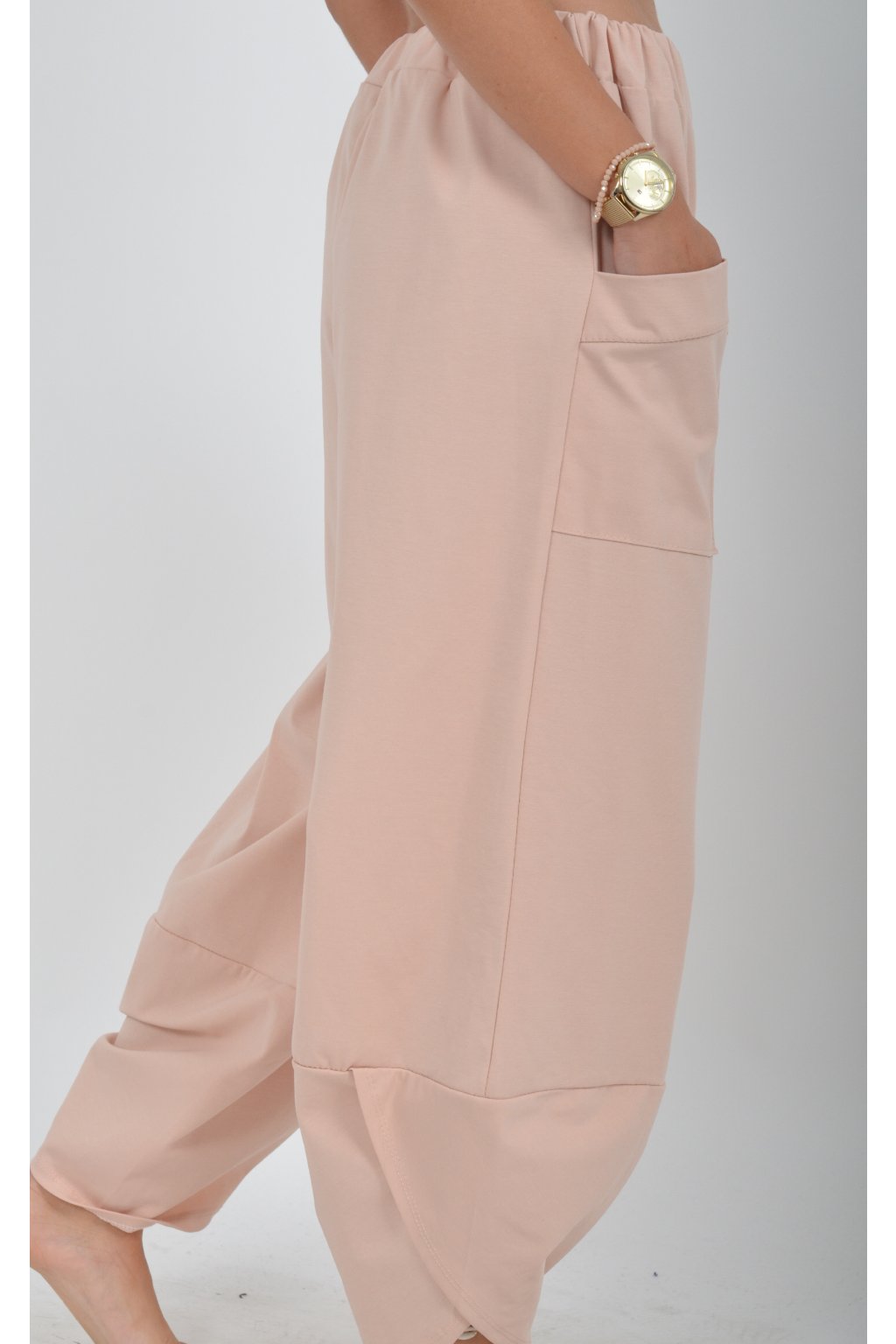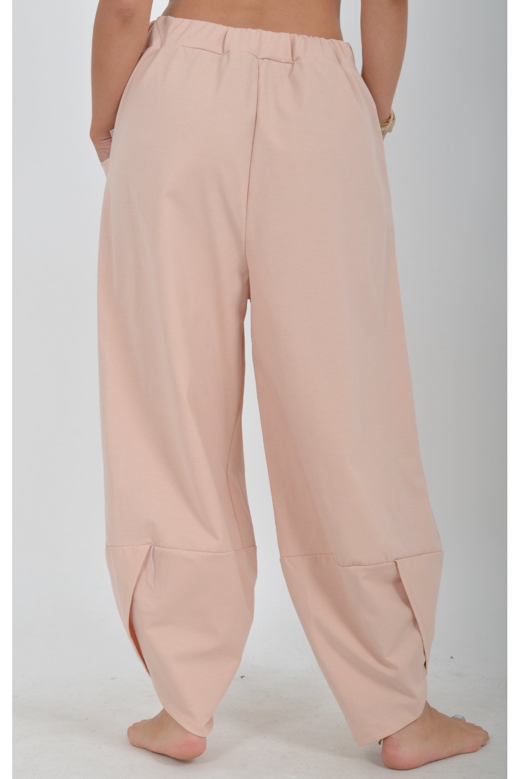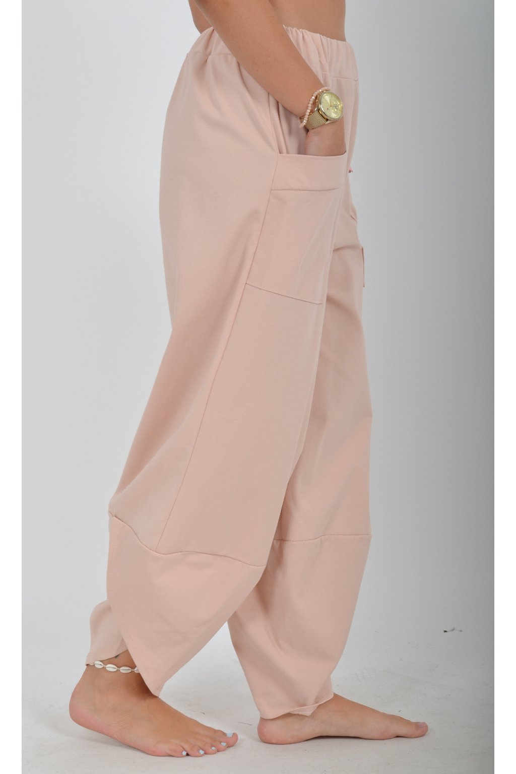 Volnější kalhoty teplákového stylu s kapsami v přední části. Mají v pase zapracovanou gumu a jsou velice příjemné pro pohodlné nošení.