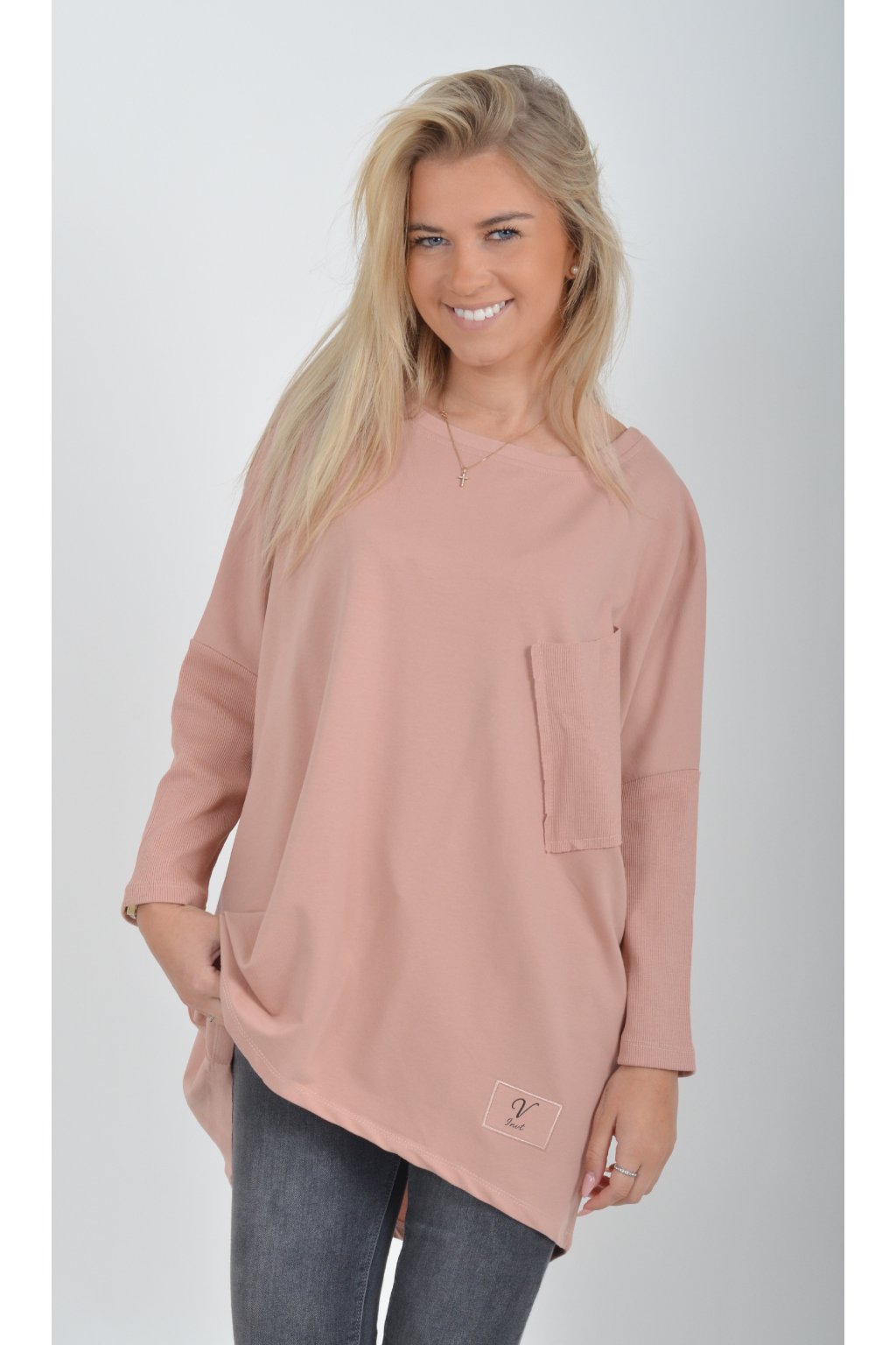 Oversize tričko s tříčtvtečním netopýřím rukávem a náprsní kapsou. Je vyrobené z velice příjemného a elastického materiálu. Tričko je ideální pro každodenní nošení.