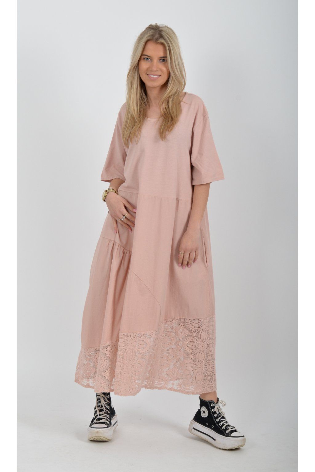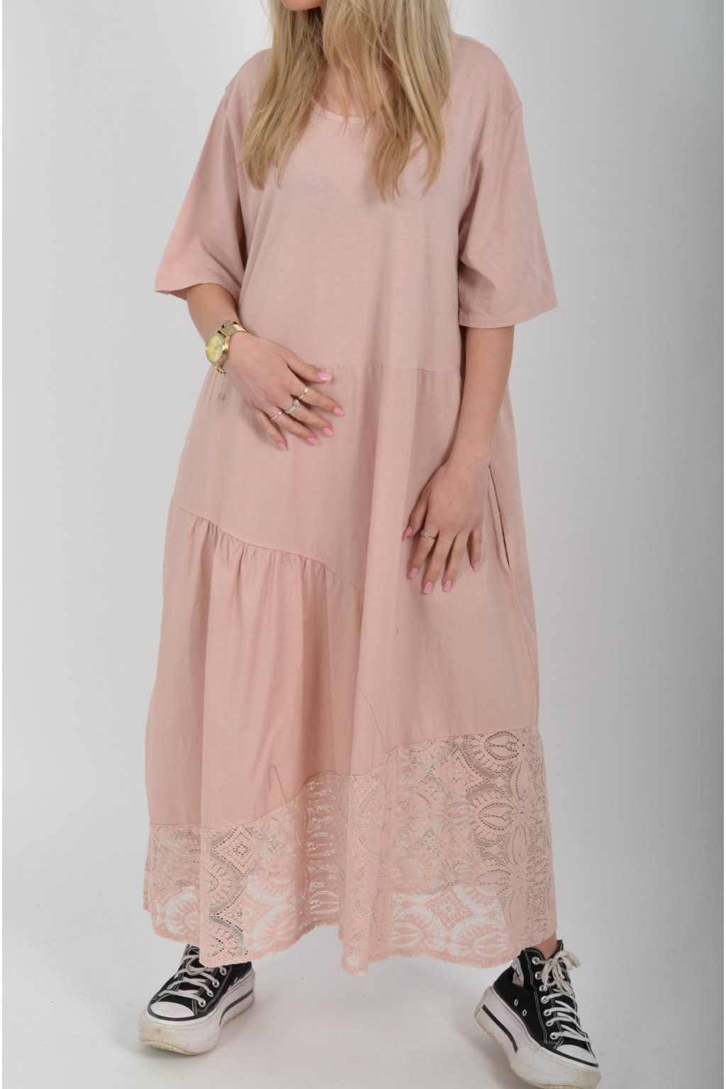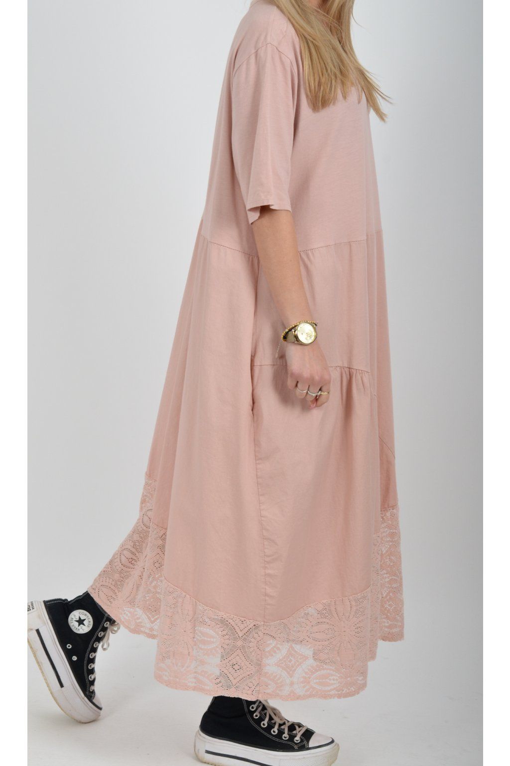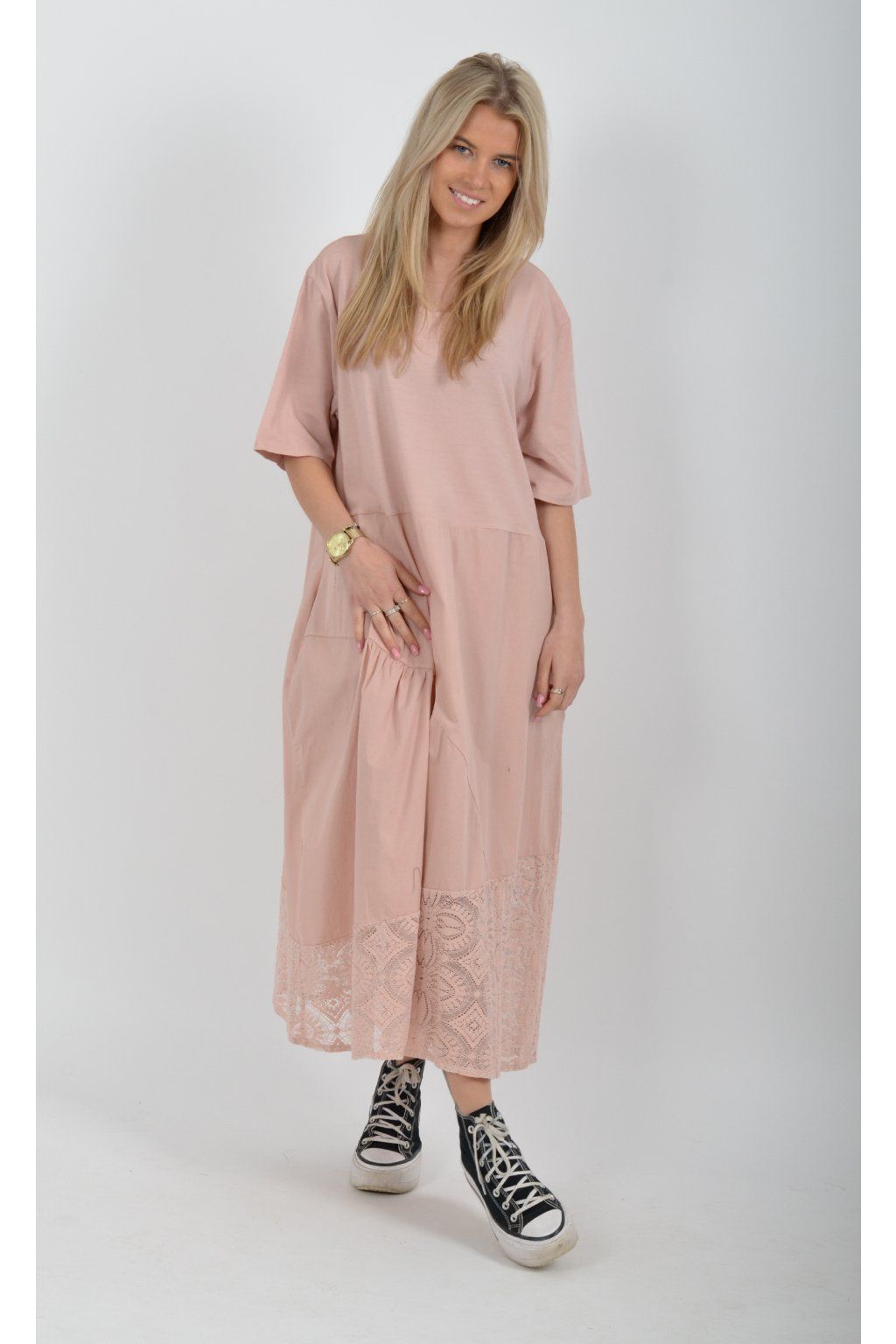 Zajímavé bavlněné šaty s krajkou ve spodní části. Šaty mají áčkový střih, na bocích kapsy a krátké rukávy. Jsou vyrobené z velice příjemného a lehce pružného materiálu.