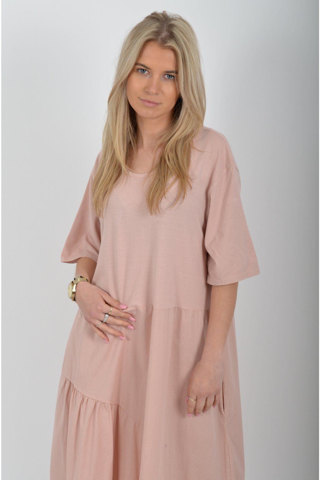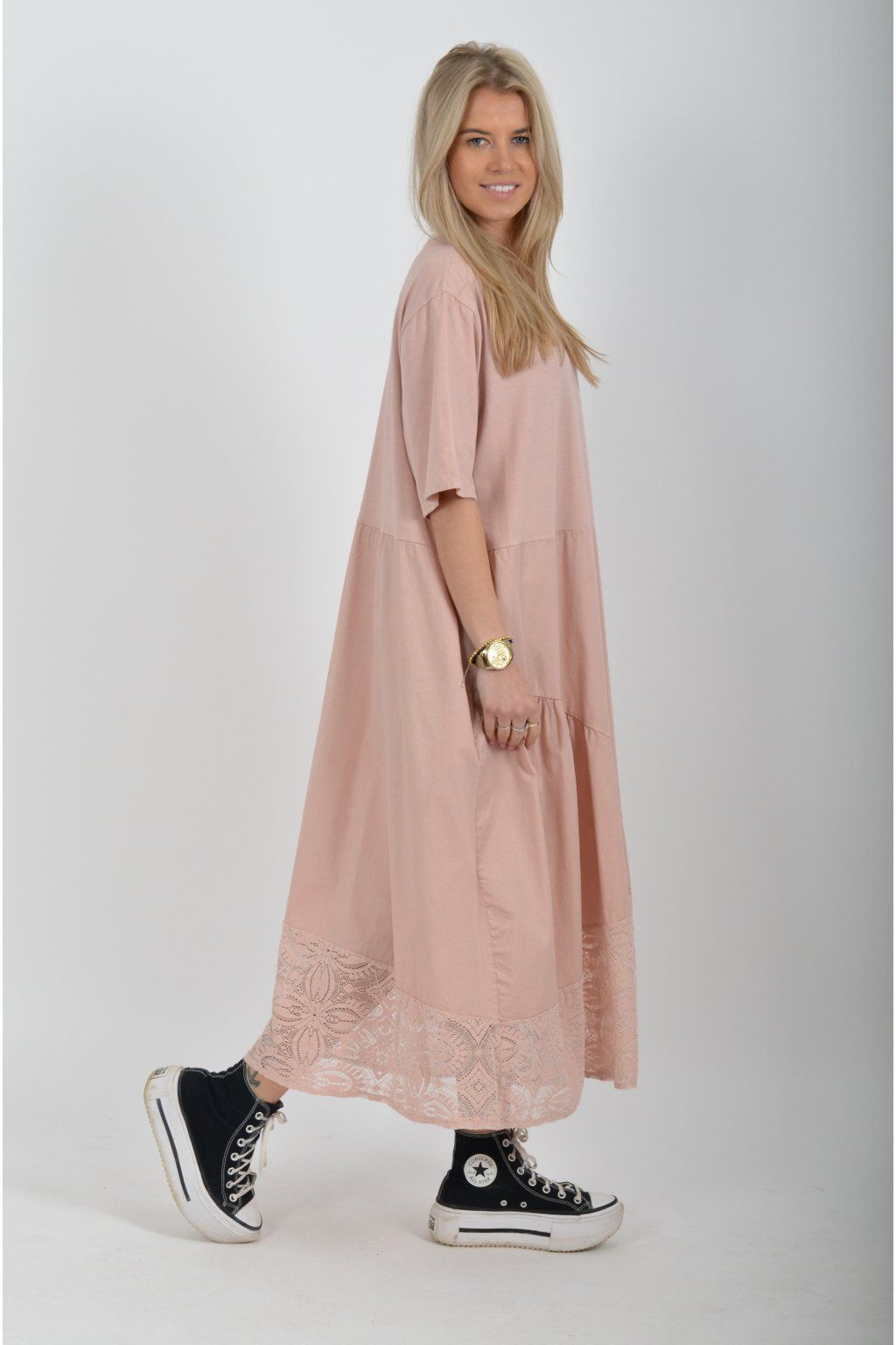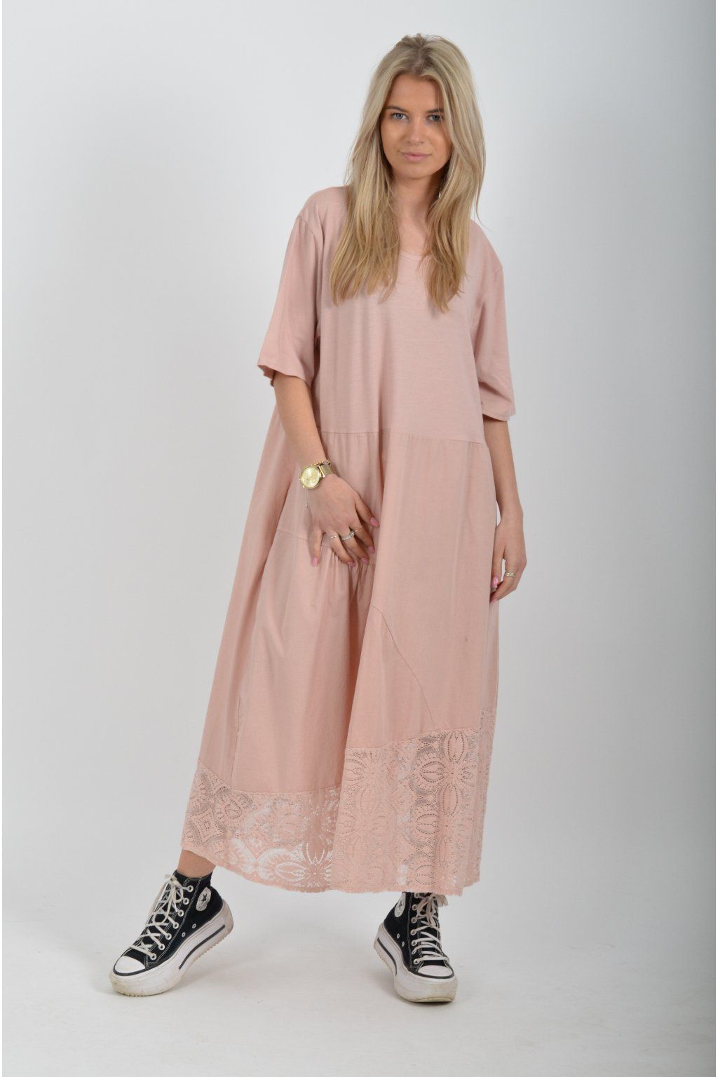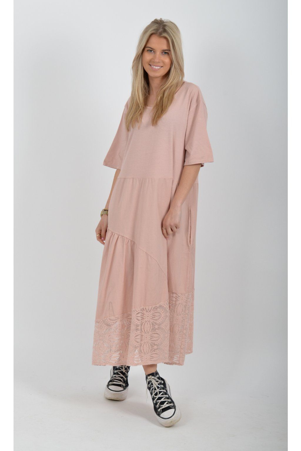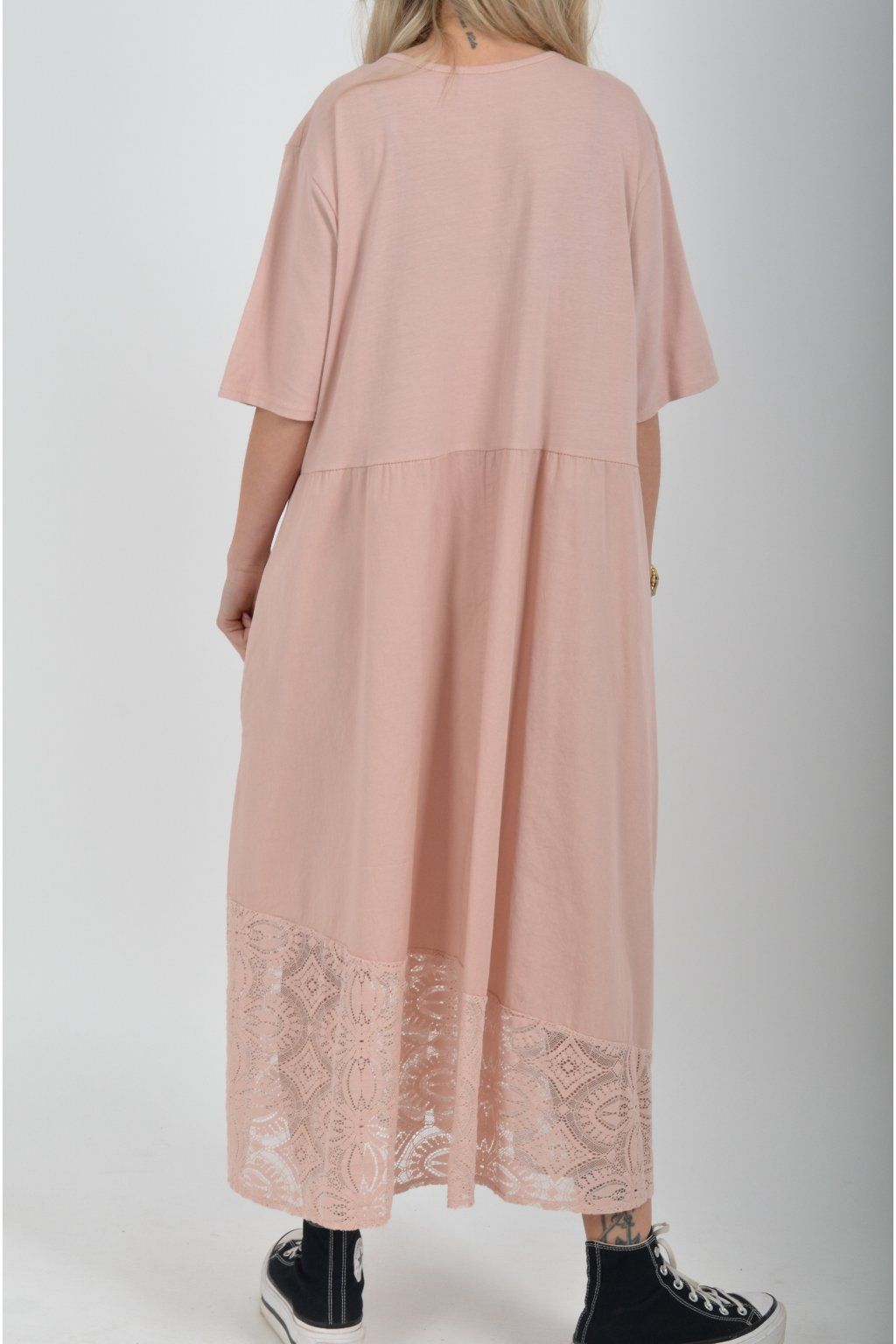 Zajímavé bavlněné šaty s krajkou ve spodní části. Šaty mají áčkový střih, na bocích kapsy a krátké rukávy. Jsou vyrobené z velice příjemného a lehce pružného materiálu.