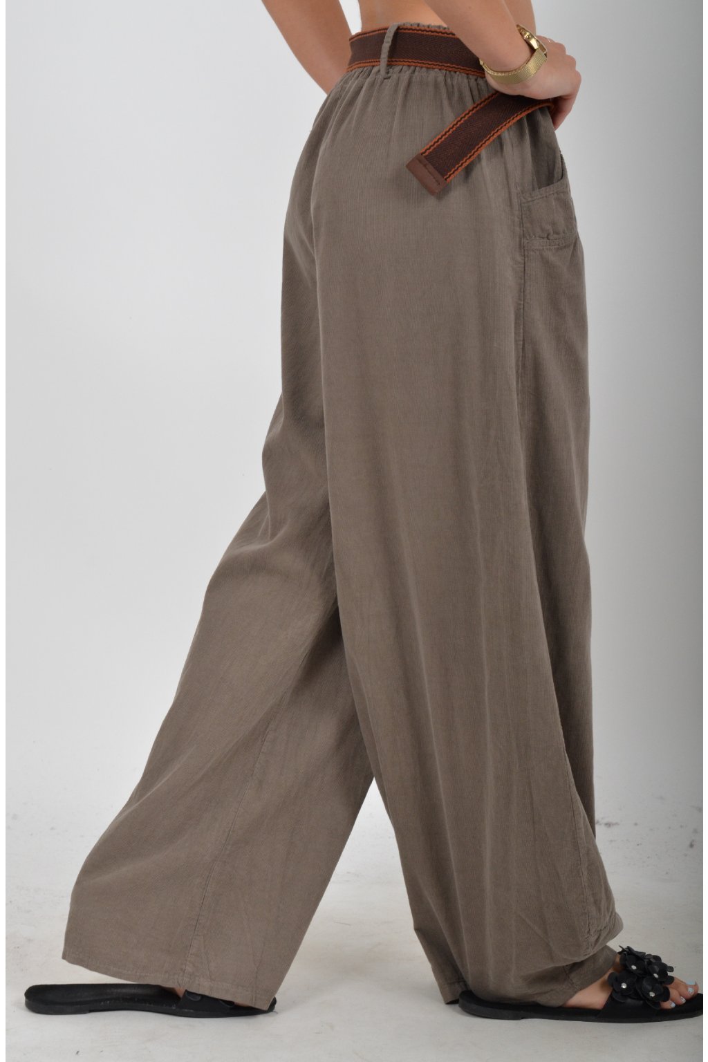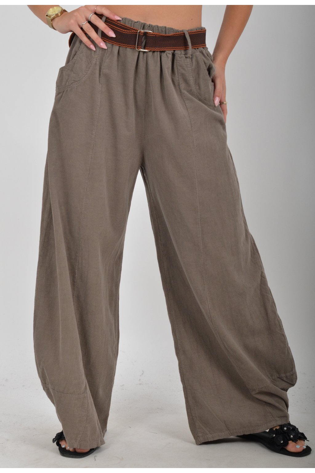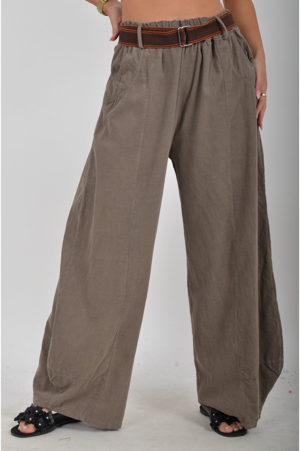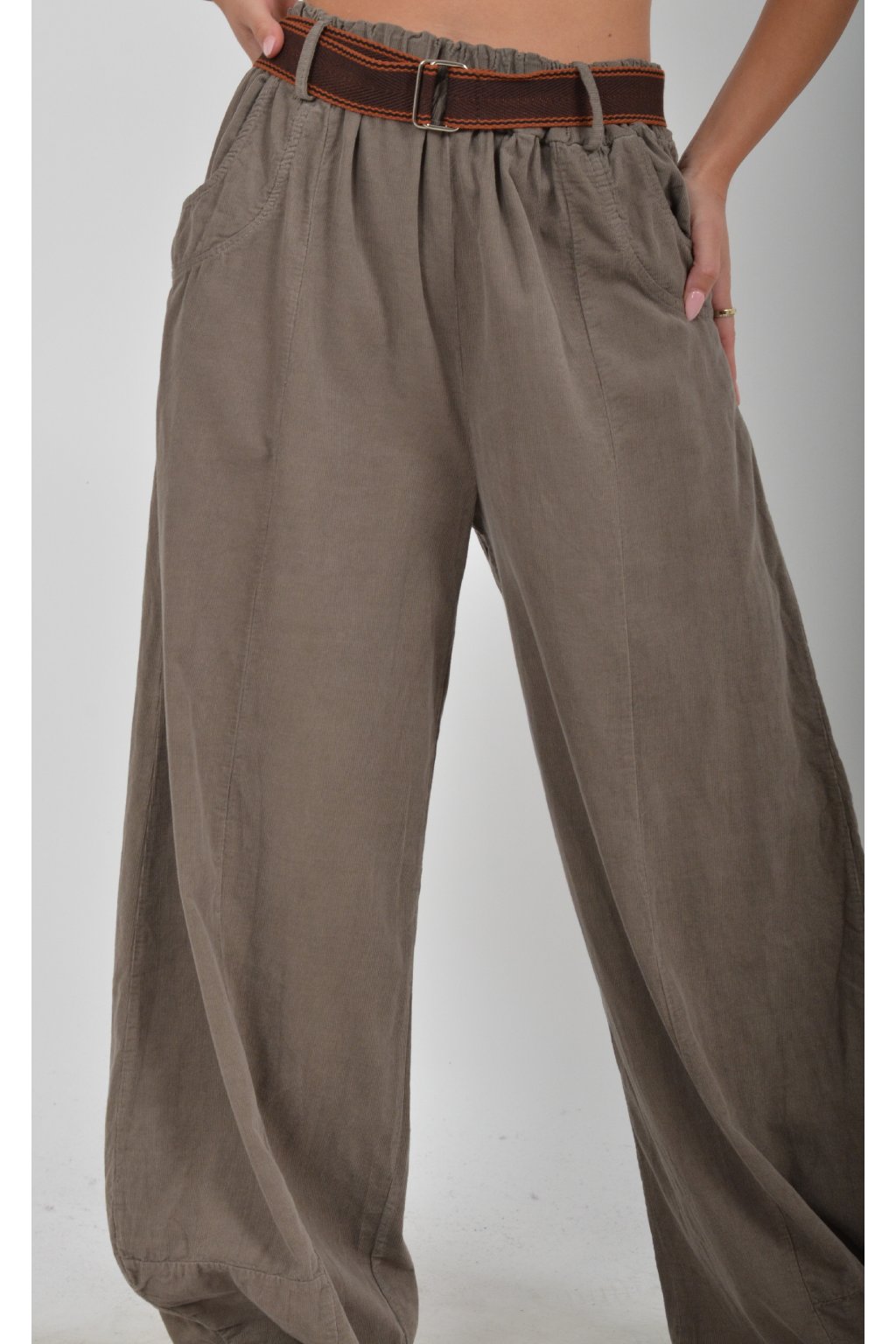 Pohodlné manšestrové kalhoty s kapsami na bocích. V pase mají zapracovanou gumu, součástí kalhot je pásek pro libovolné stažení. Kalhoty jsou z velice příjemného materiálu a jsou vhodné pro každodenní nošení.