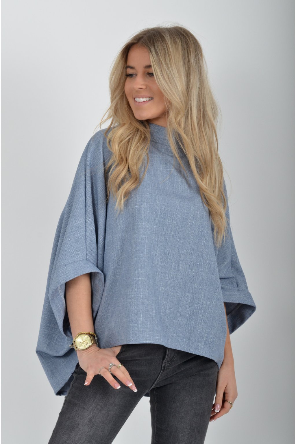 Halenka značky Miss City Official s netopýřím rukávem vhodná jak pro společenské události, tak i volnočasové nošení. Je vyrobena z velice příjemného a pevného materiálu. Přední část halenky je kratší než zadní. Je volnějšího střihu.