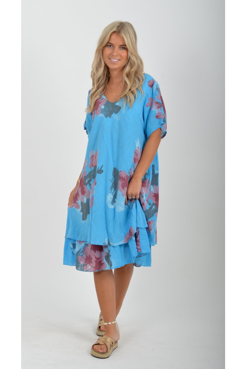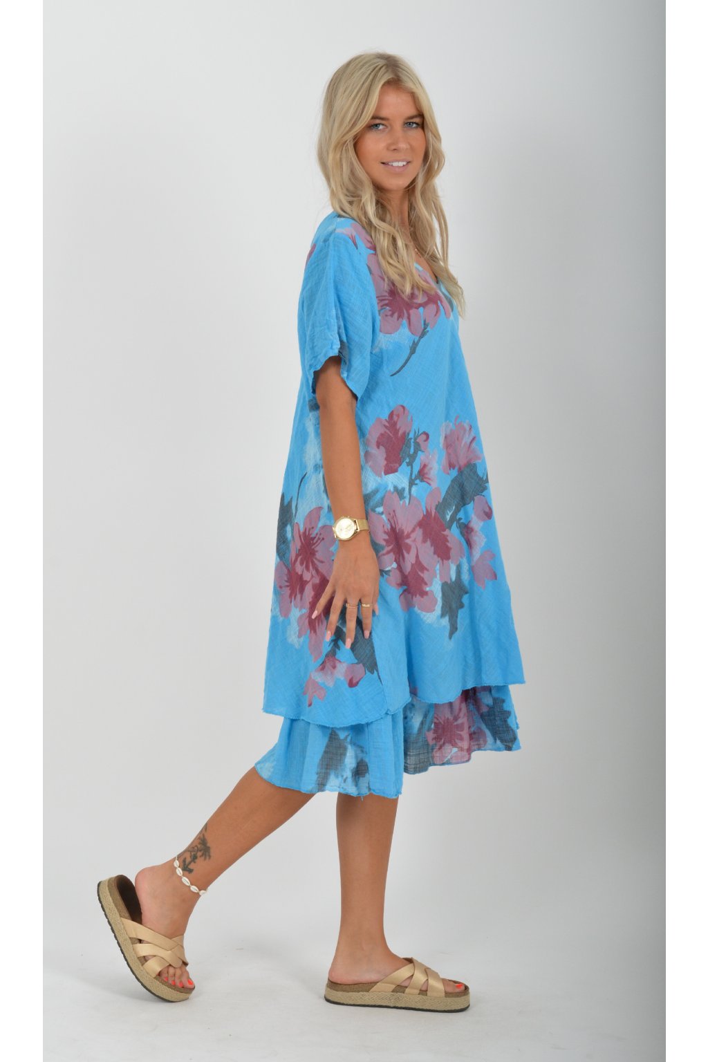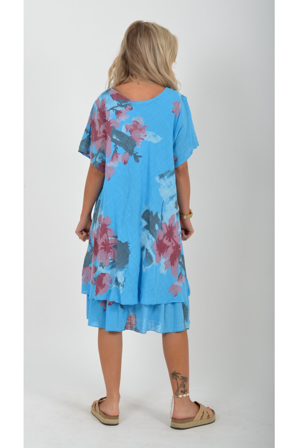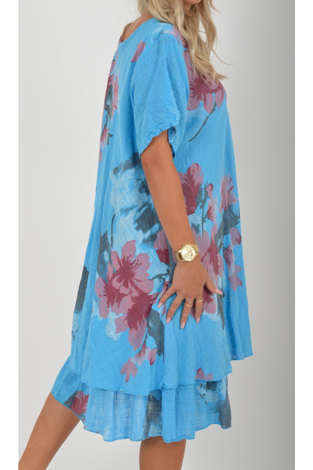 Vzorované šaty s krátkým rukávem áčkového střihu vyrobené z velice příjemného a vzdušného materiálu. Šaty mají podšívku, díky které jsou zcela neprůhledné. Šaty jsou bez kapes.
