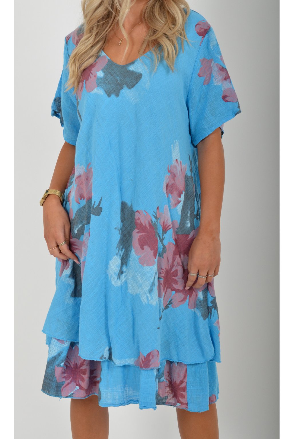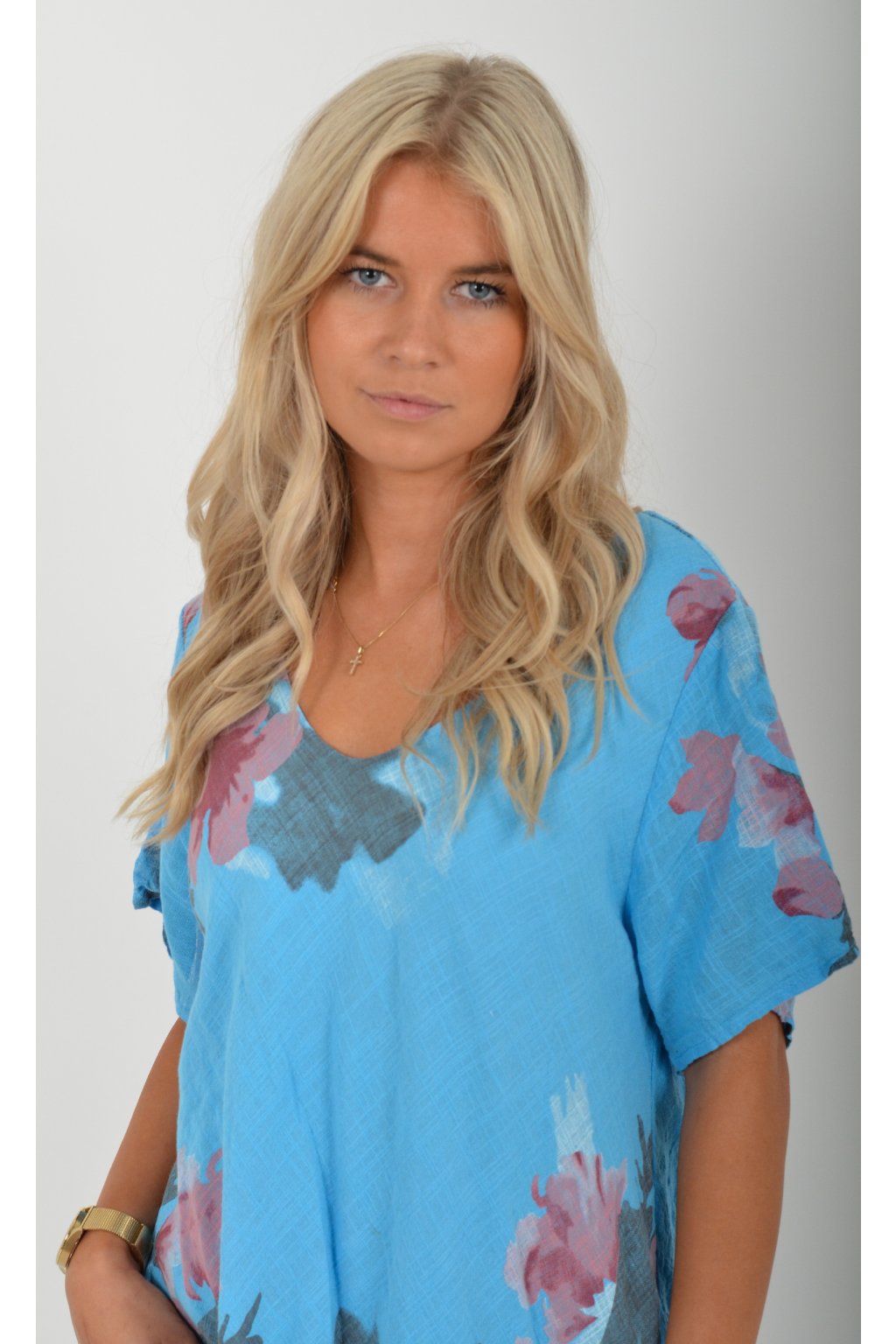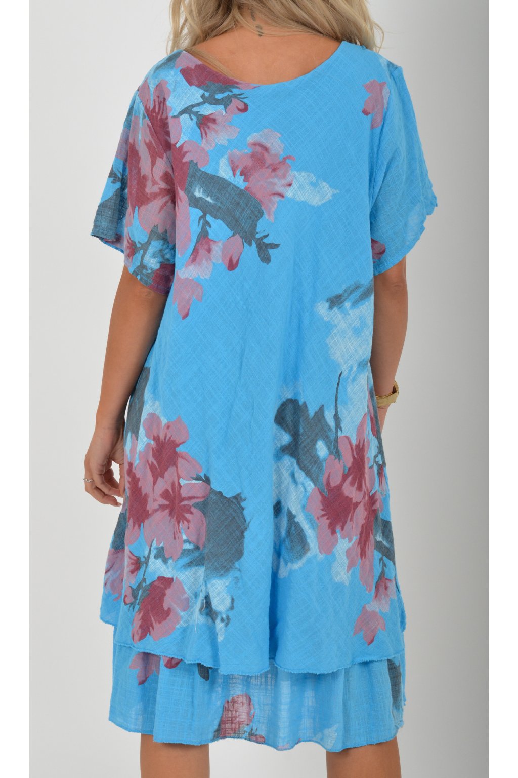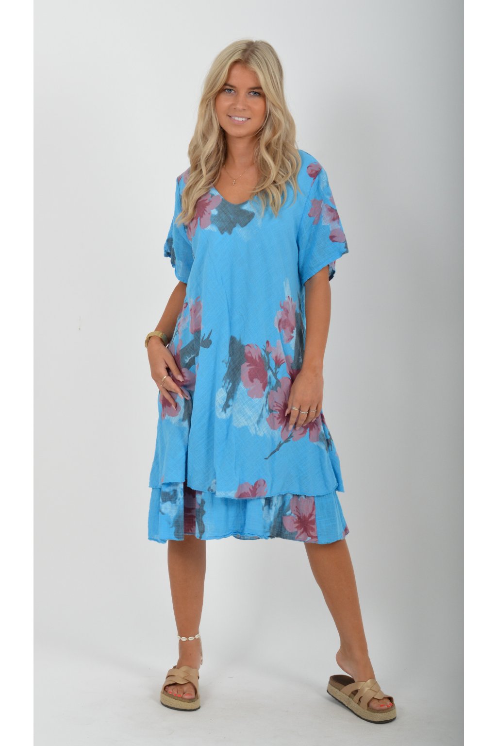 Vzorované šaty s krátkým rukávem áčkového střihu vyrobené z velice příjemného a vzdušného materiálu. Šaty mají podšívku, díky které jsou zcela neprůhledné. Šaty jsou bez kapes.