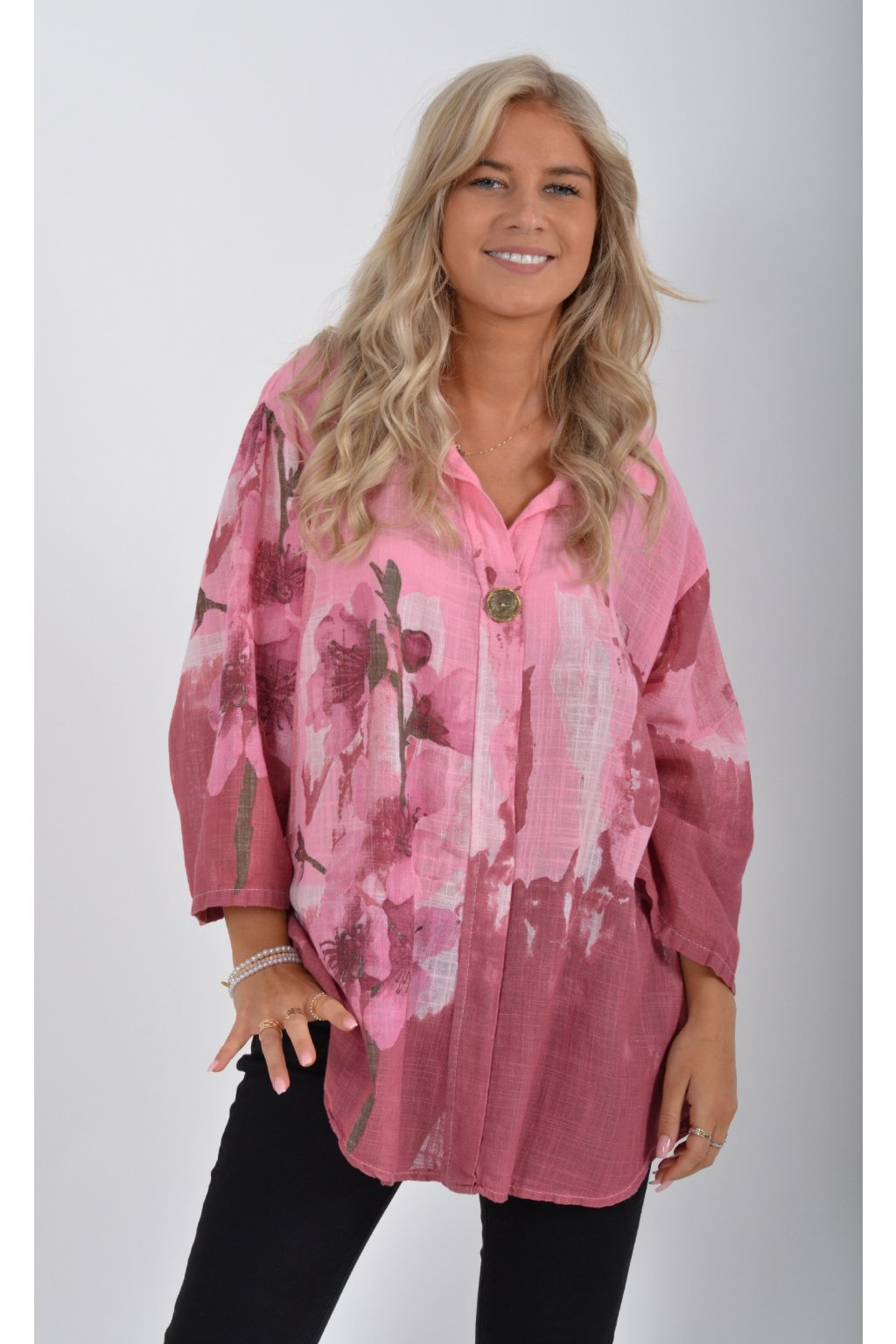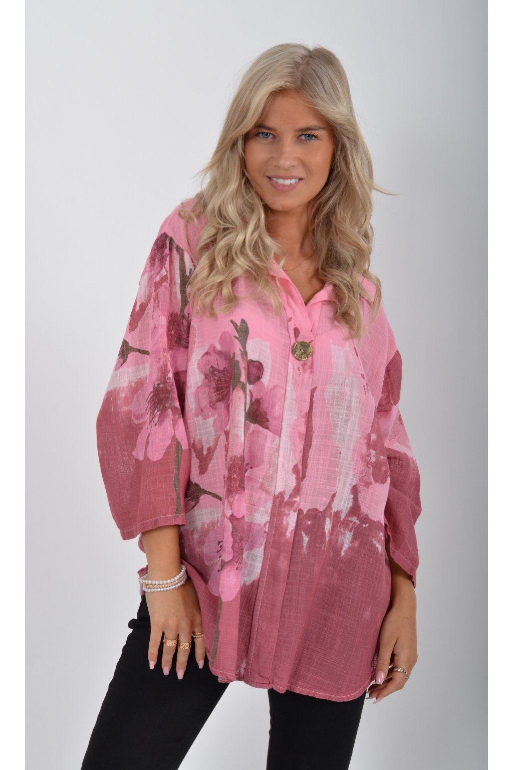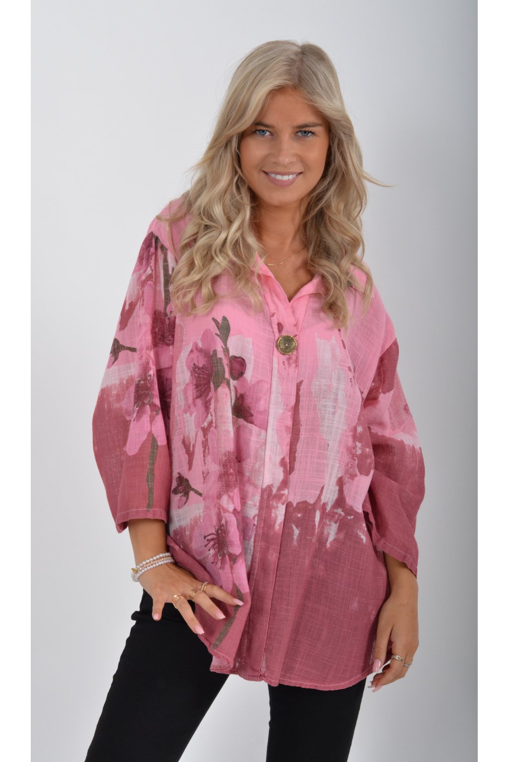 Halenka s tříčtvrtečním rukávem a výstřihem do "V". Je vyrobena z velice příjemného a lehounkého materiálu.