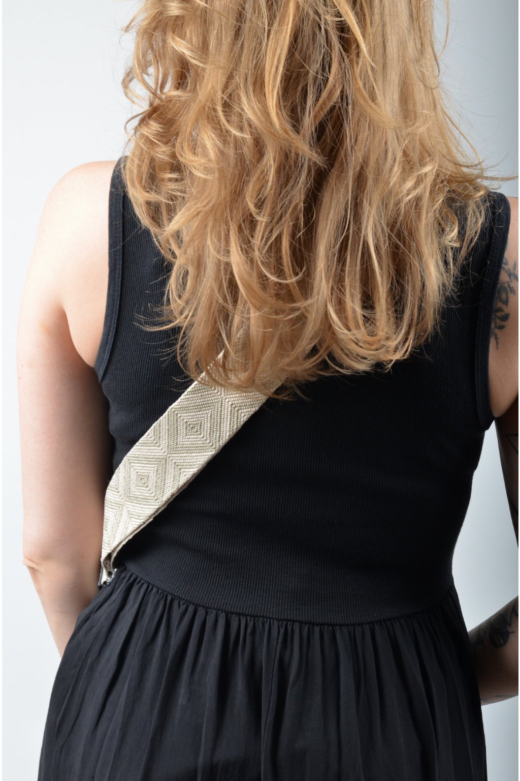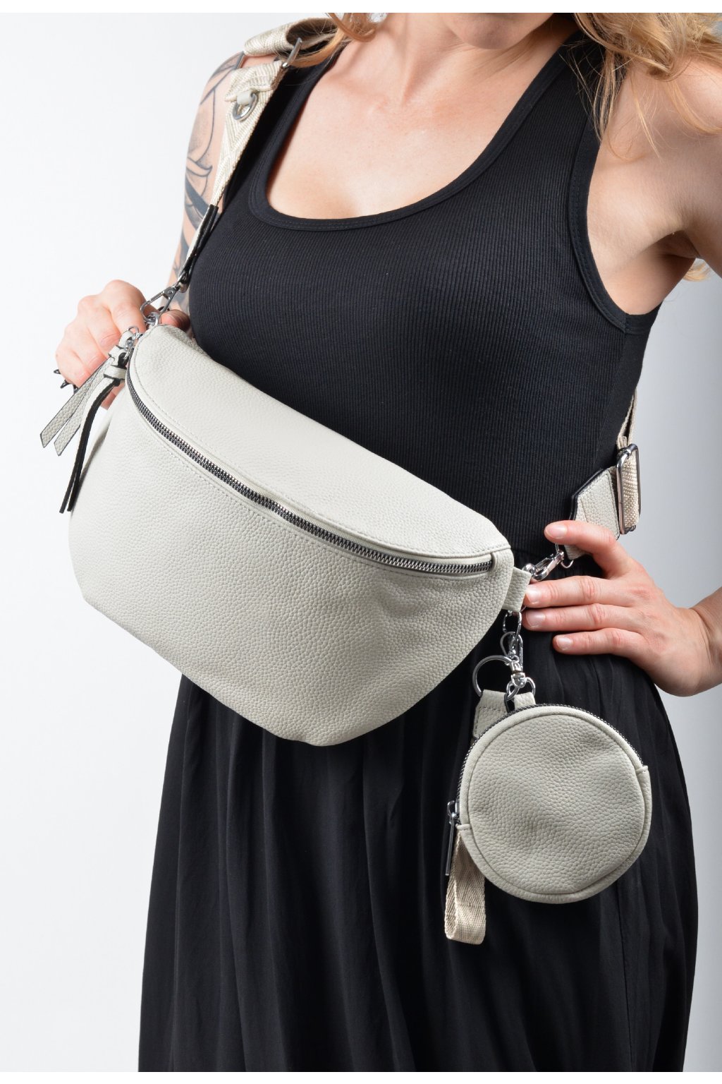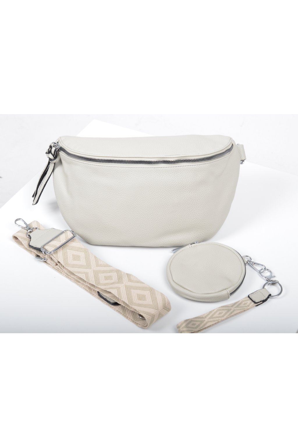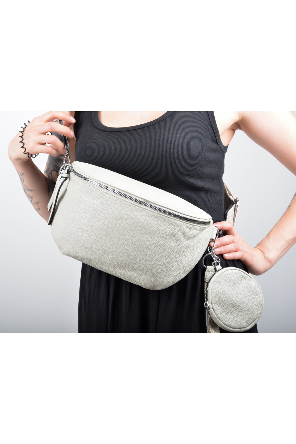 Ledvinka, která má nastavitelný popruh a malou připínací kapsička vhodnou na klíče, či peníze. Uvnitř kabelky je zapínatelná kapsa na zip a dvě malé kapsičky. Na zadní části je také kapsa na zip.