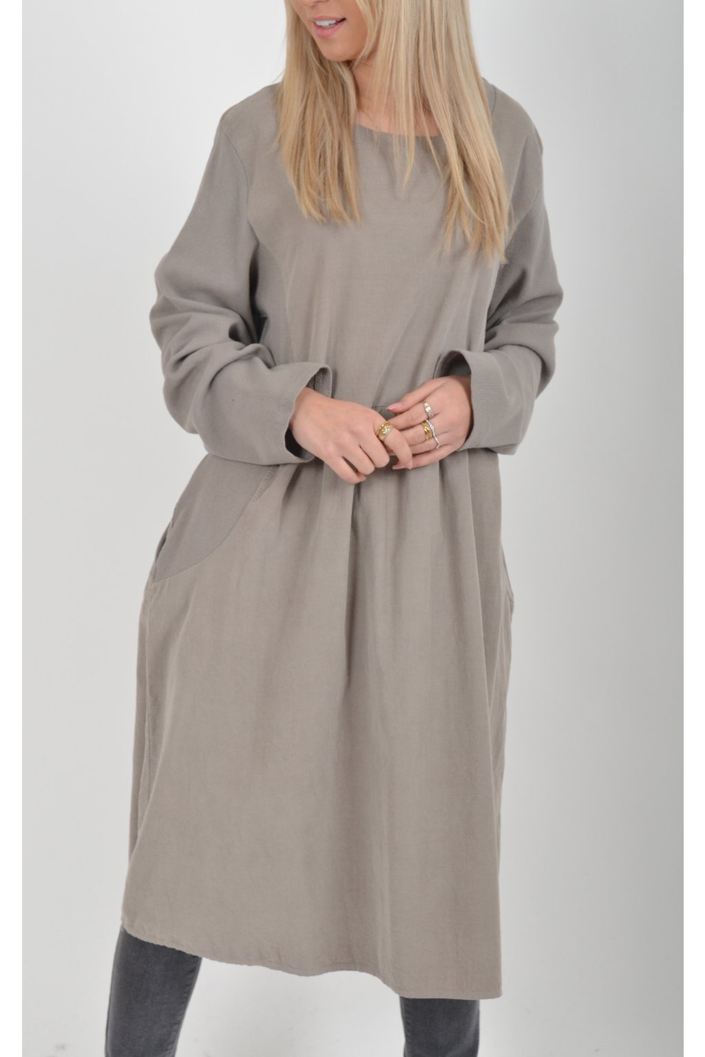 Světle šedé manšestrové šaty ES5979