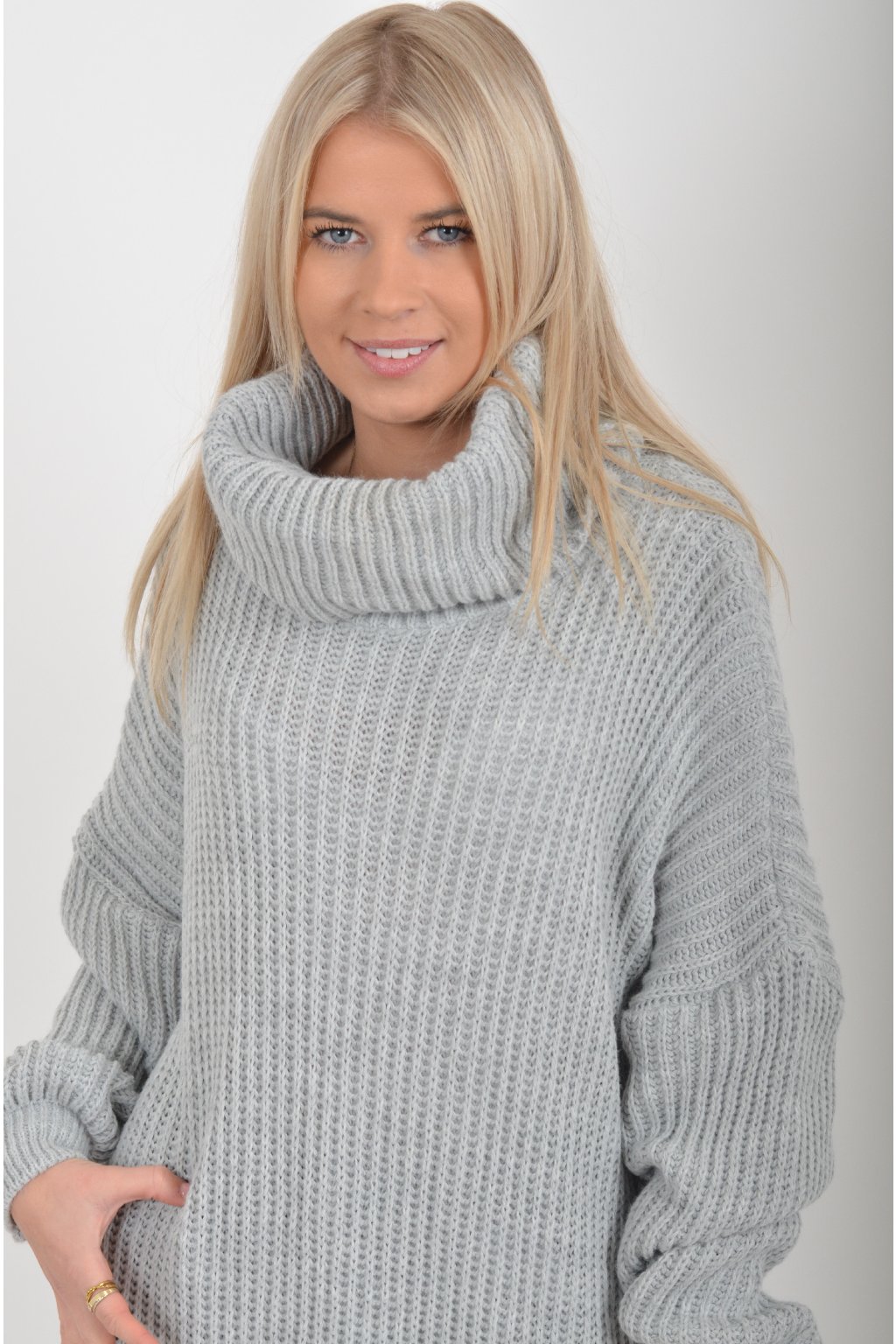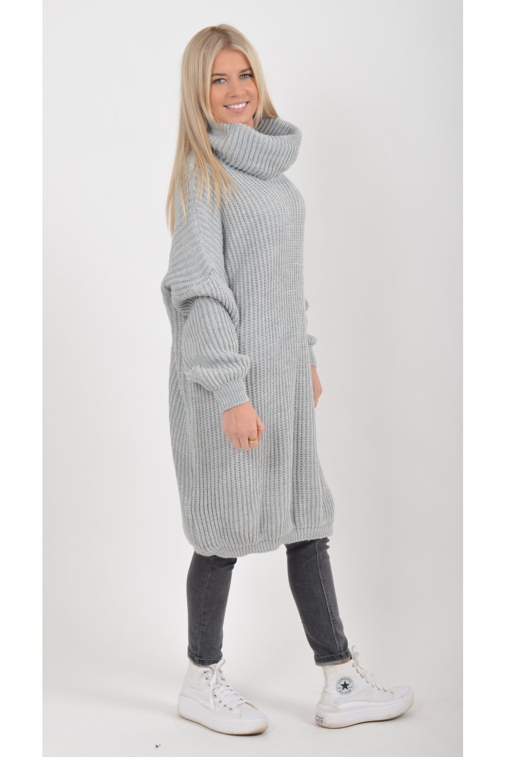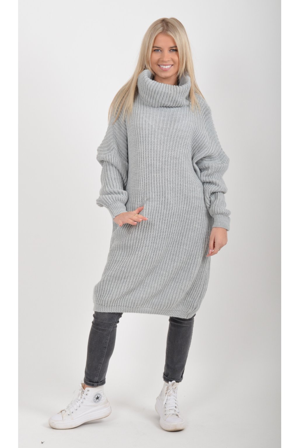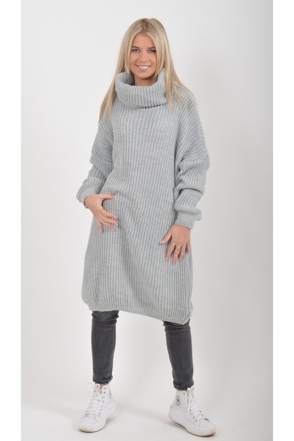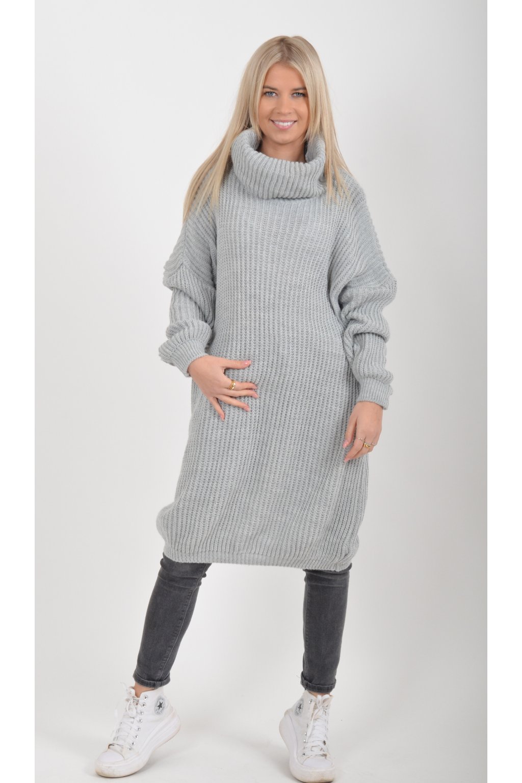 Světle šedé pletené šaty ES6050