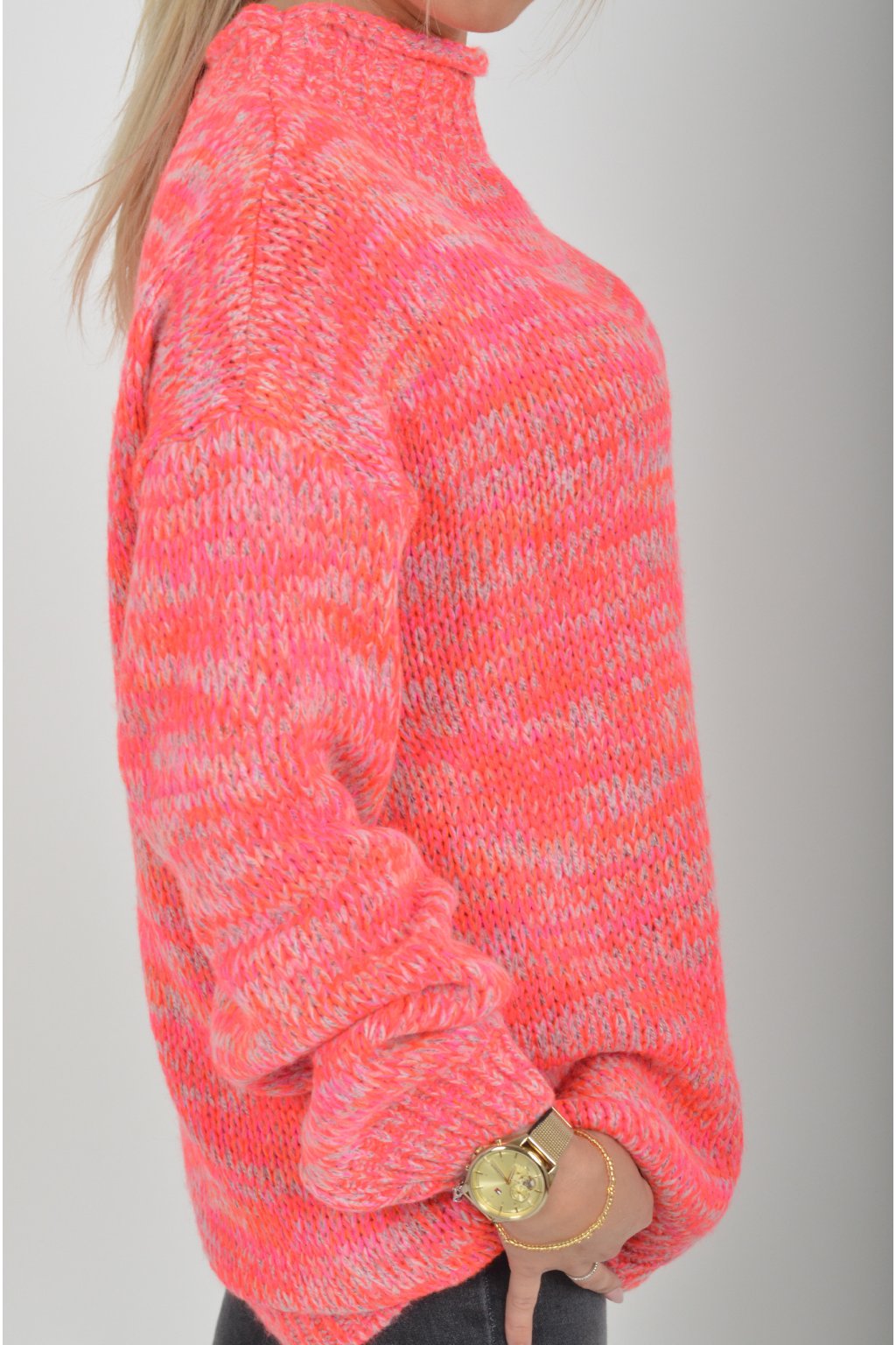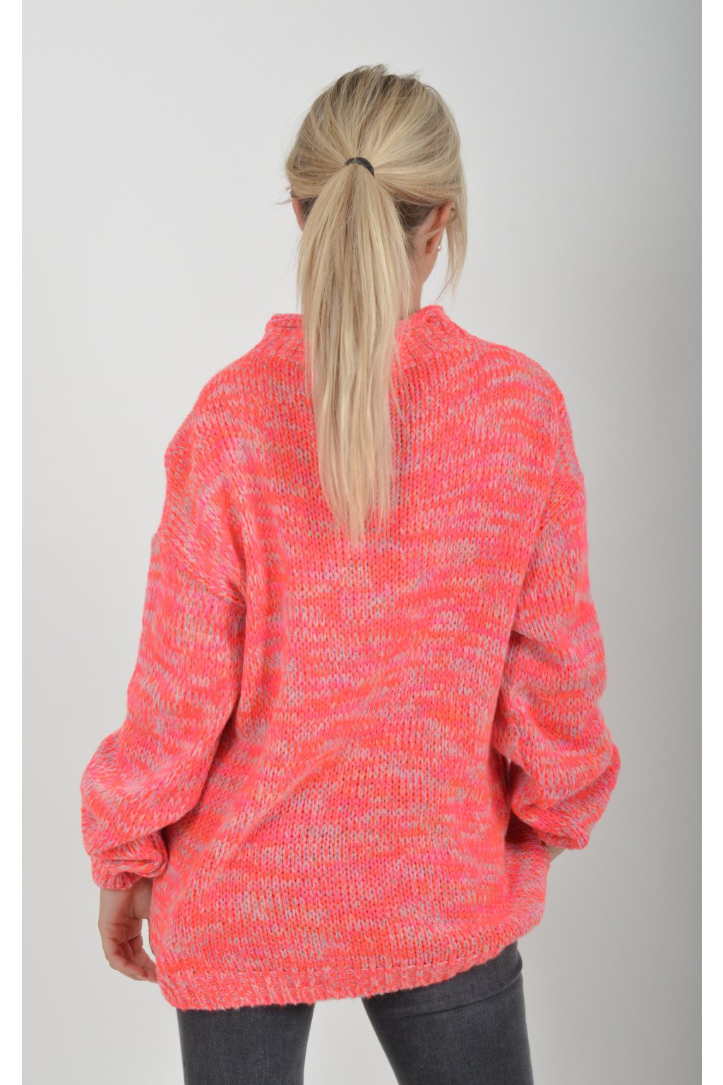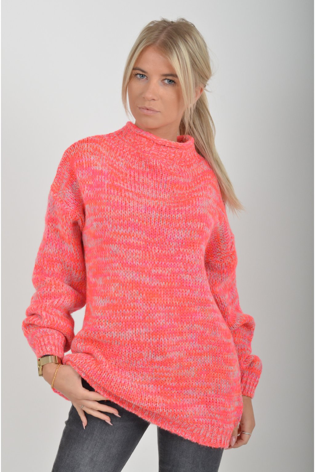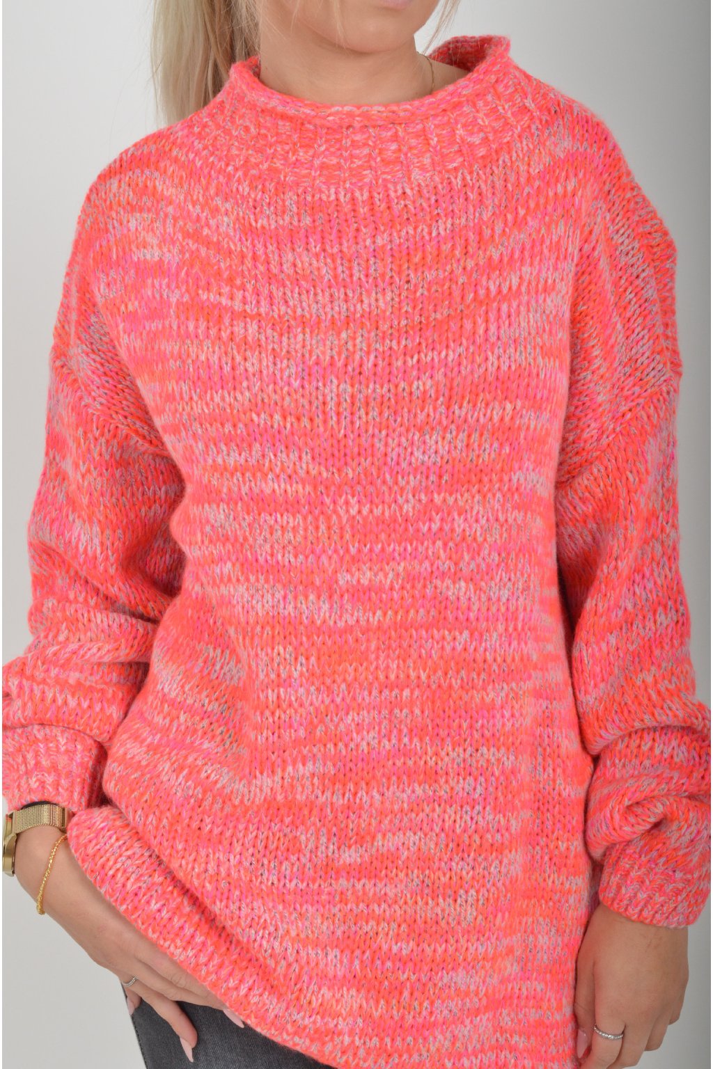 Žíhaný elastický svetr s dlouhým rukávem s barevnou kombinací, růžová, oranžová a neonově růžová. Svetr je z velice příjemného a nekousavého materiálu.