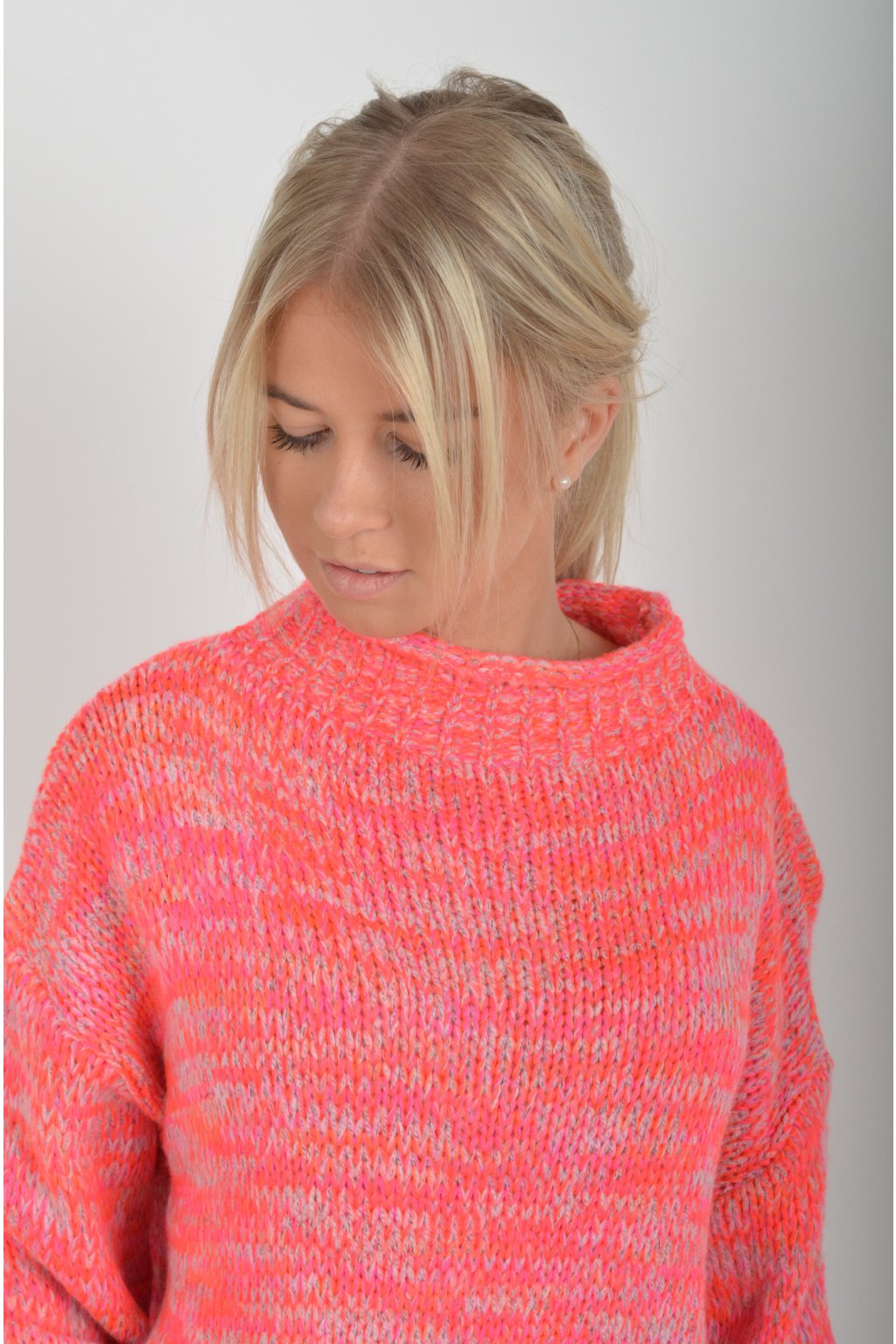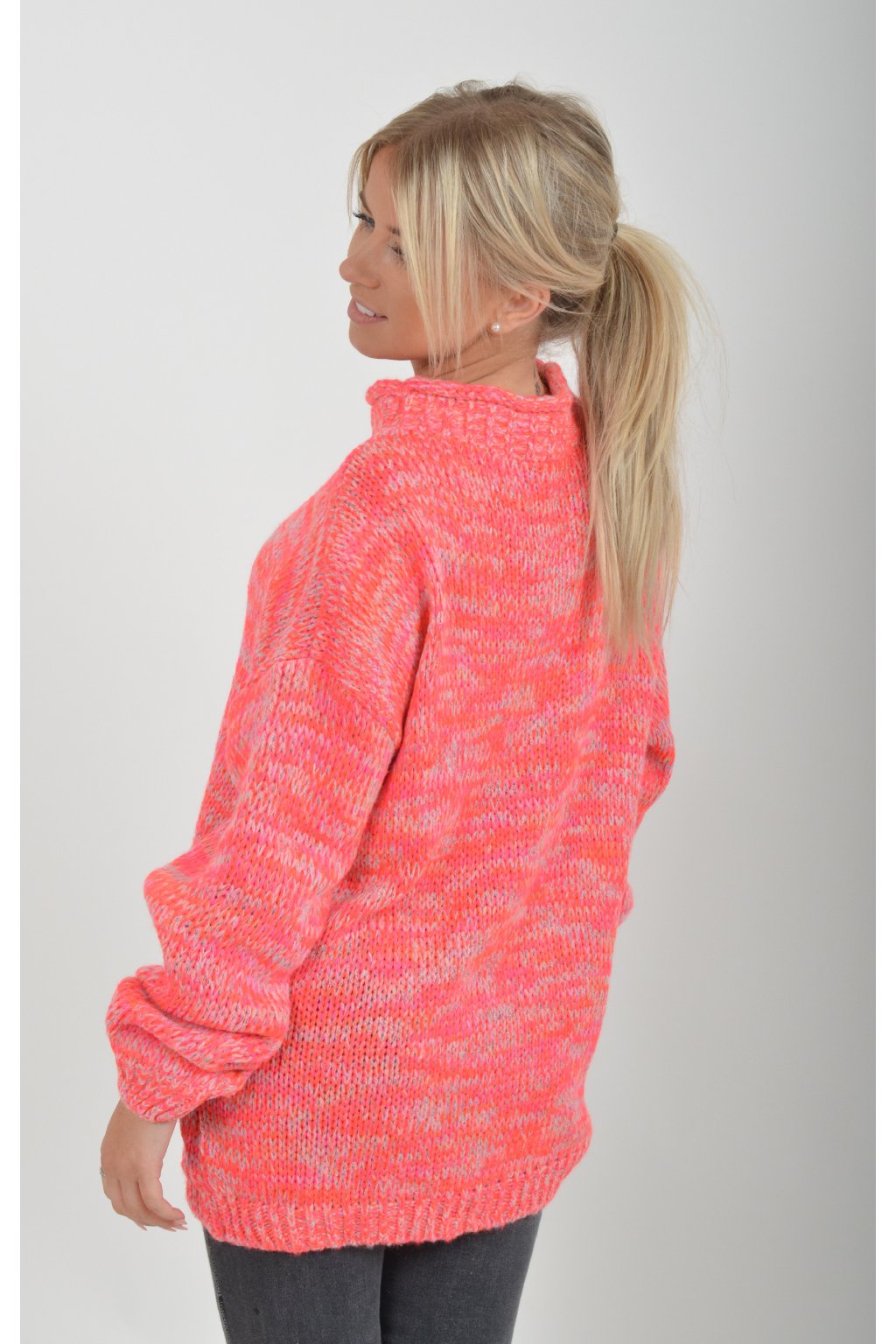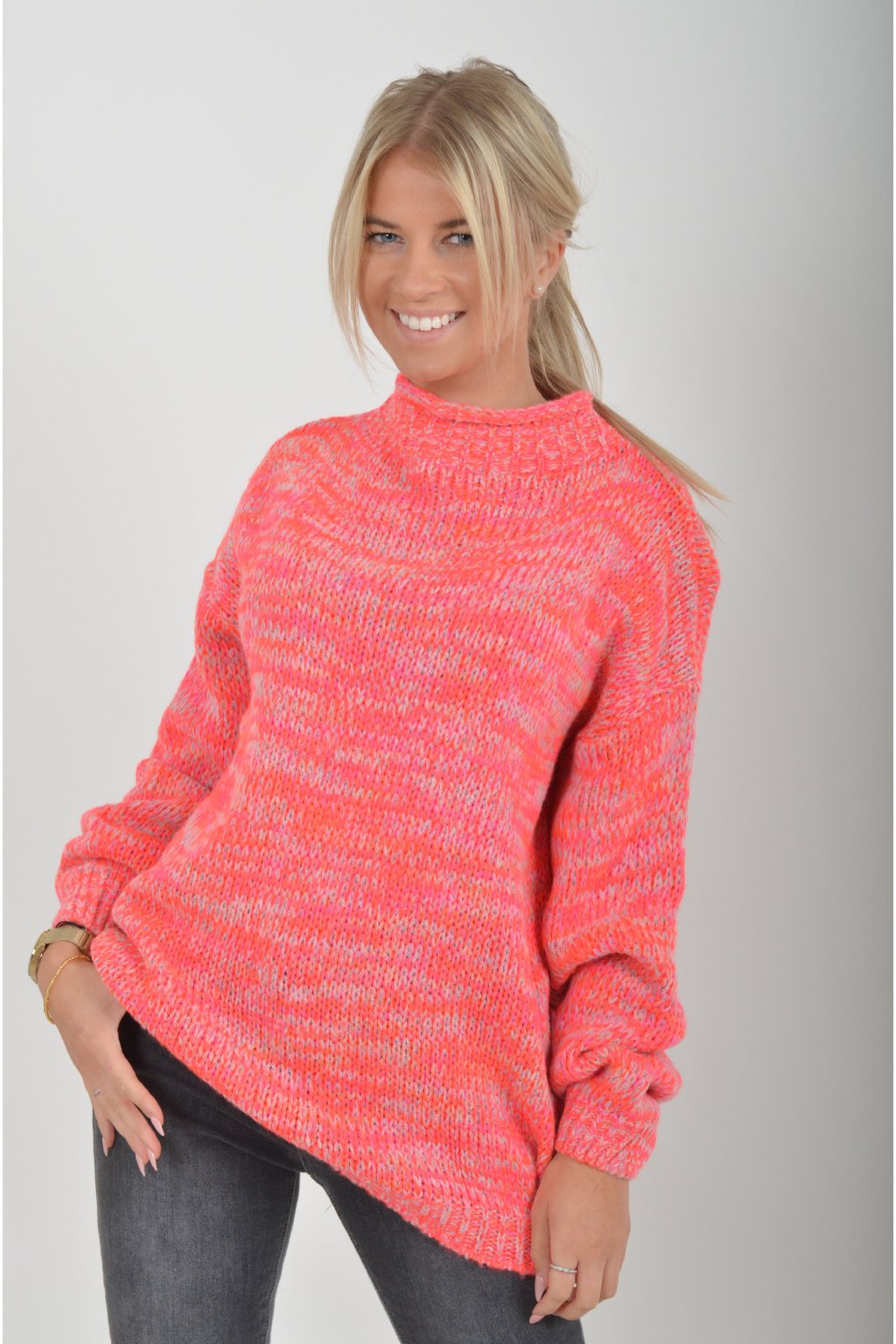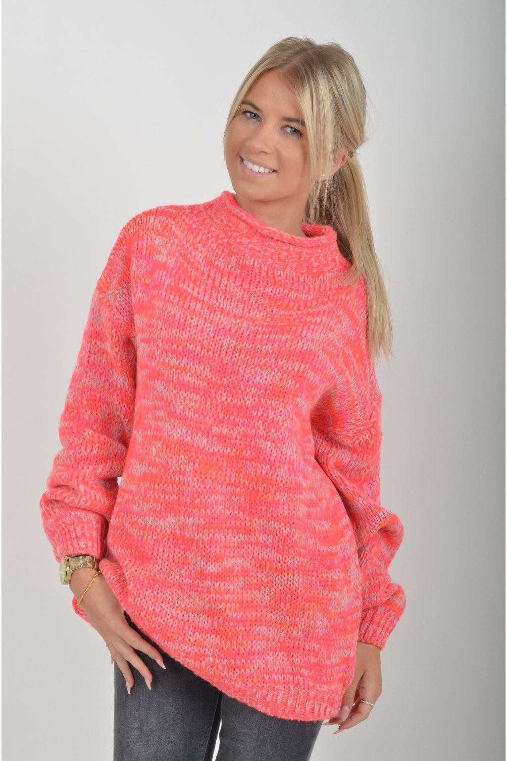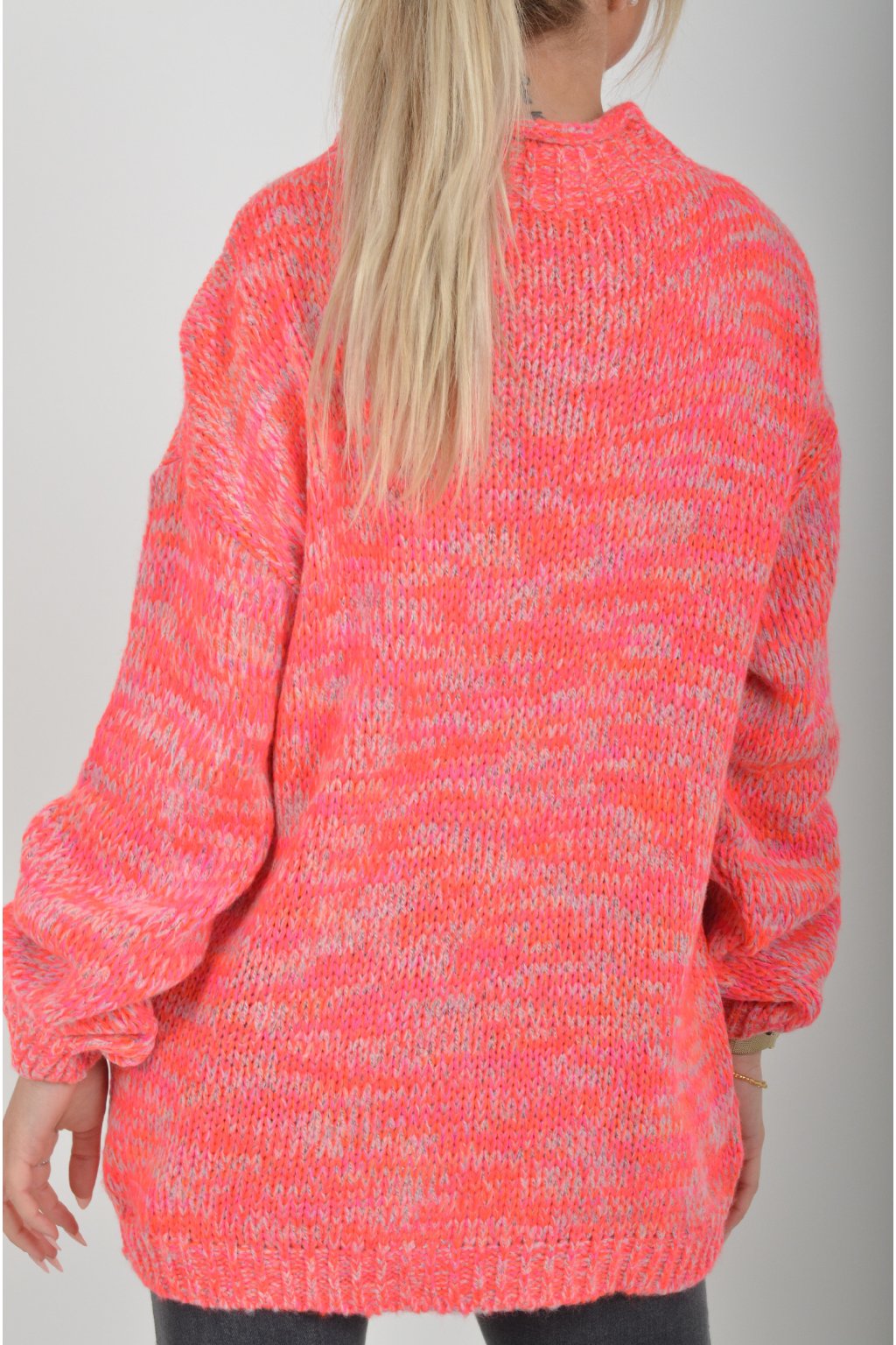 Žíhaný elastický svetr s dlouhým rukávem s barevnou kombinací, růžová, oranžová a neonově růžová. Svetr je z velice příjemného a nekousavého materiálu.