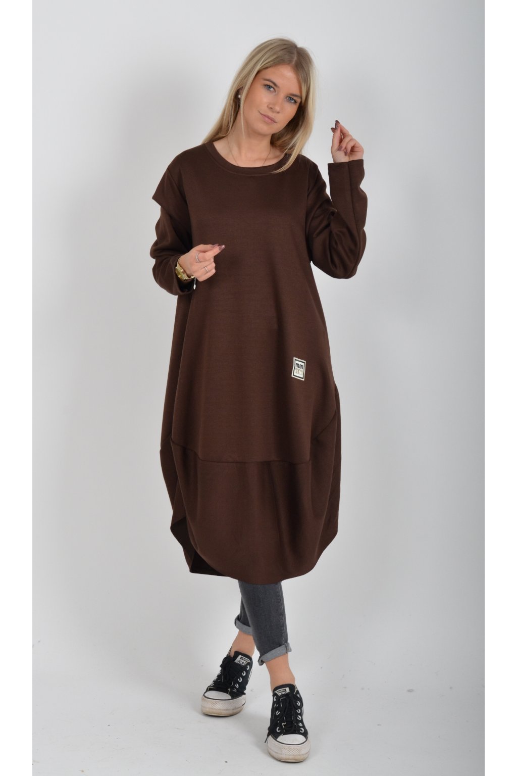Pohodlné mikinové šaty balonového střihu s dlouhým rukávem. Jsou vyrobené z velice příjemného materiálu na dotek a jsou vhodné pro každodenní nošení.