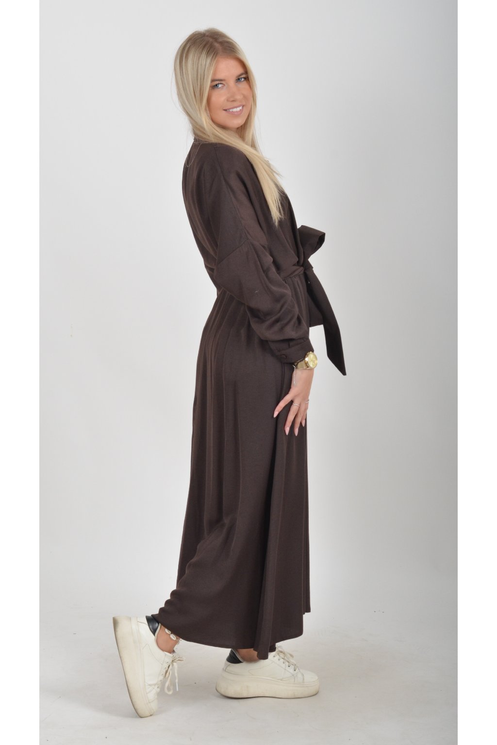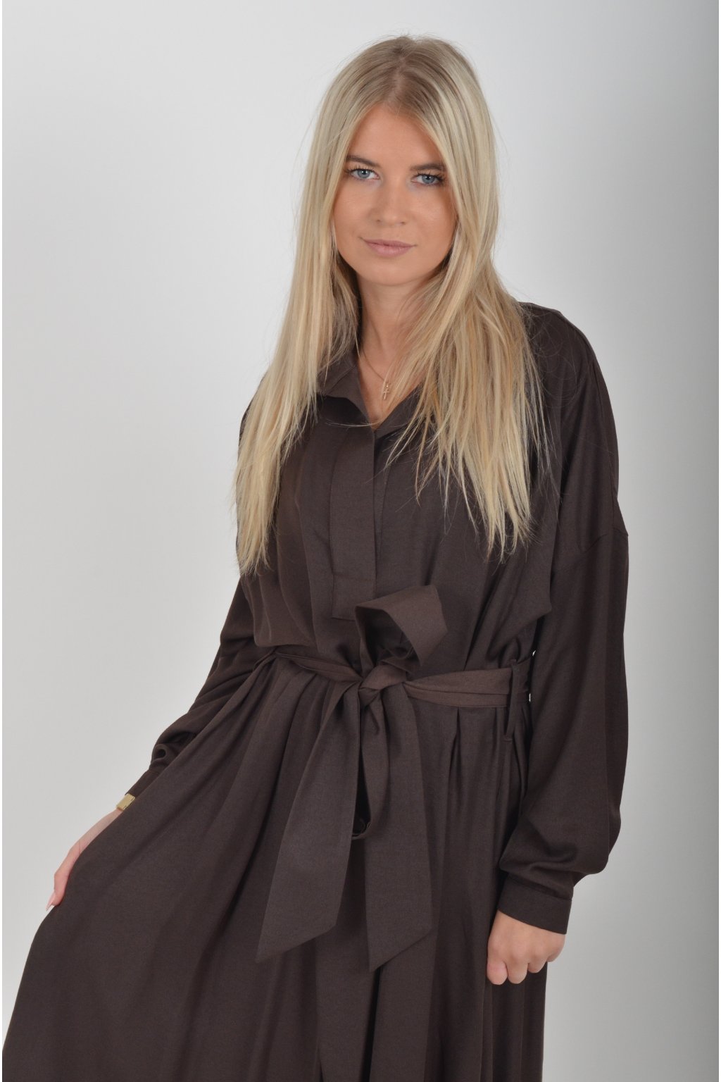 Tmavě hnědé elegantní šaty ES5778