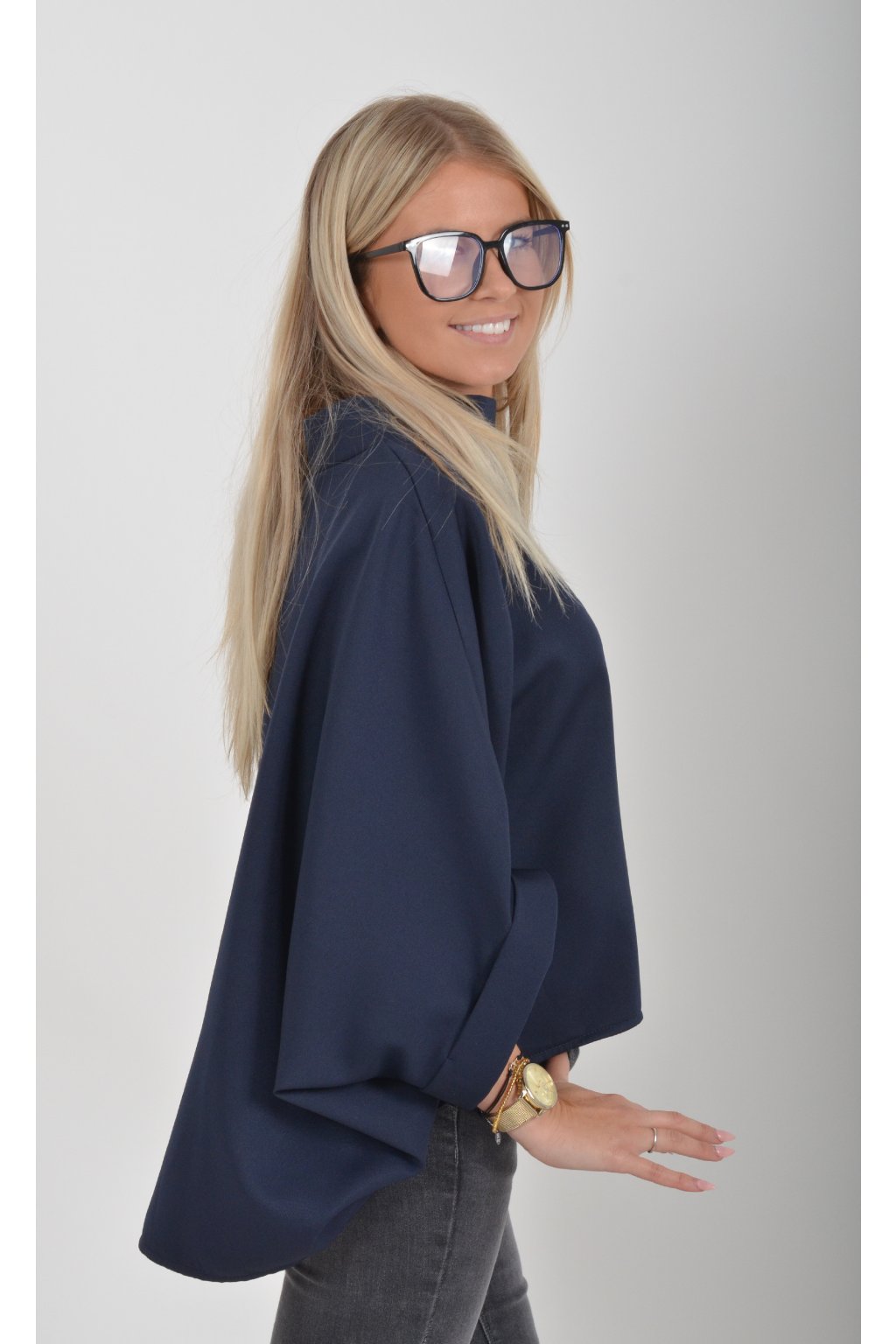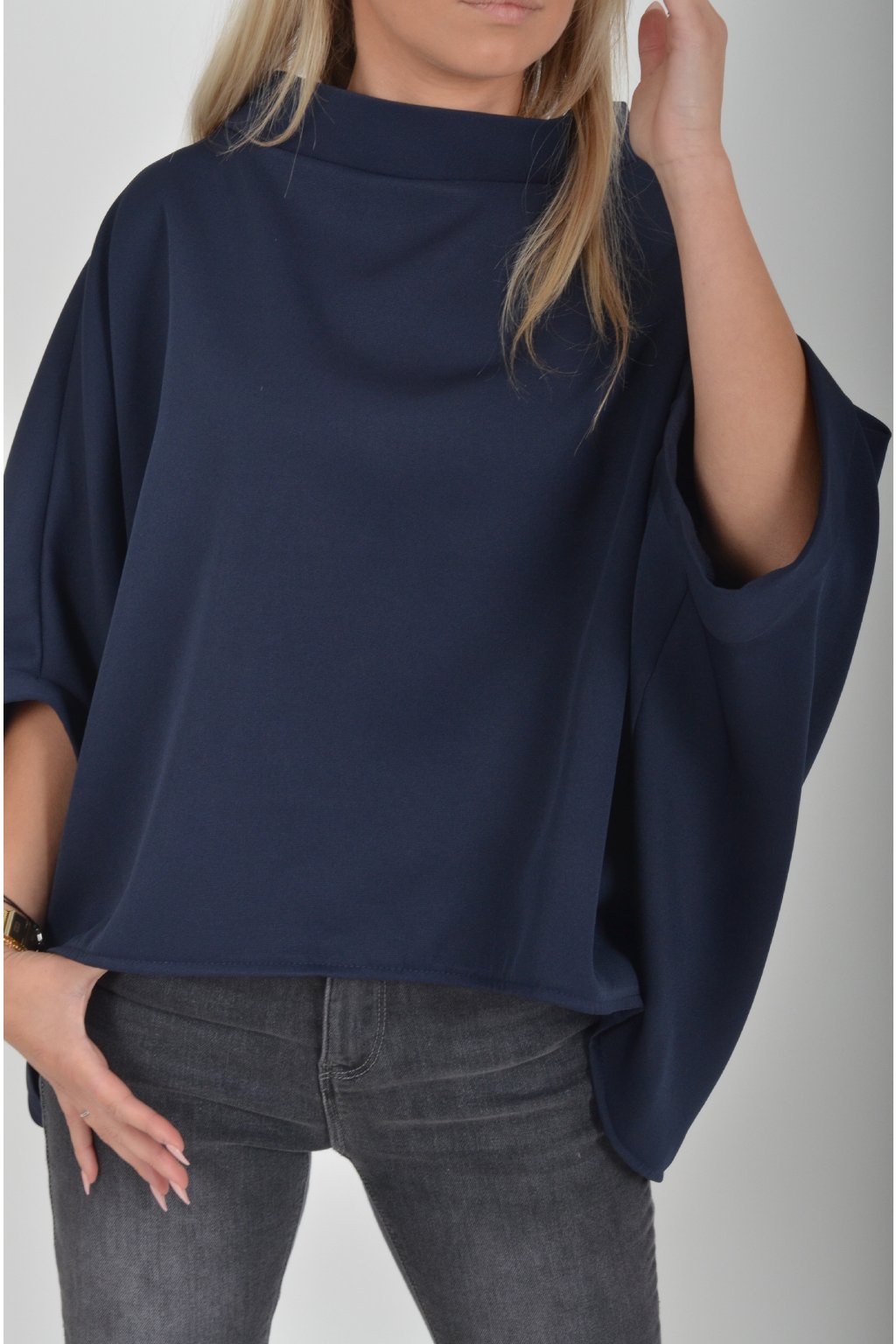 Halenka s netopýřím rukávem vhodná jak pro společenské události, tak i volnočasové nošení. Je vyrobena z velice příjemného a pevného materiálu. Přední část halenky je kratší než zadní. Je volnějšího střihu.