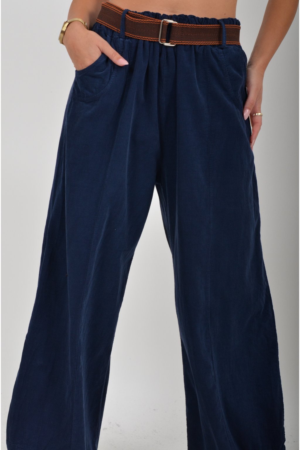 Tmavě modré manšestrové kalhoty ES5531