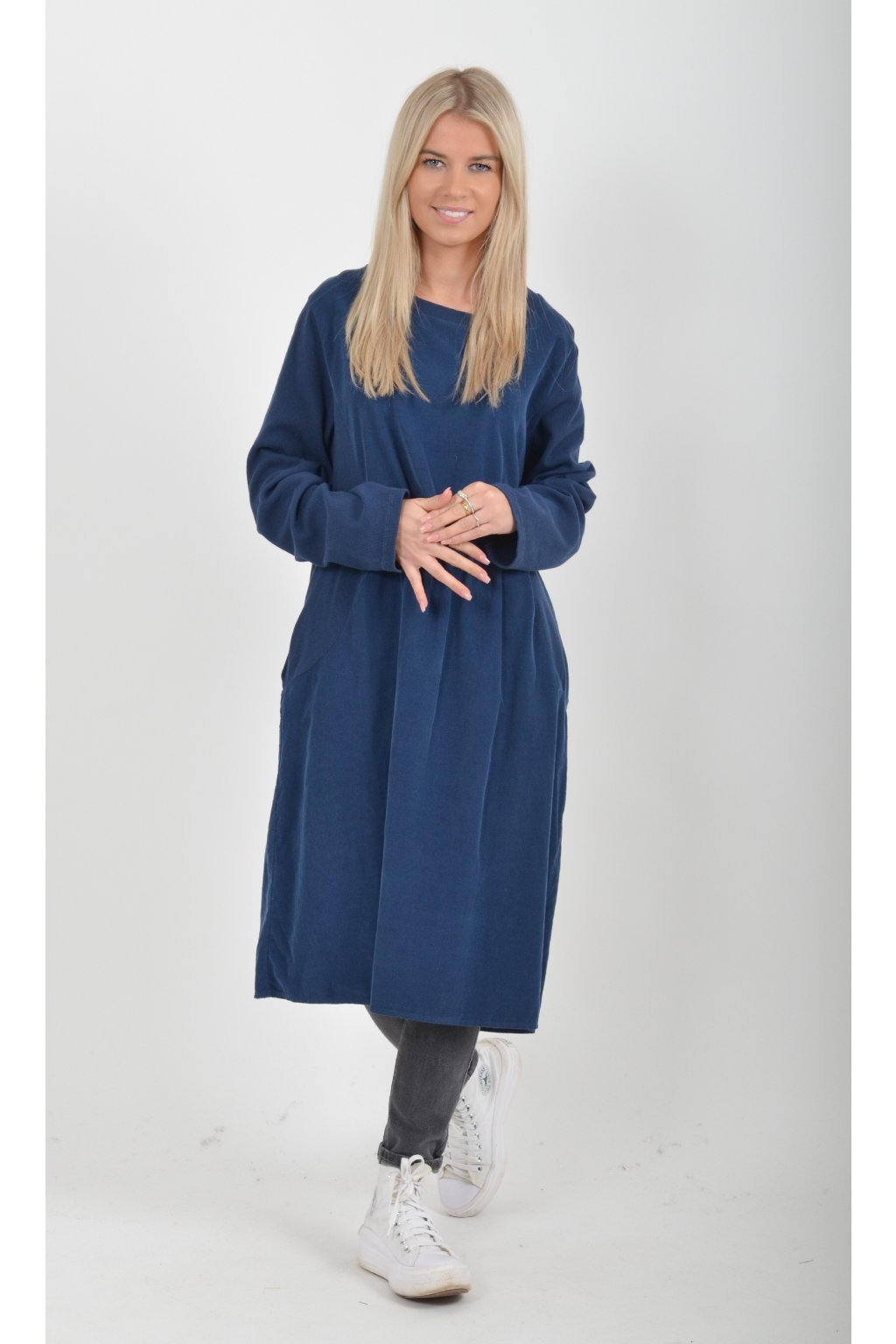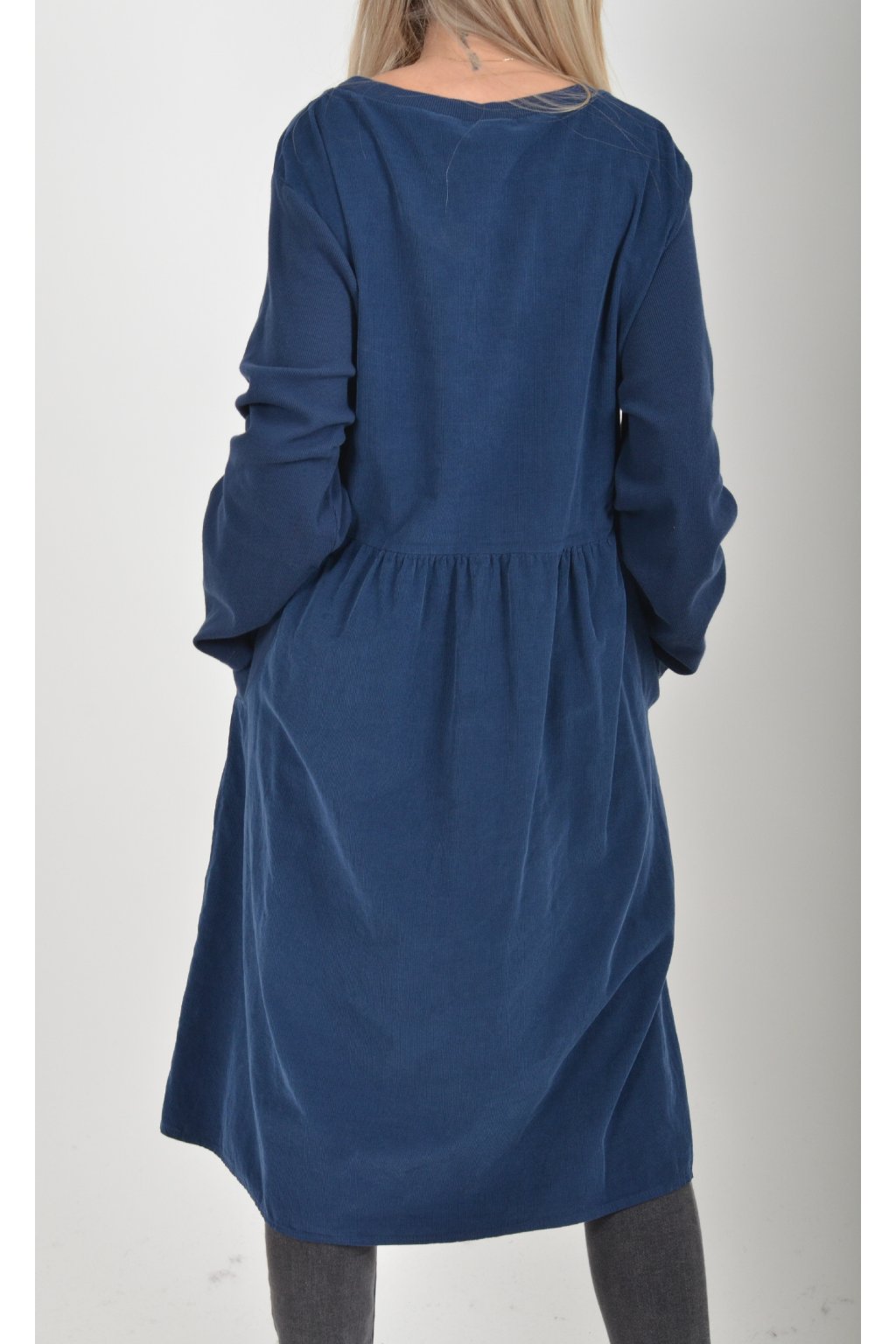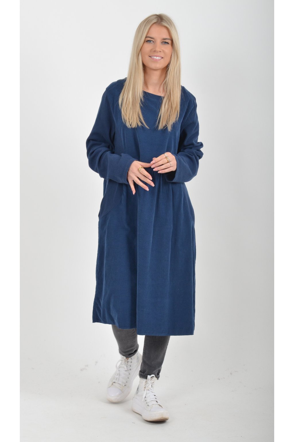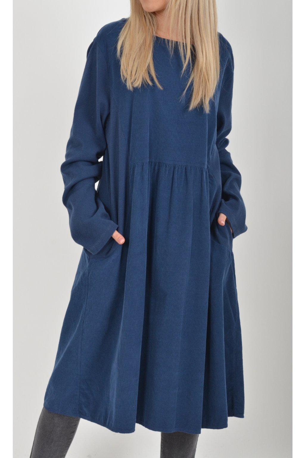 Jednobarevné manšestrové šaty s dlouhým rukávem a kapsami na bocích. Šaty jsou vyrobeny z velice příjemného a kvalitního materiálu. Jsou vhodné pro každodenní nošení a mají áčkový střih.