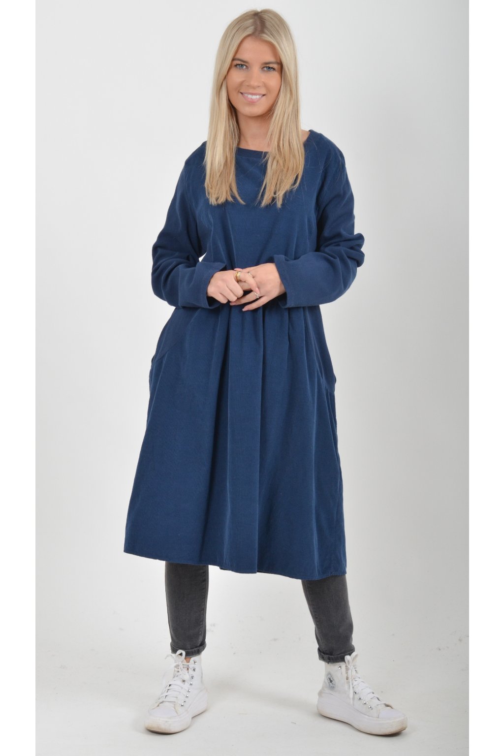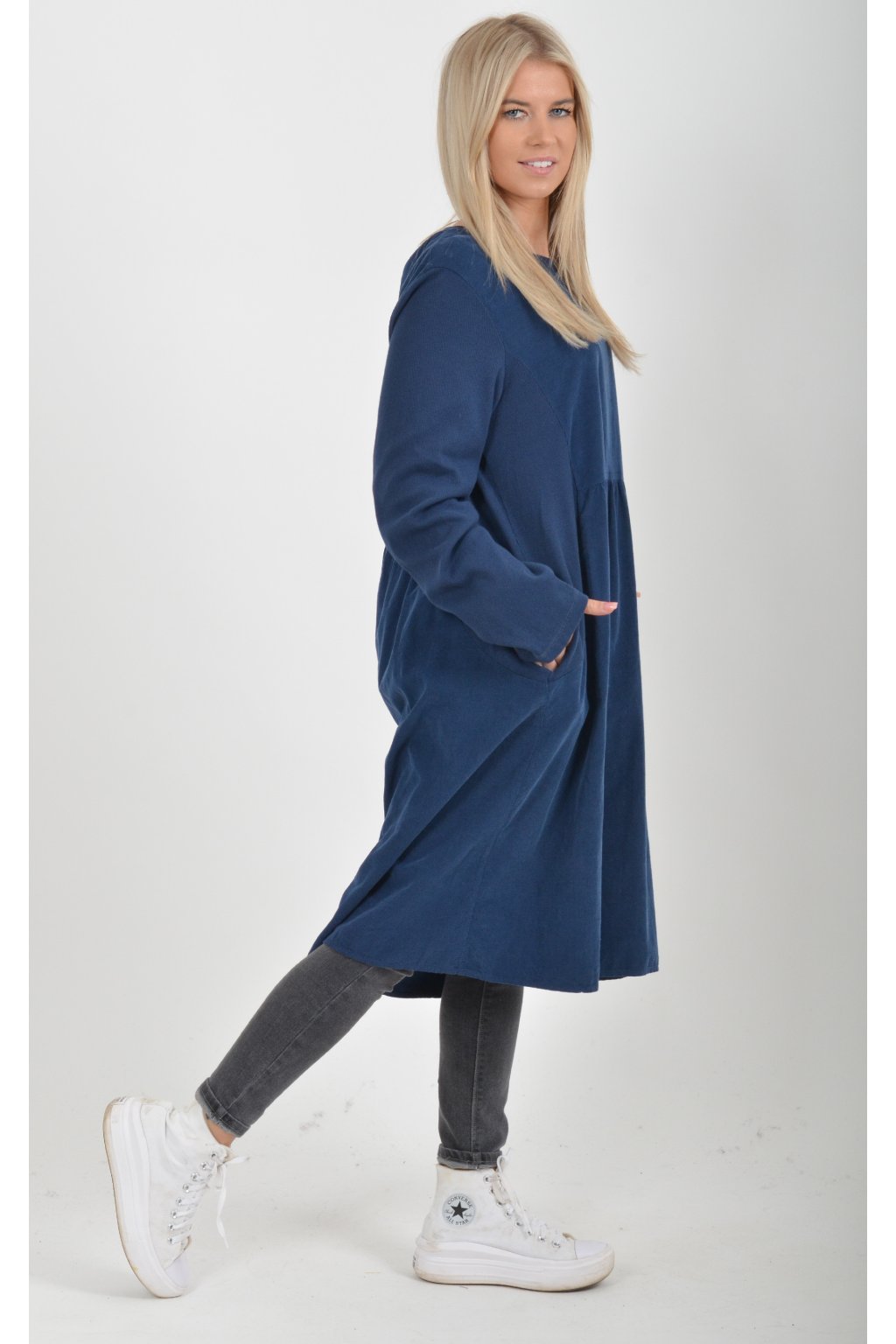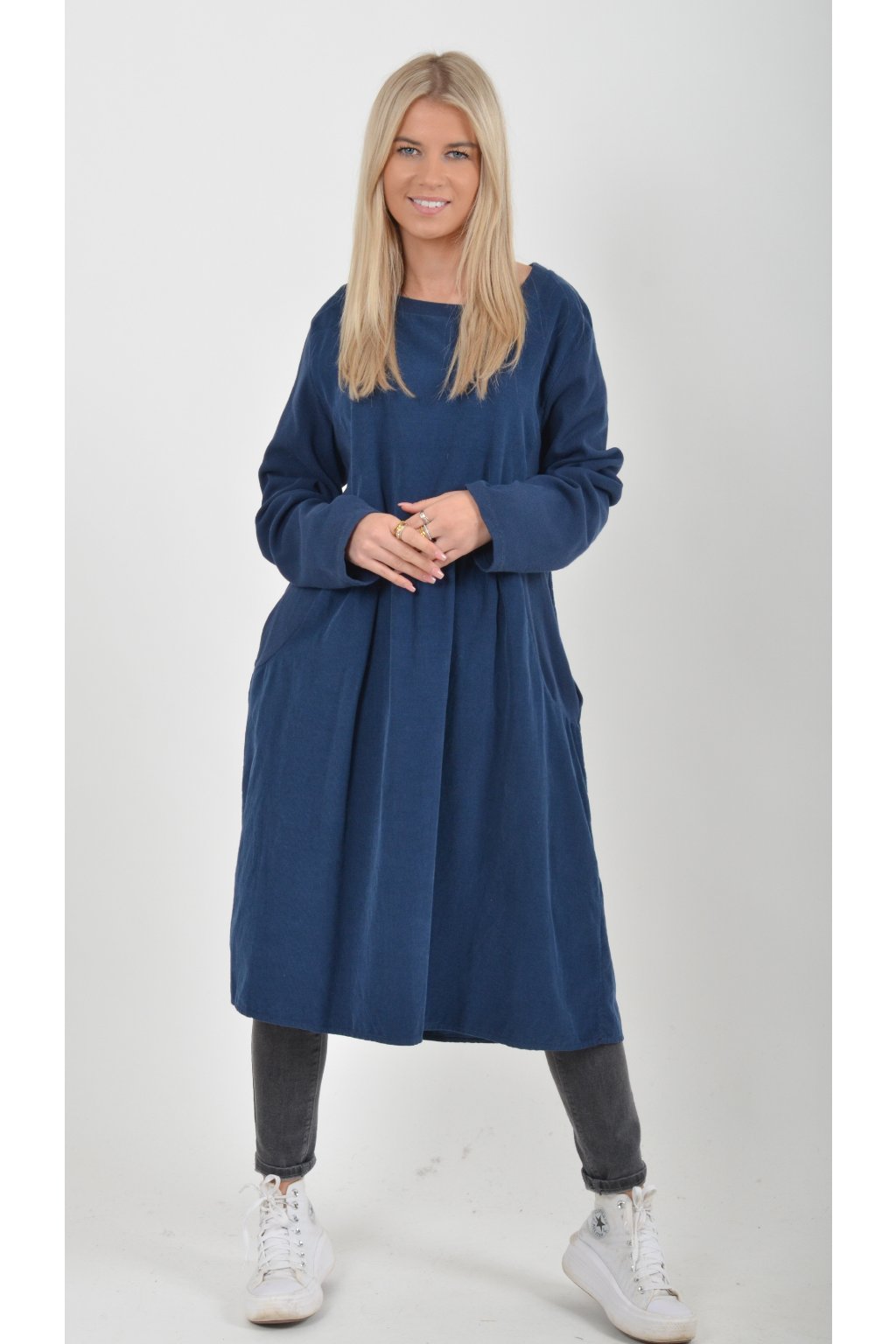 Jednobarevné manšestrové šaty s dlouhým rukávem a kapsami na bocích. Šaty jsou vyrobeny z velice příjemného a kvalitního materiálu. Jsou vhodné pro každodenní nošení a mají áčkový střih.