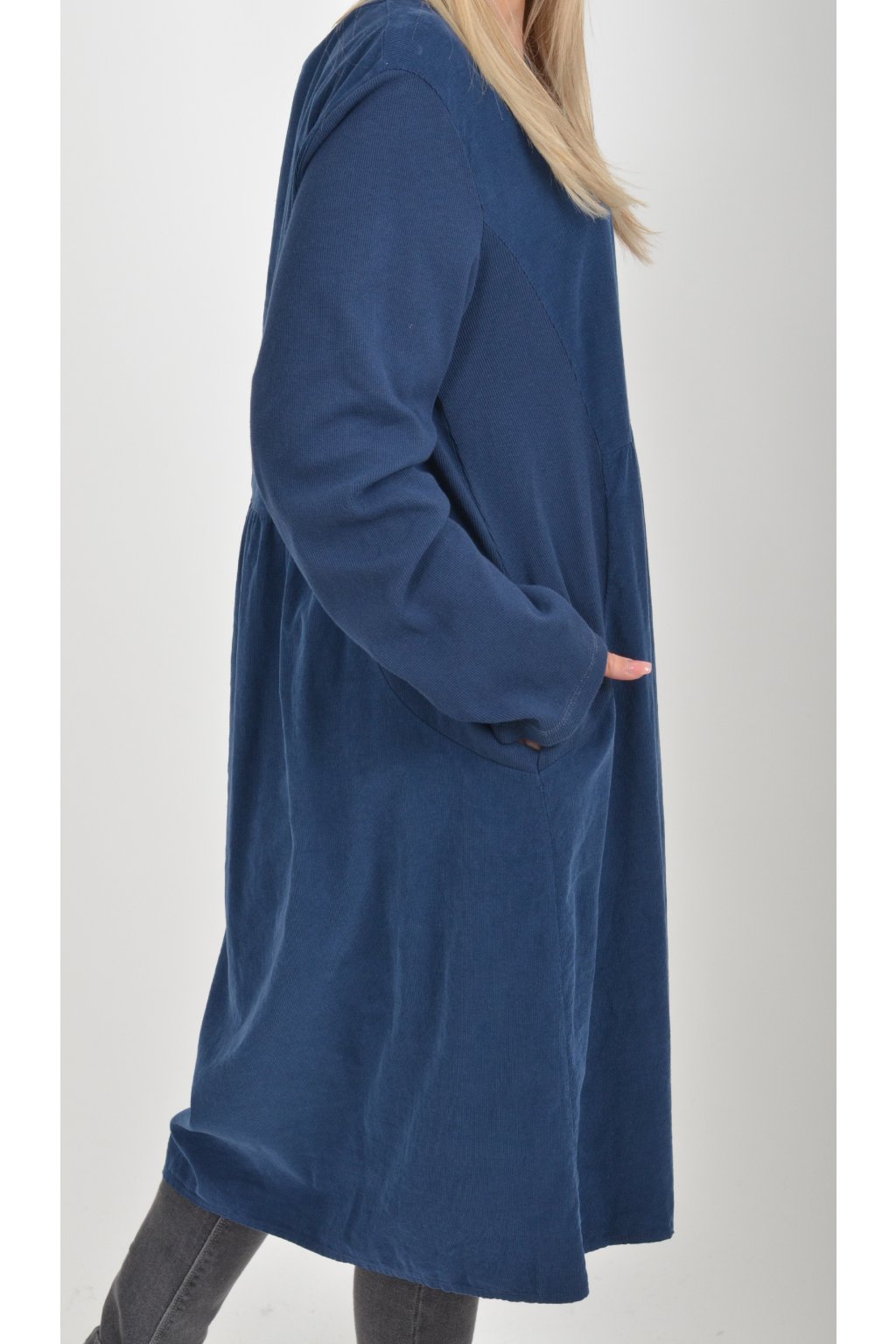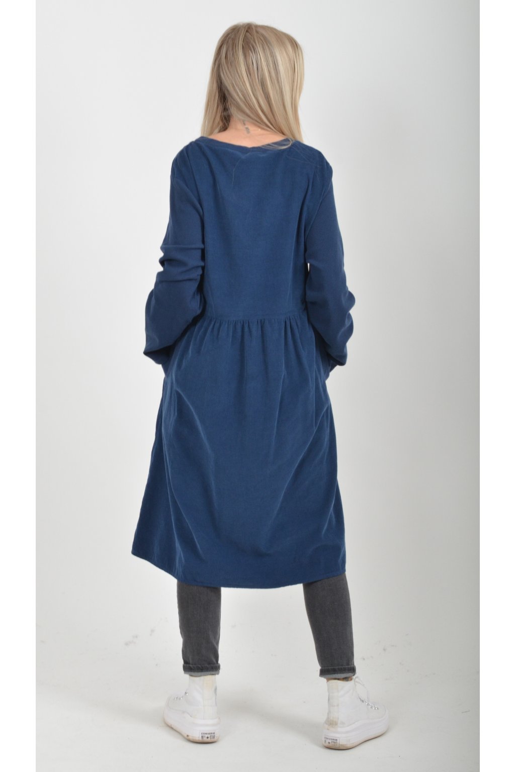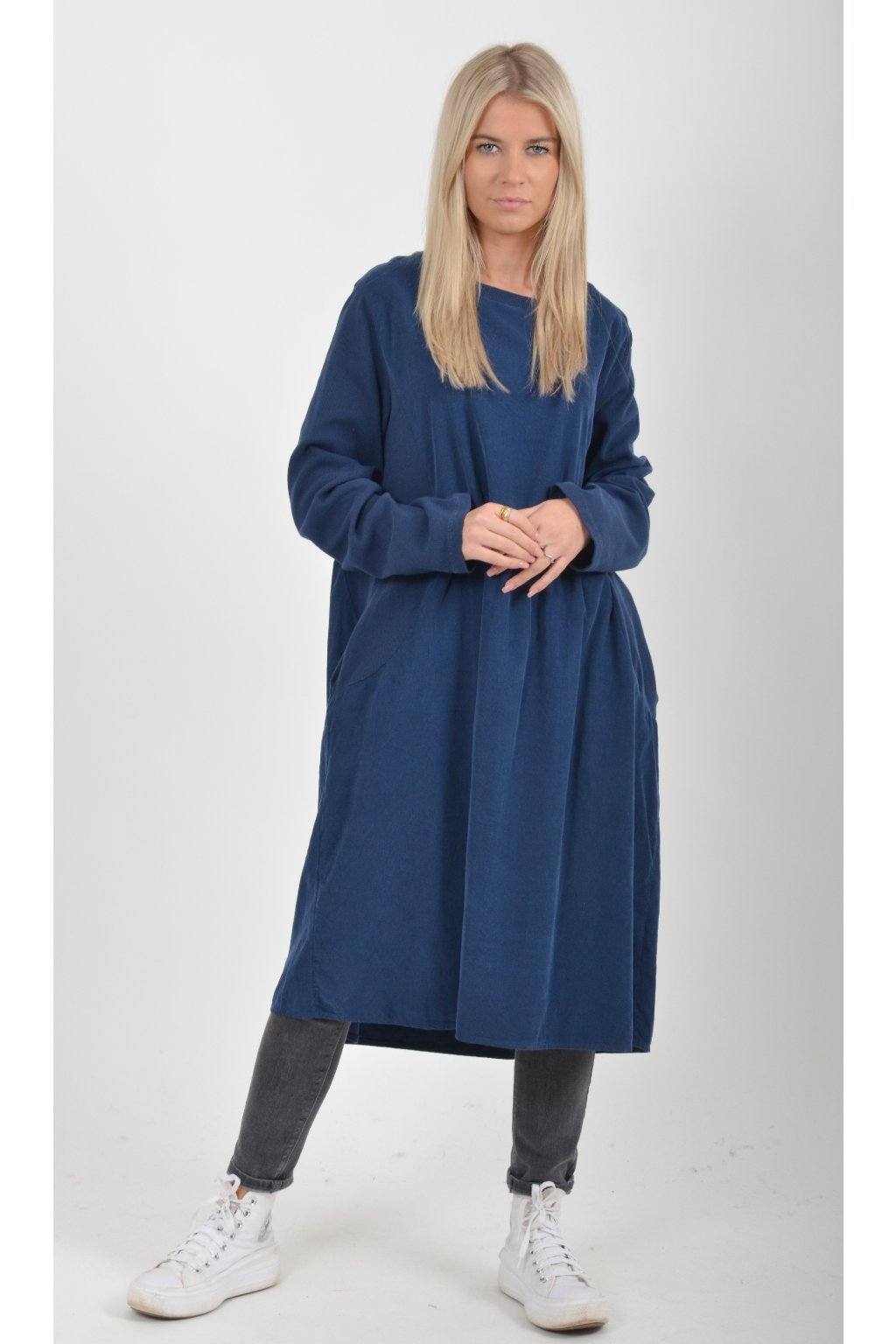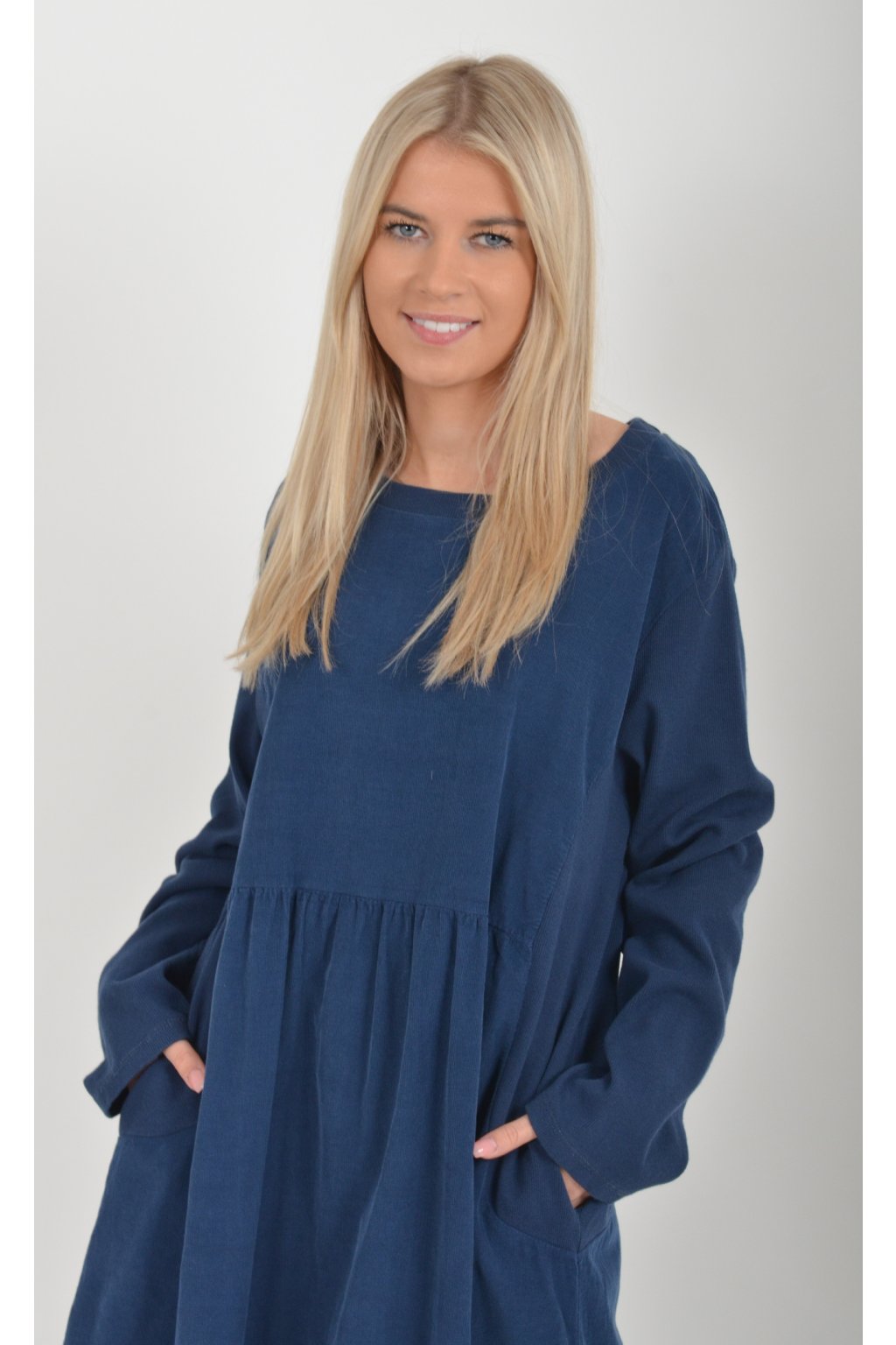 Jednobarevné manšestrové šaty s dlouhým rukávem a kapsami na bocích. Šaty jsou vyrobeny z velice příjemného a kvalitního materiálu. Jsou vhodné pro každodenní nošení a mají áčkový střih.