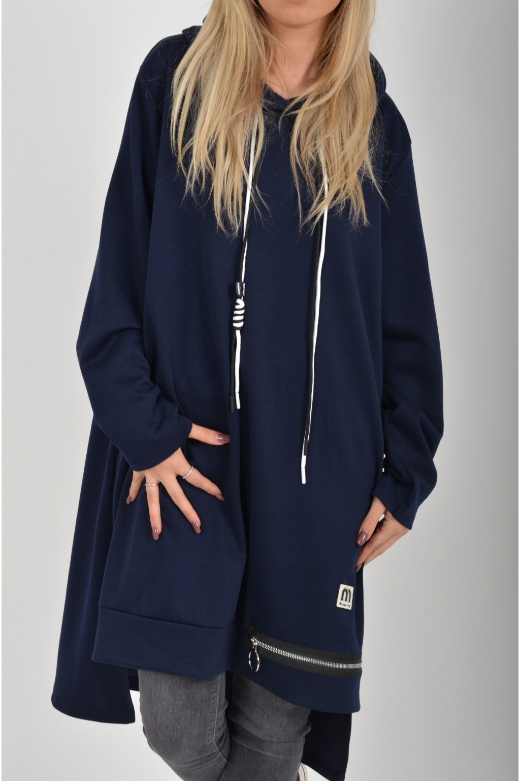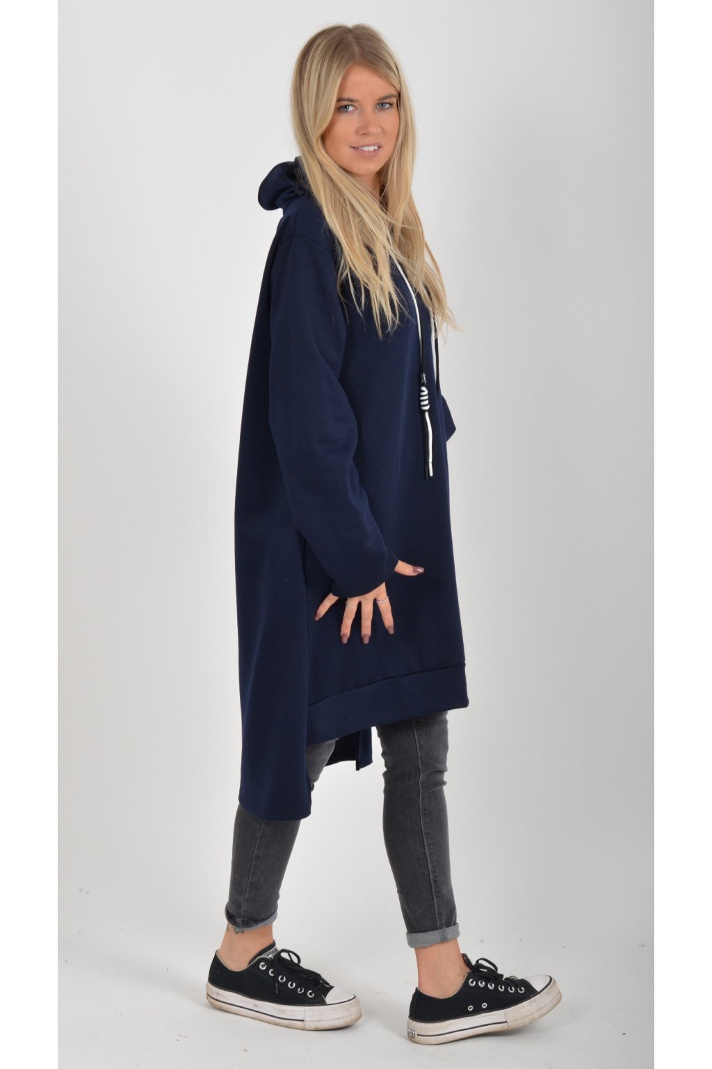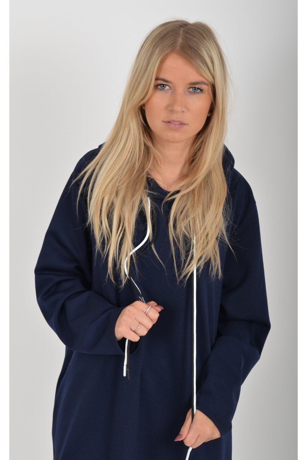 Mikinové šaty s dlouhým rukávem, kapucí a kapsami na bocích. Šaty jsou vyrobeny z velice příjemného a kvalitního materiálu. Jsou vhodné pro každodenní nošení.