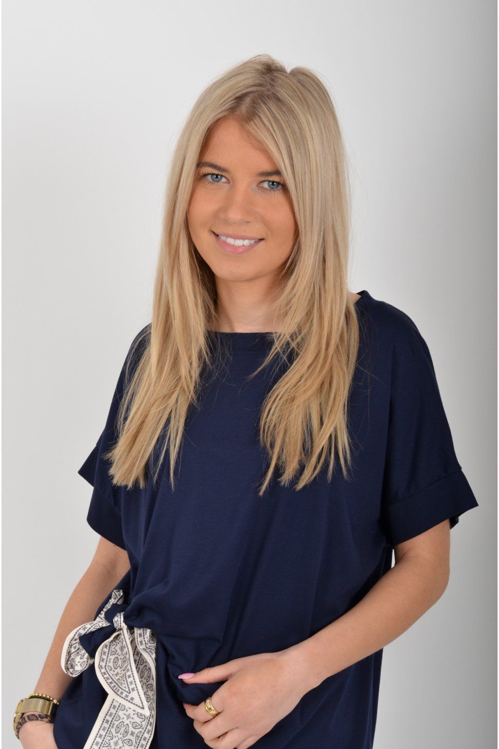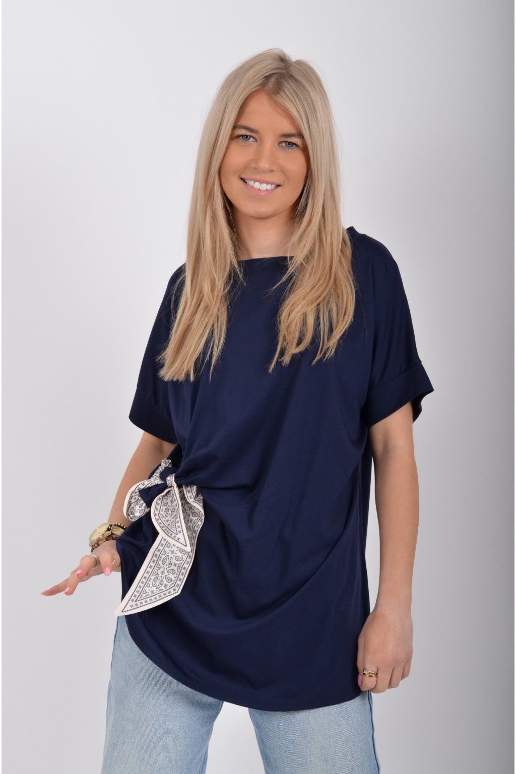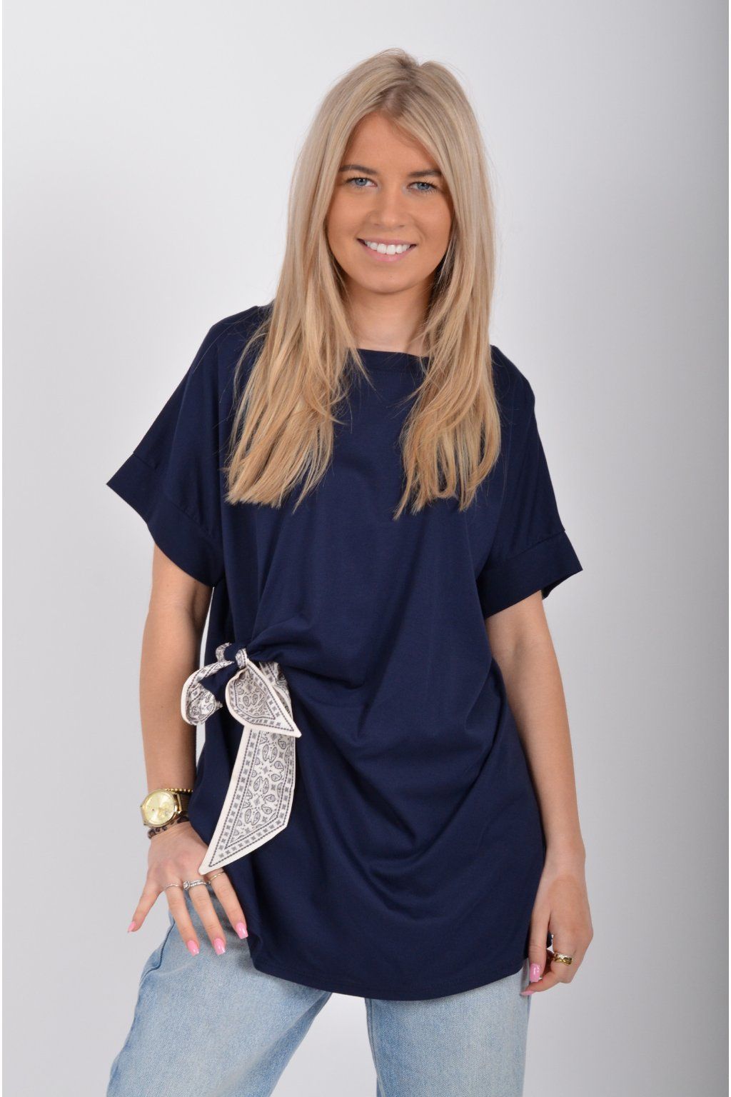 Tričko s krátkým rukávem a vázáním na boku vyrobené z velice příjemného a elastické materiálu. Je ideální pro každodenní nošení.