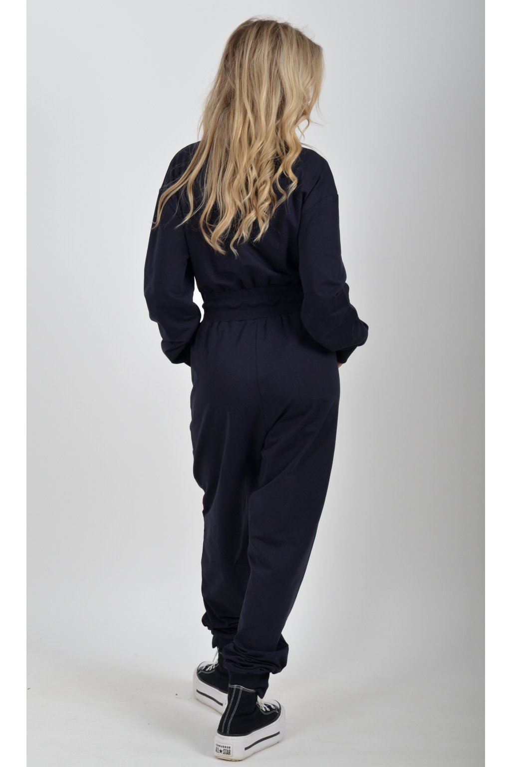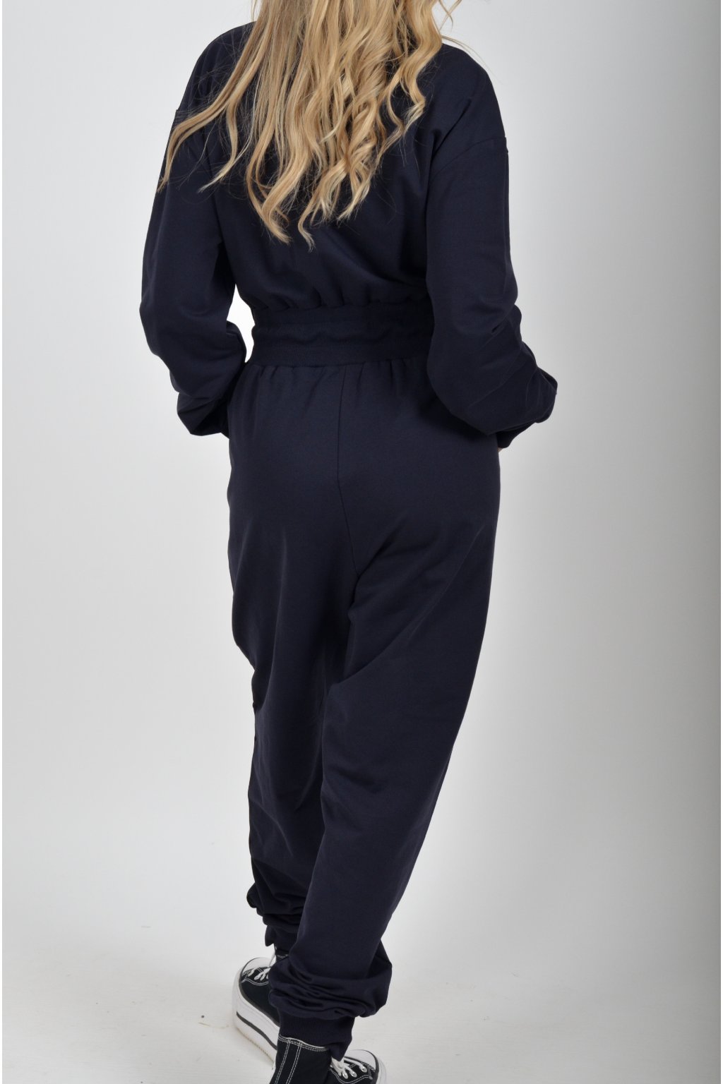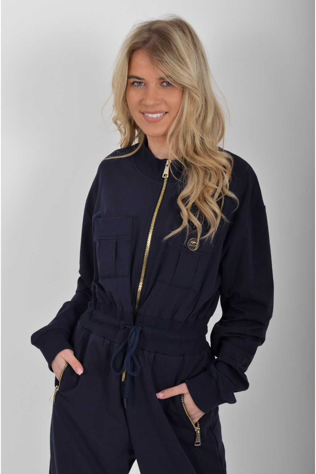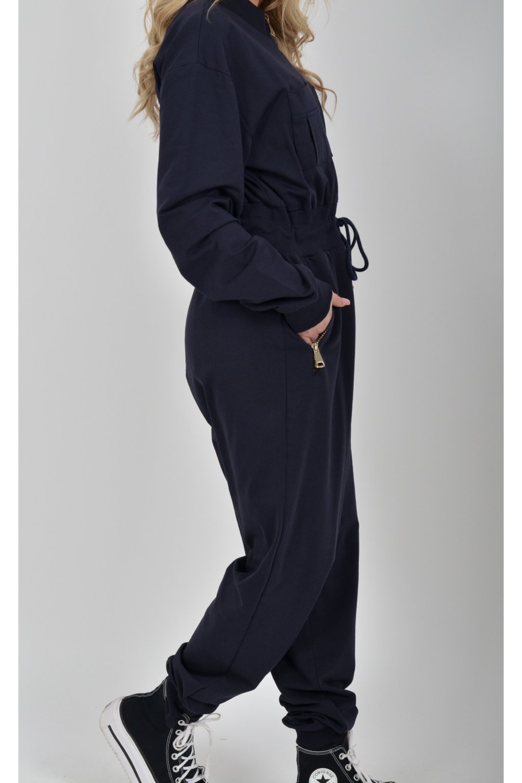Mikinový overal turecké značky Megi s dlouhým rukávem, kapucí a zapínáním na zip. Je ideální pro nošení do jarního počasí. Má kapsy na zip a v pase zapracovanou šňůrku pro libovolné stažení.