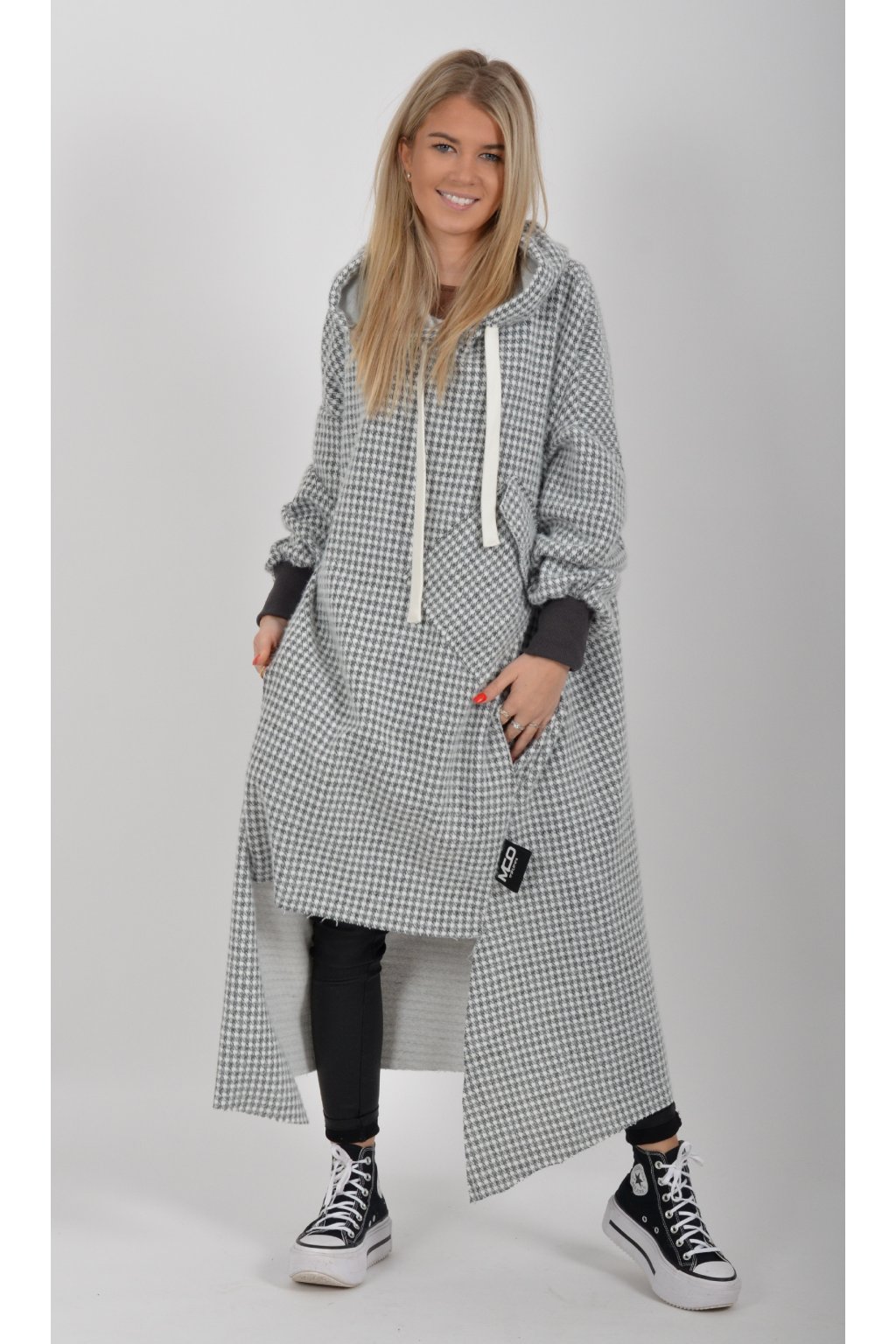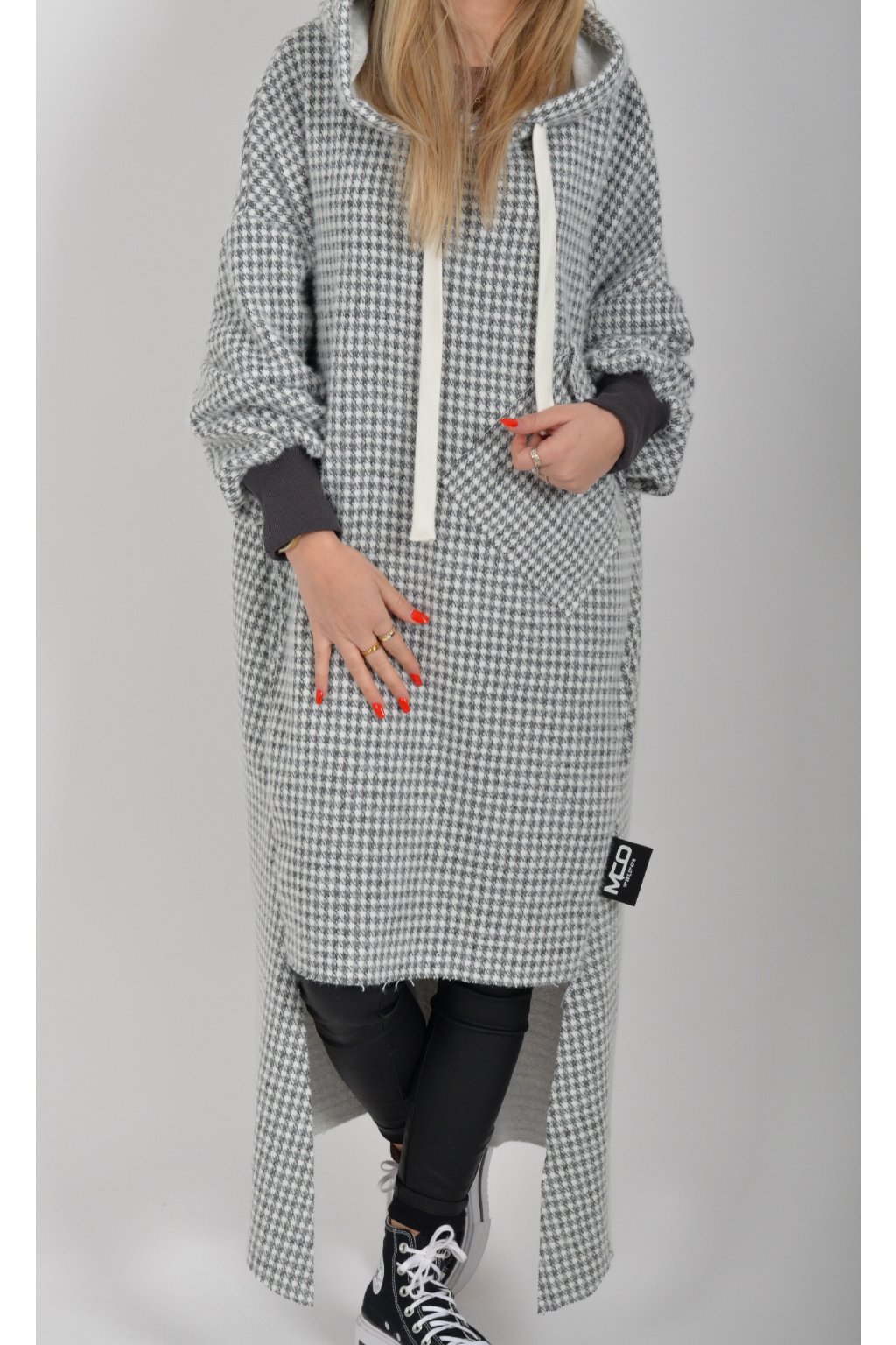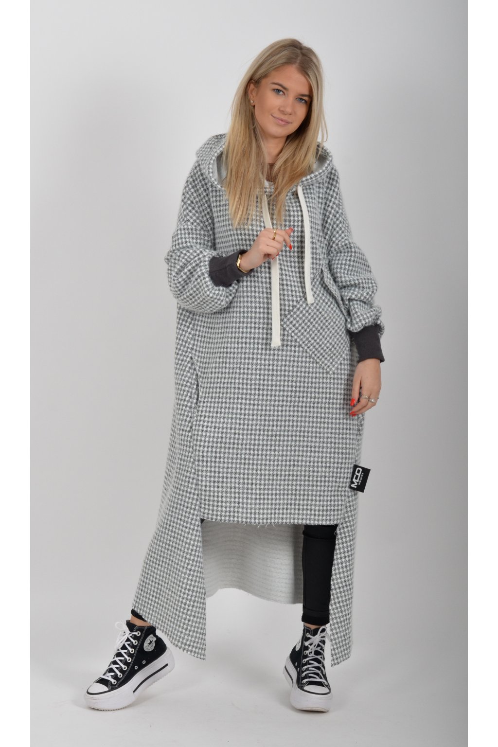 Mikinové dlouhé šaty značky Miss City Official. Šaty mají rovný střih, kapuci, kapsy v na bocích a jednu v přední části. Spodní část šatů je "vykouslá" Jsou vyrobené z velice příjemného, kvalitního a lehce zatepleného materiálu.
