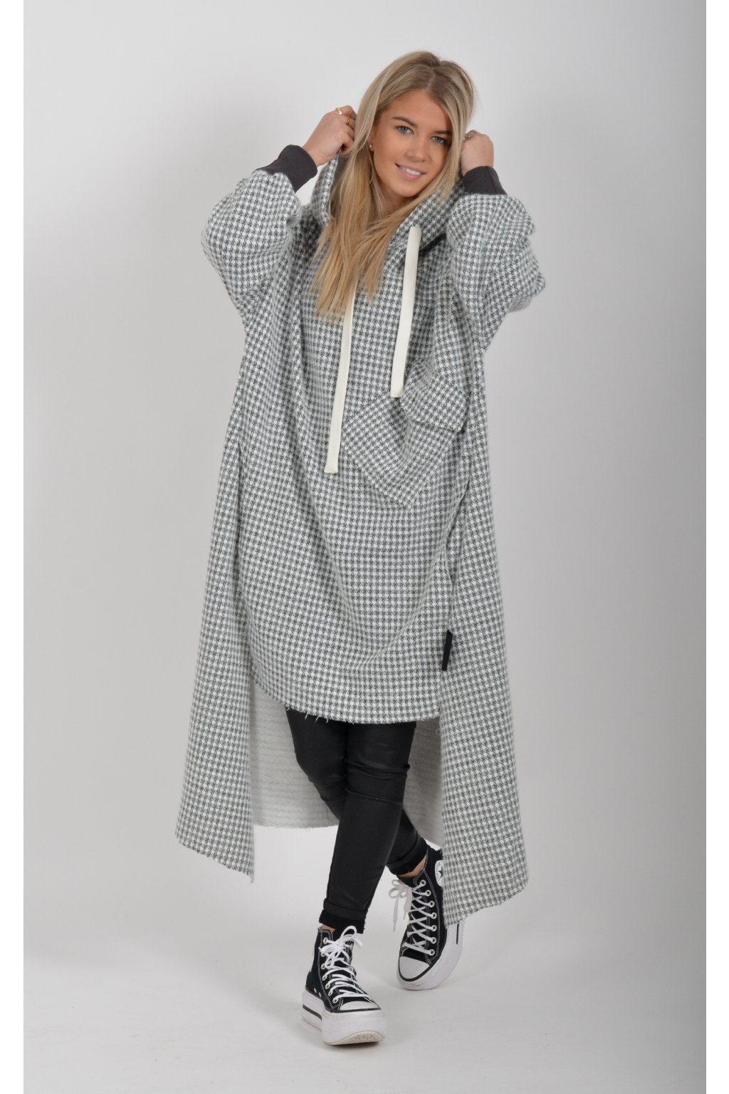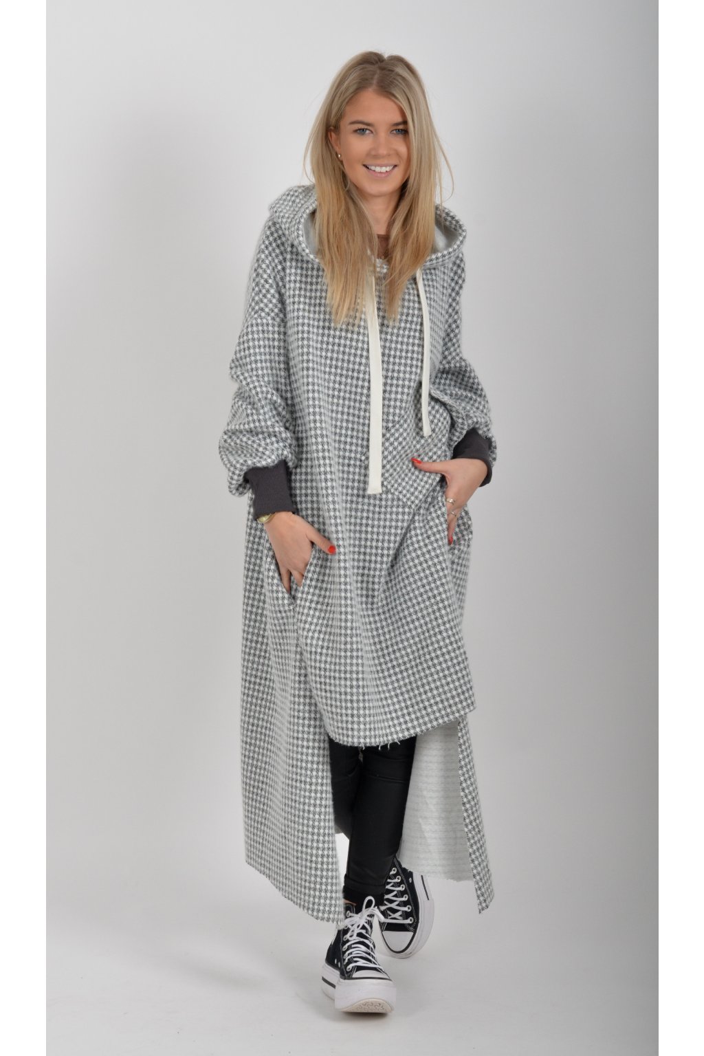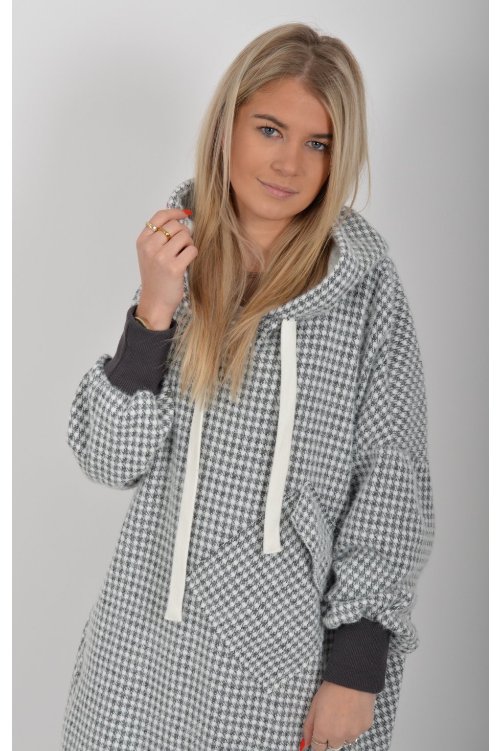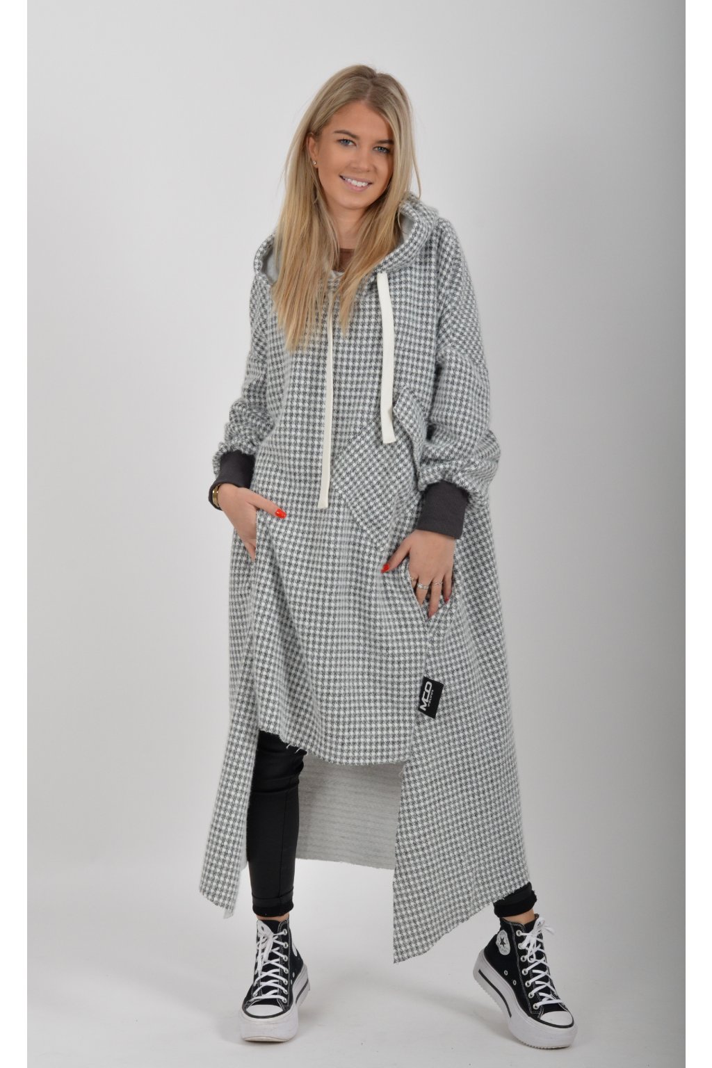 Mikinové dlouhé šaty značky Miss City Official. Šaty mají rovný střih, kapuci, kapsy v na bocích a jednu v přední části. Spodní část šatů je "vykouslá" Jsou vyrobené z velice příjemného, kvalitního a lehce zatepleného materiálu.