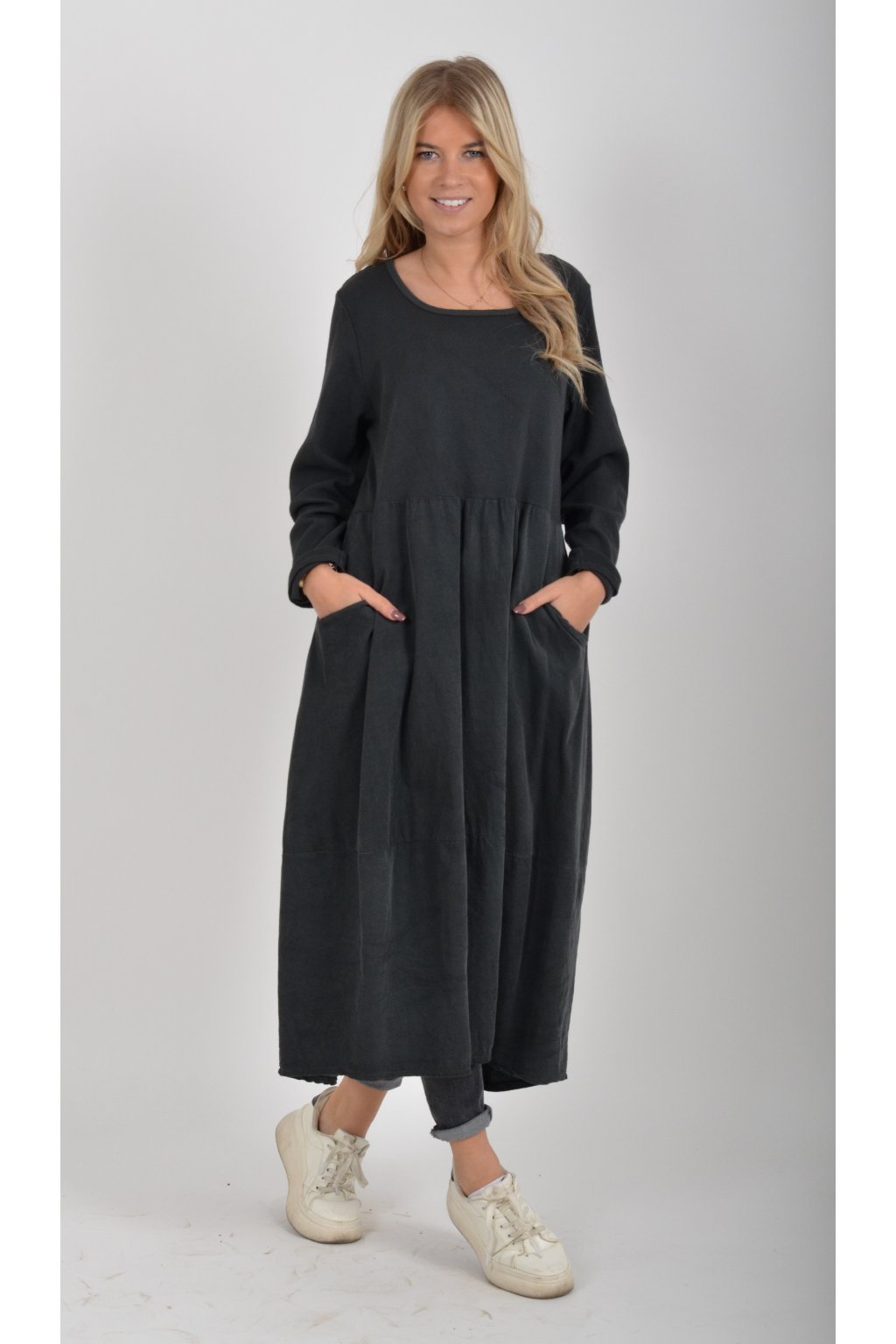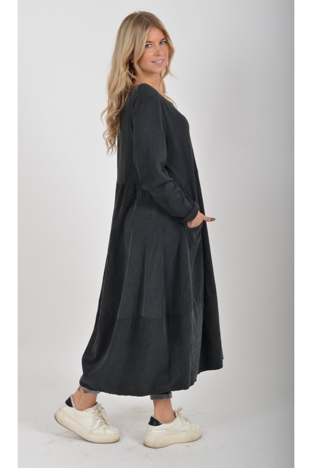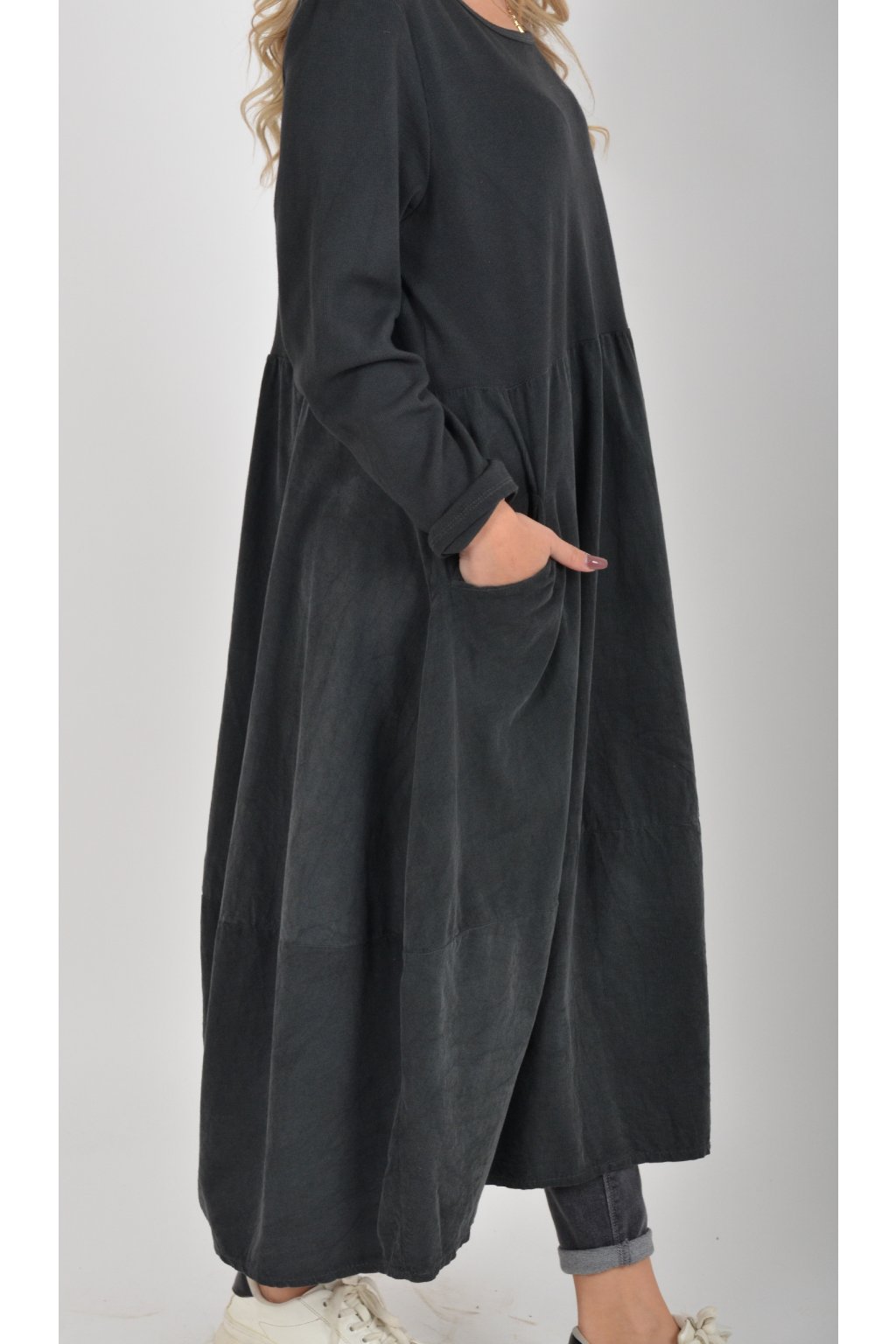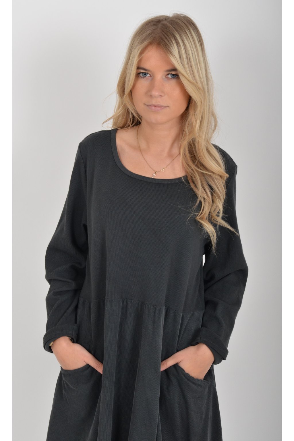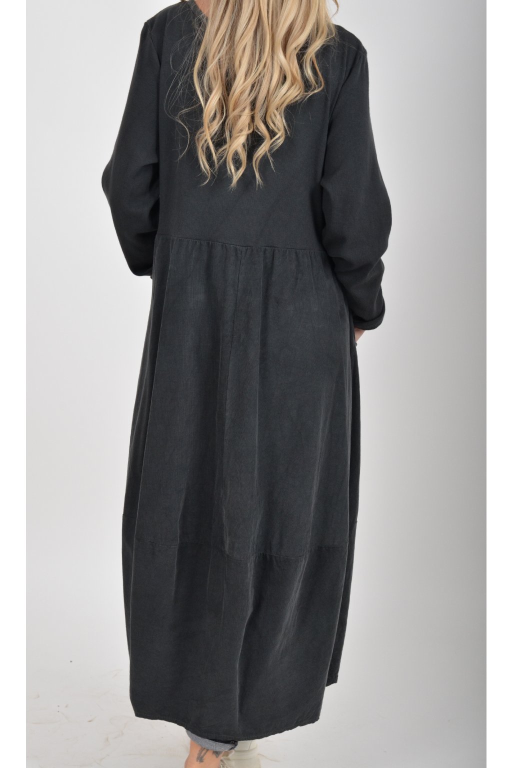 Dlouhé manšestrové šaty áčkového střihu s kapsami v přední části. Šaty jsou z velice příjemného materiál a jsou vhodné do podzimních dní.