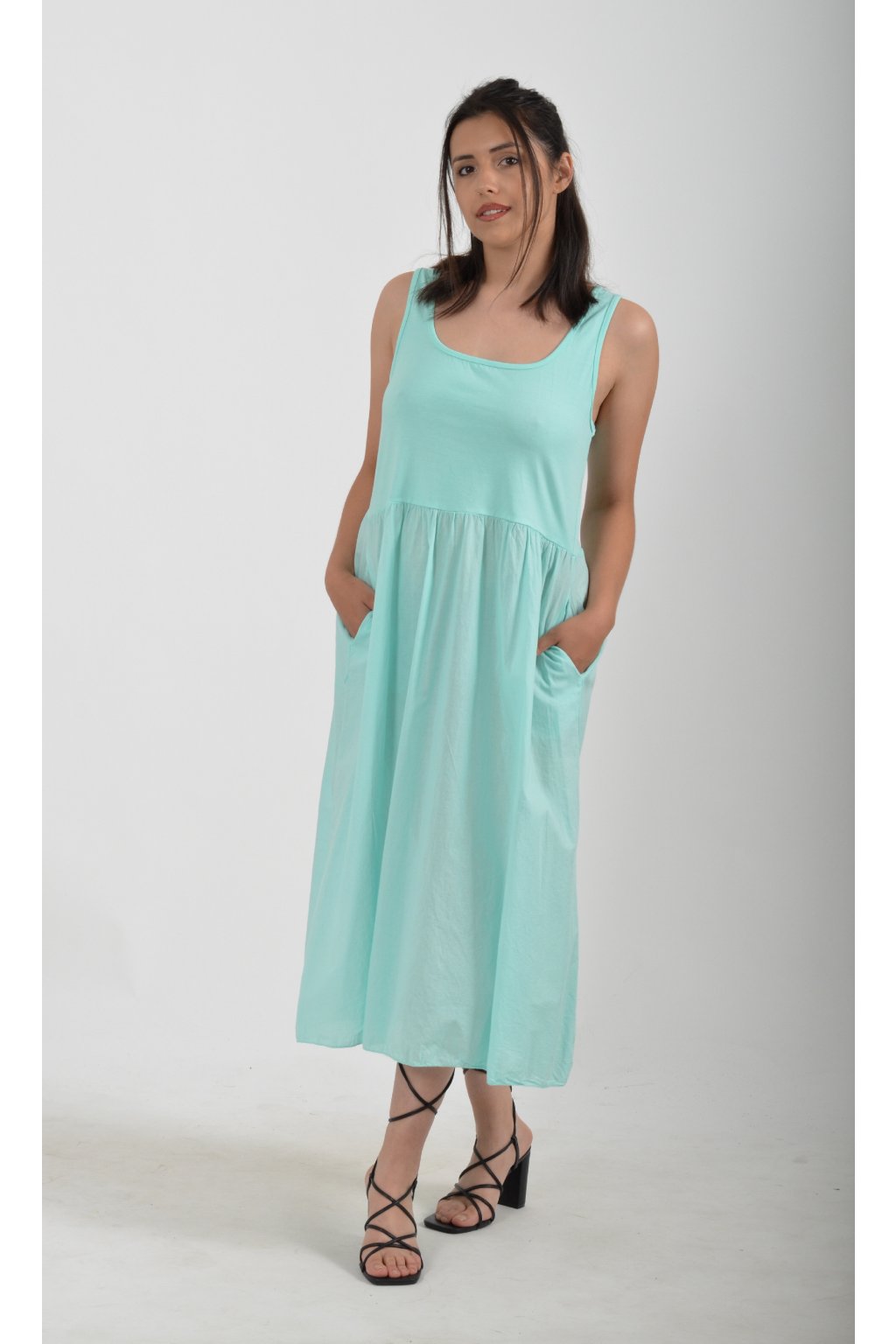 Jednobarevné šaty z velice příjemného a lehounkého materiálu. Na bocích mají kapsy a jsou vhodné pro nošení v letních dnech.