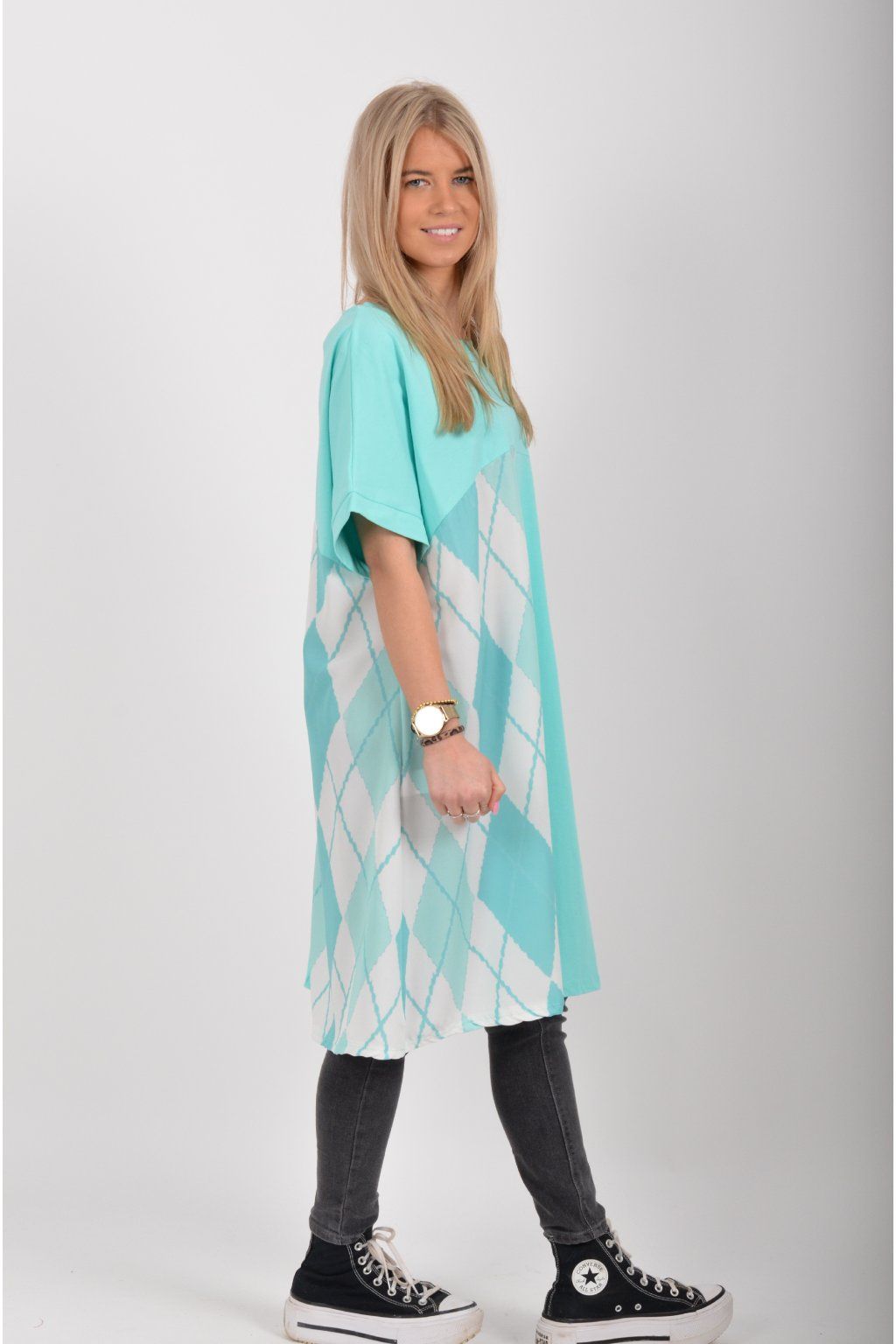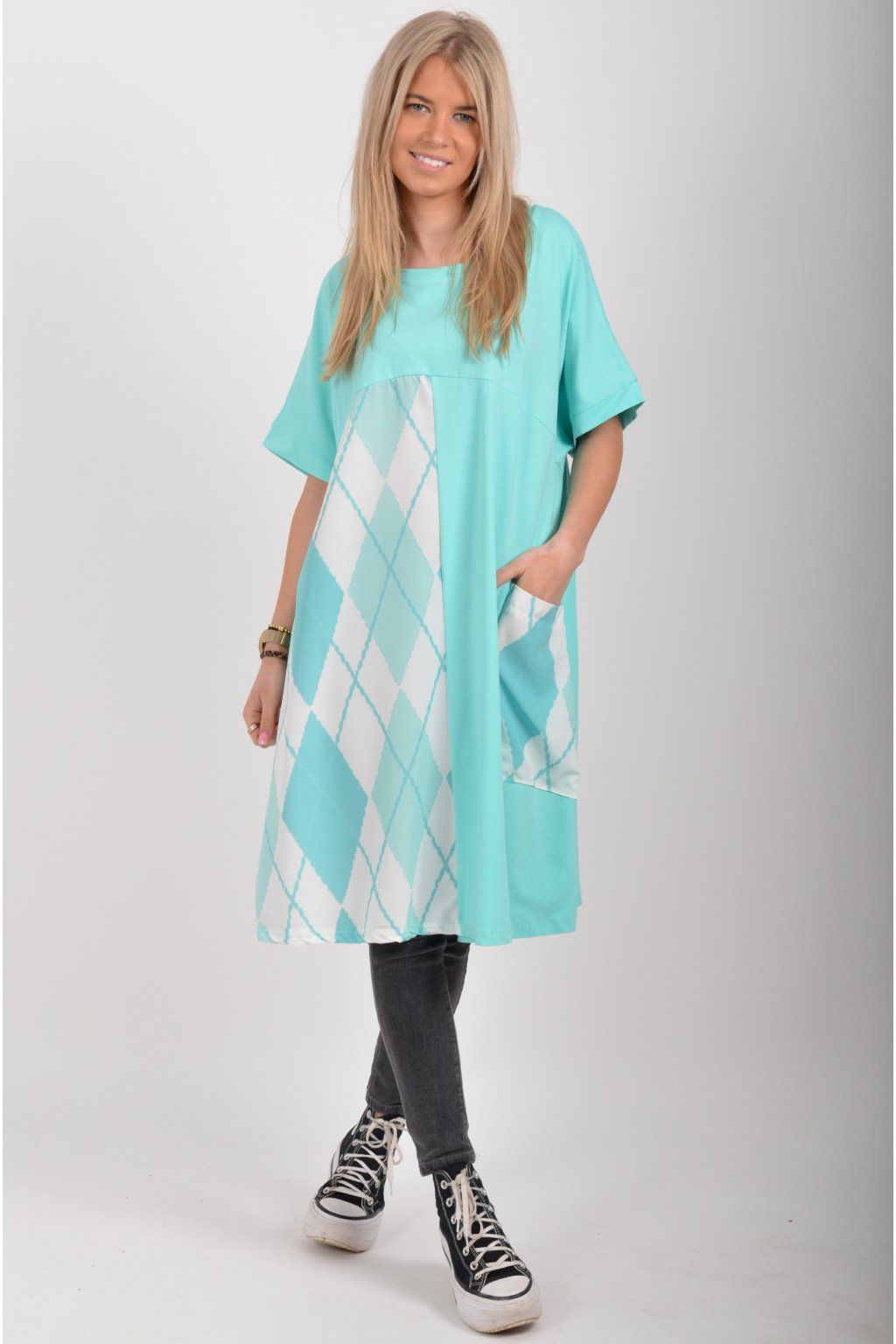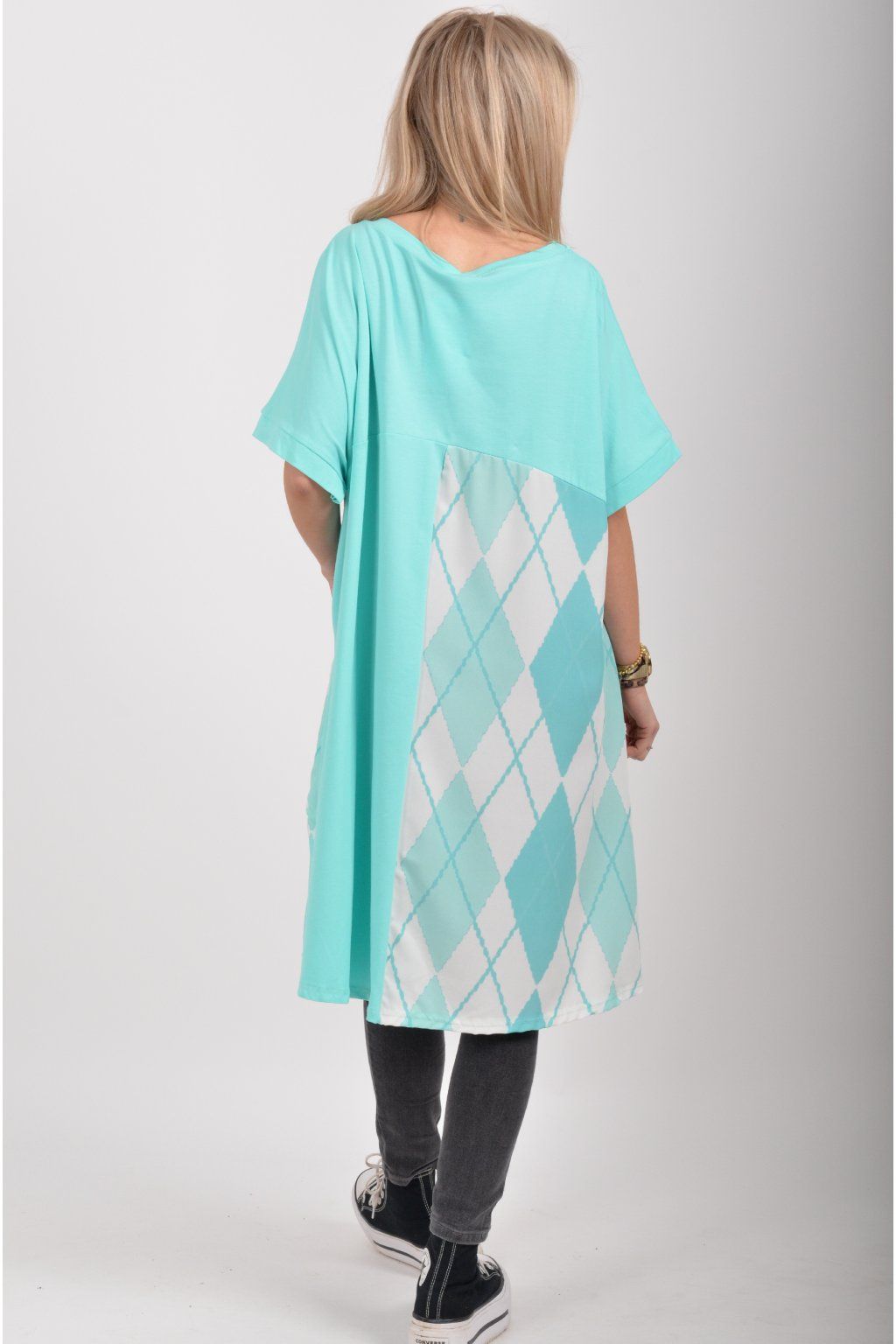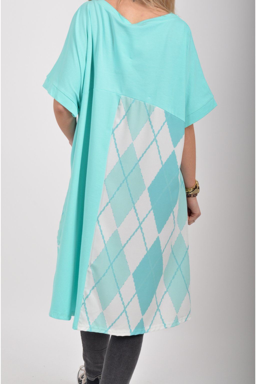 Zajímavé bavlněné šaty se vzorem. Mají áčkový střih a krátký rukáv. Jsou vyrobené z velice příjemného a elastického materiálu.