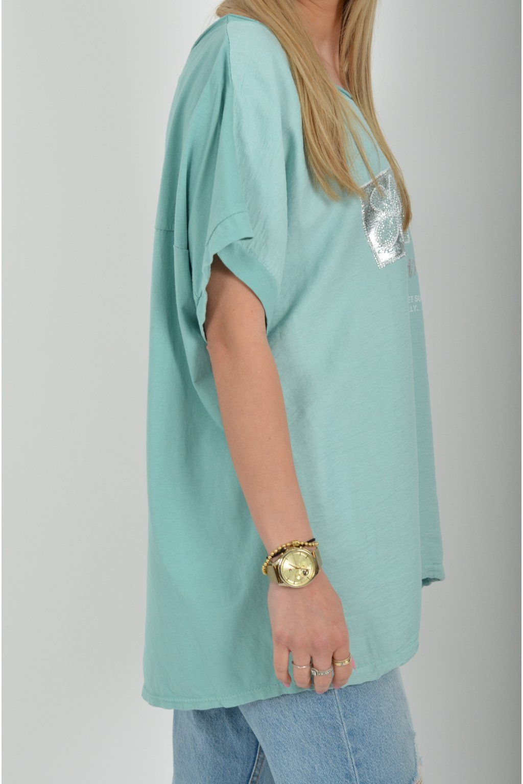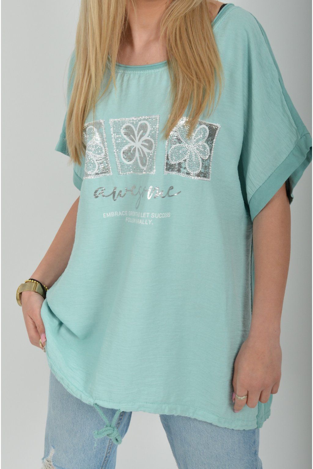 Tričko s krátkým rukávem potiskem a kamínkovým zdobením. Tričko je vyrobené z velice příjemného materiálu. Ve spodní části je zapracovaná tkanice pro libovolné stažení.