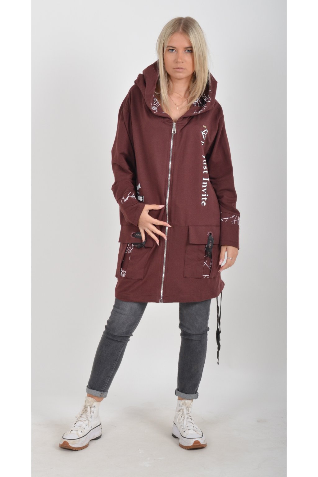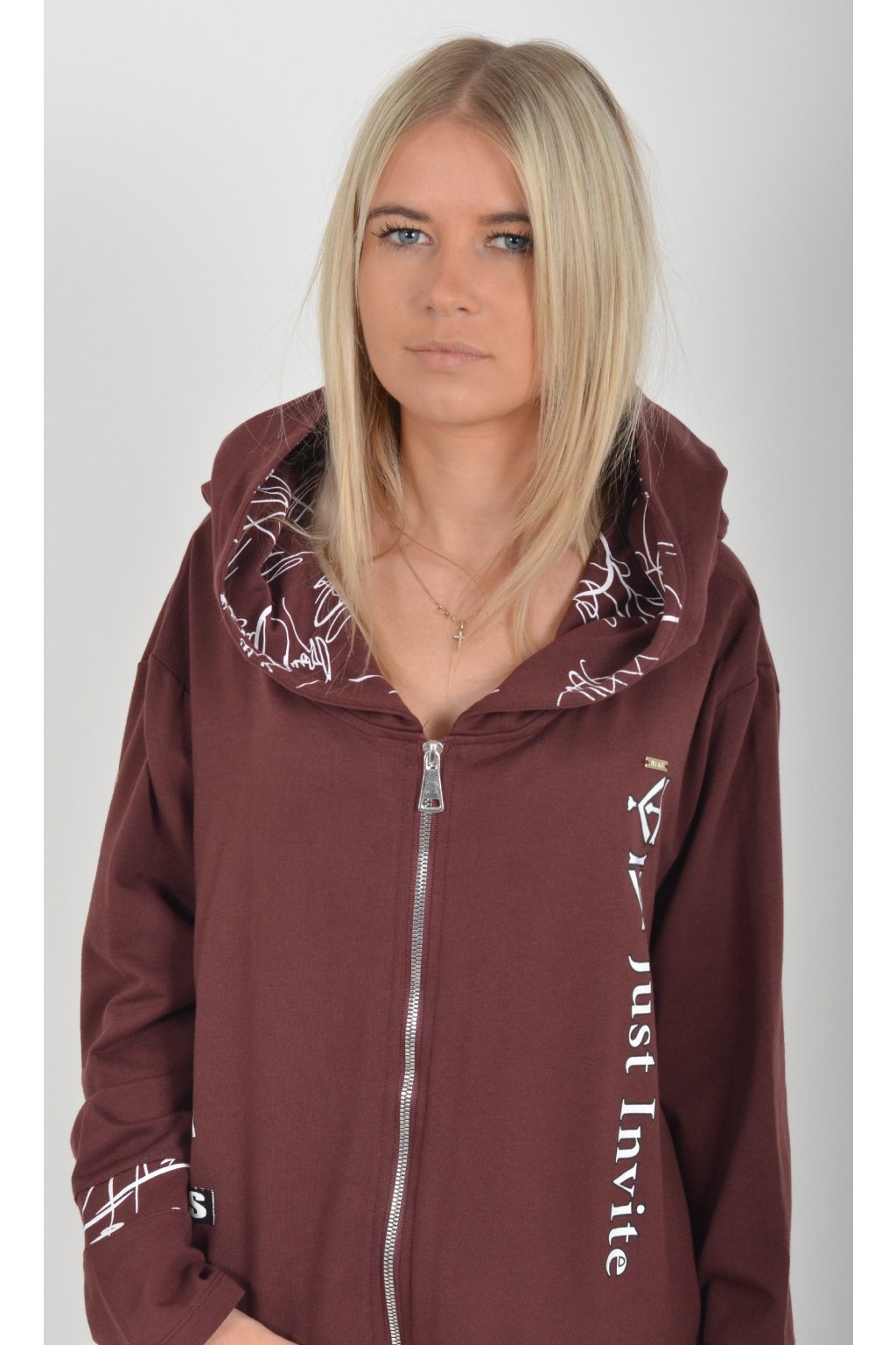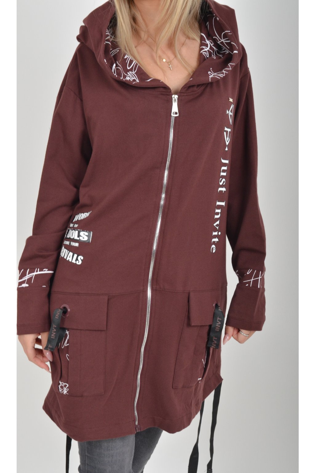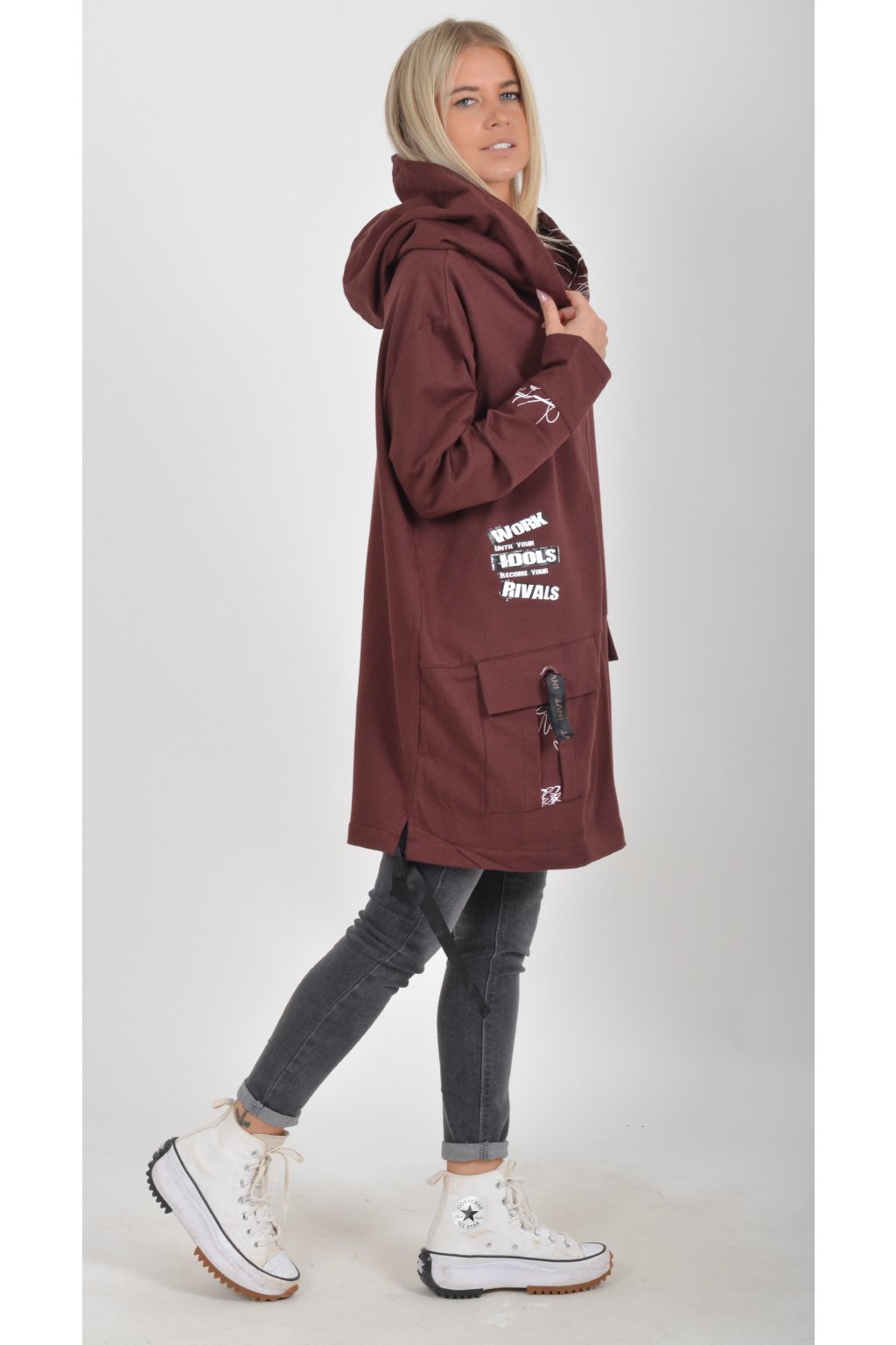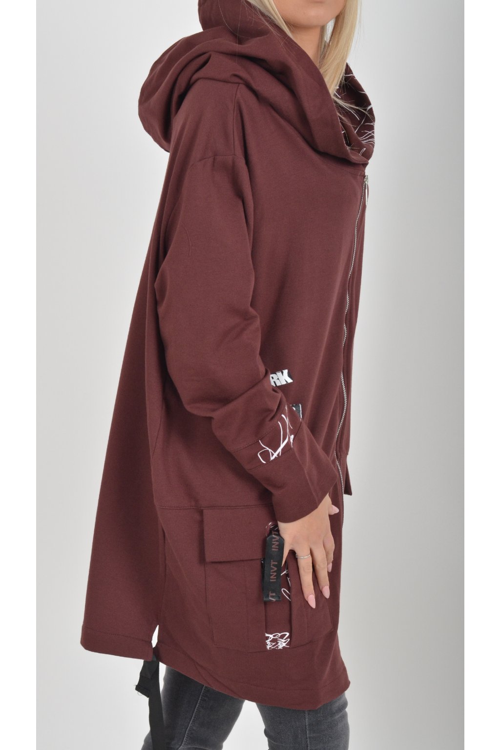 Prodloužená mikina s potiskem a dlouhým rukávem. V přední části má kapsy a ve spodní části je zapracovaná stuha pro libovolné stažení. Je vyrobena z velice příjemné a kvalitní turecké bavlny.
