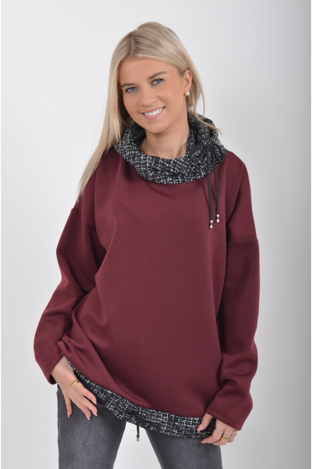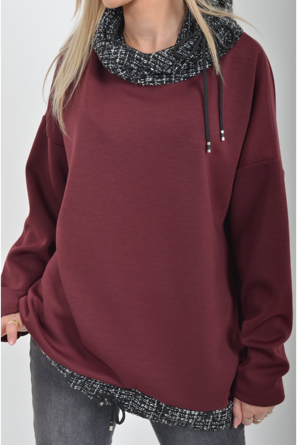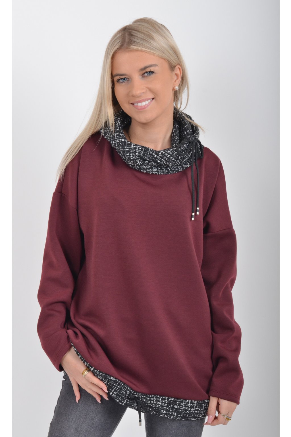 Stylová mikina s ozdobnými lemem a kapucí. Je vyrobena z velice příjemného materiálu na dotek. Ve spodní části má zapracovanou tkaničku, která slouží k libovolnému stažení. Hodí se jak k džínům, tak i k legínám. Heboučký materiál zaručí příjemně strávený den.