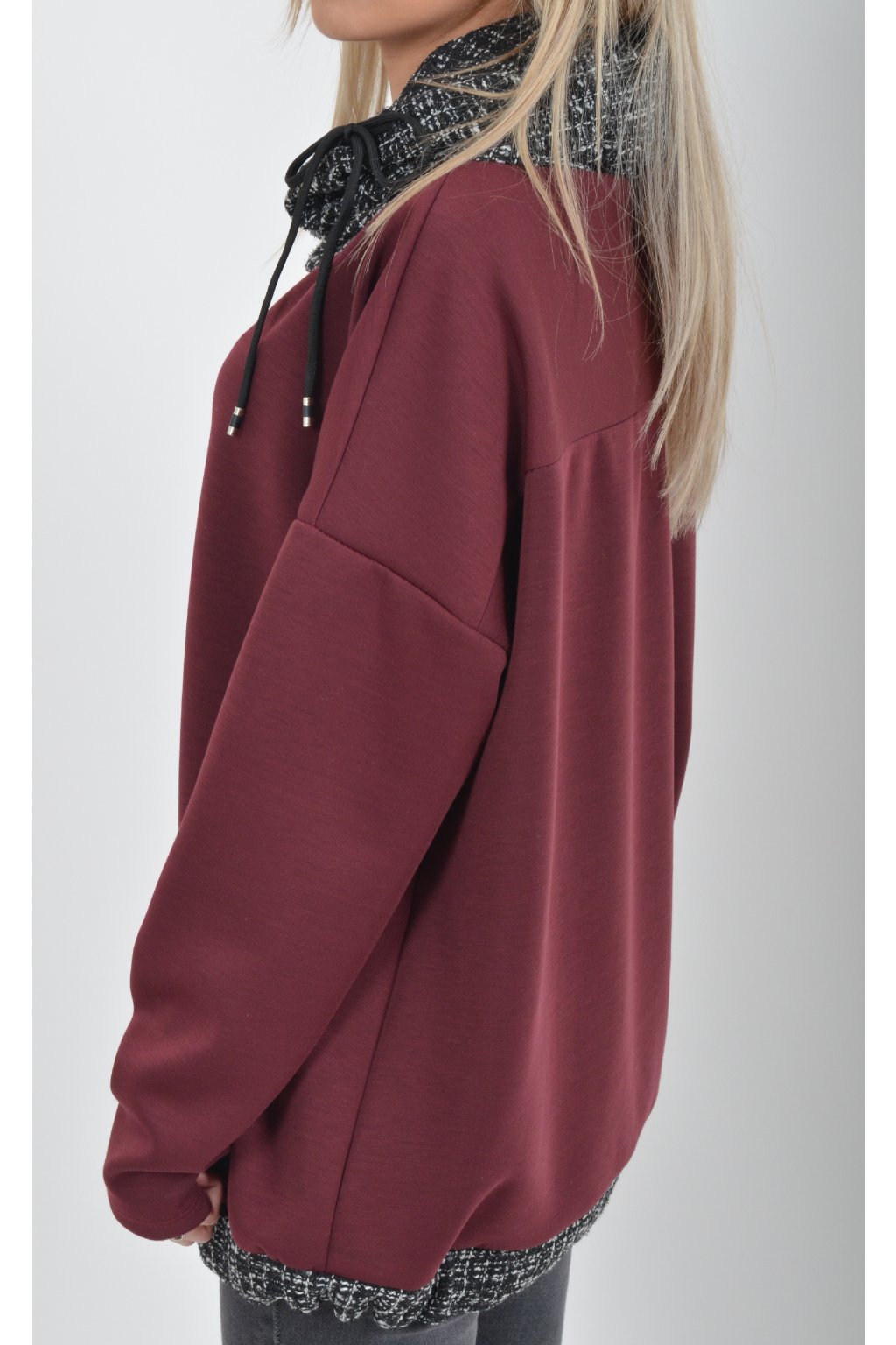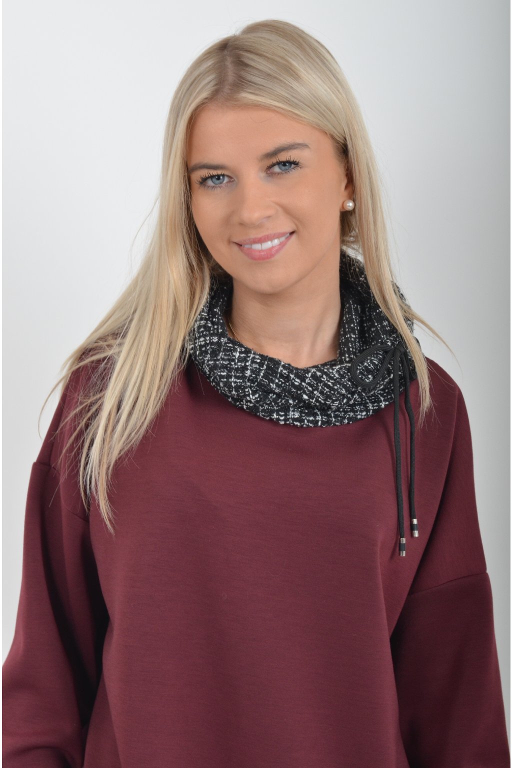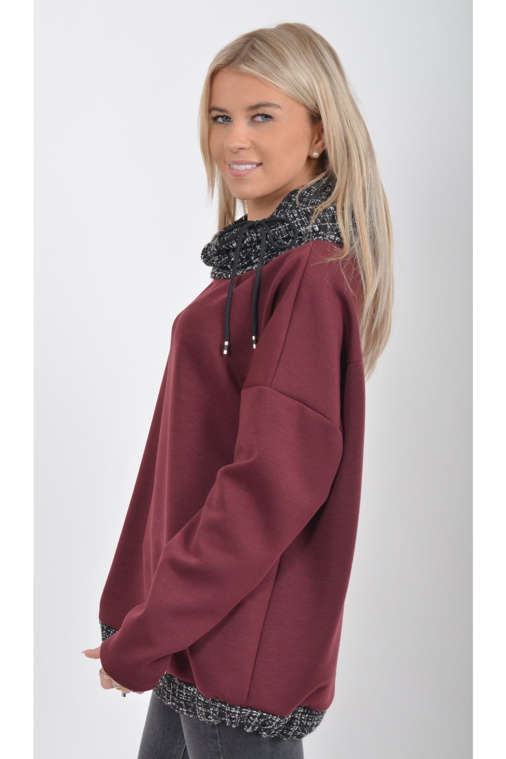 Stylová mikina s ozdobnými lemem a kapucí. Je vyrobena z velice příjemného materiálu na dotek. Ve spodní části má zapracovanou tkaničku, která slouží k libovolnému stažení. Hodí se jak k džínům, tak i k legínám. Heboučký materiál zaručí příjemně strávený den.