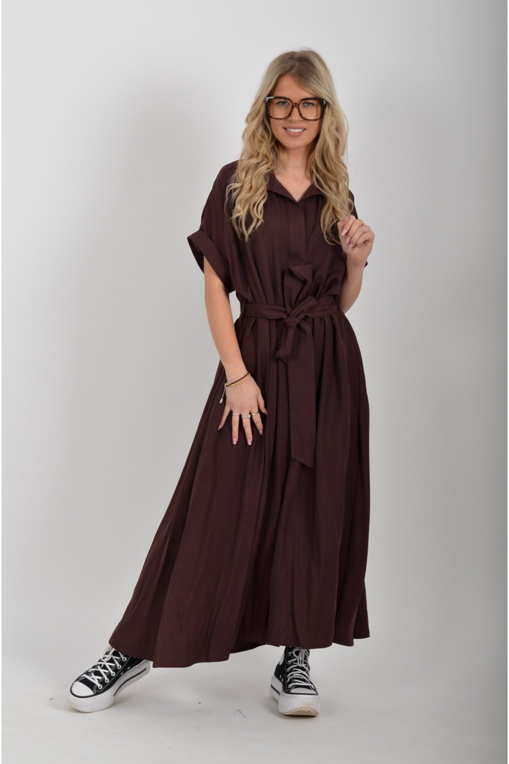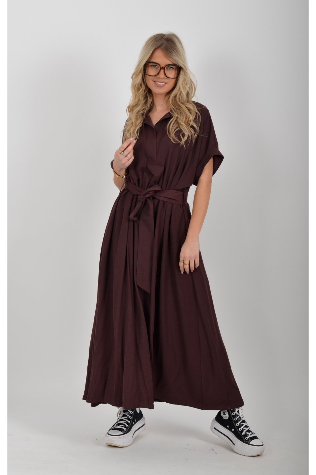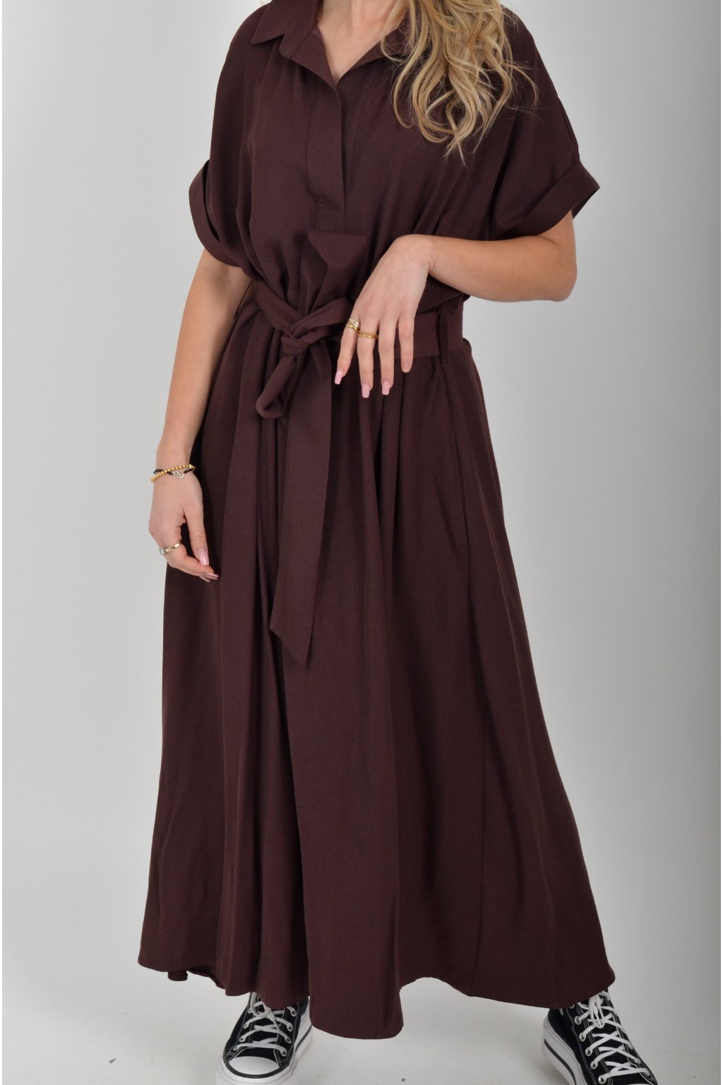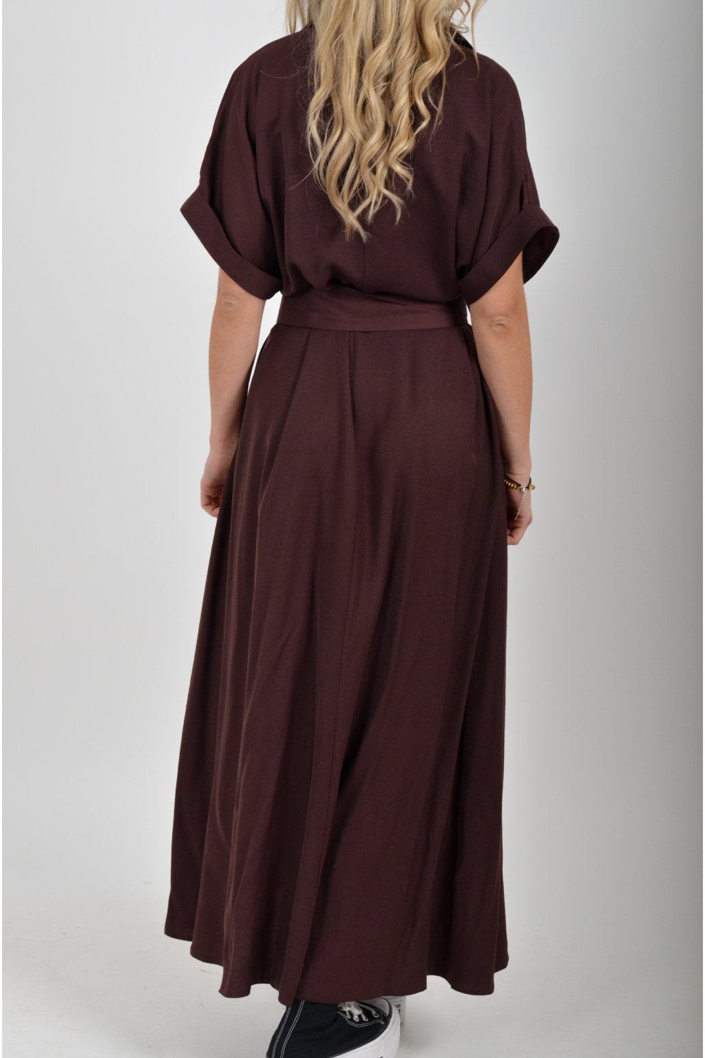 Luxusní šaty od značky La Furia. Mají košilový áčkový střih s rozevlátou sukní, která je v zadní části mírně delší. Šaty mají na bocích kapsy. Jsou vyrobené z velice příjemného prémiového materiálu.