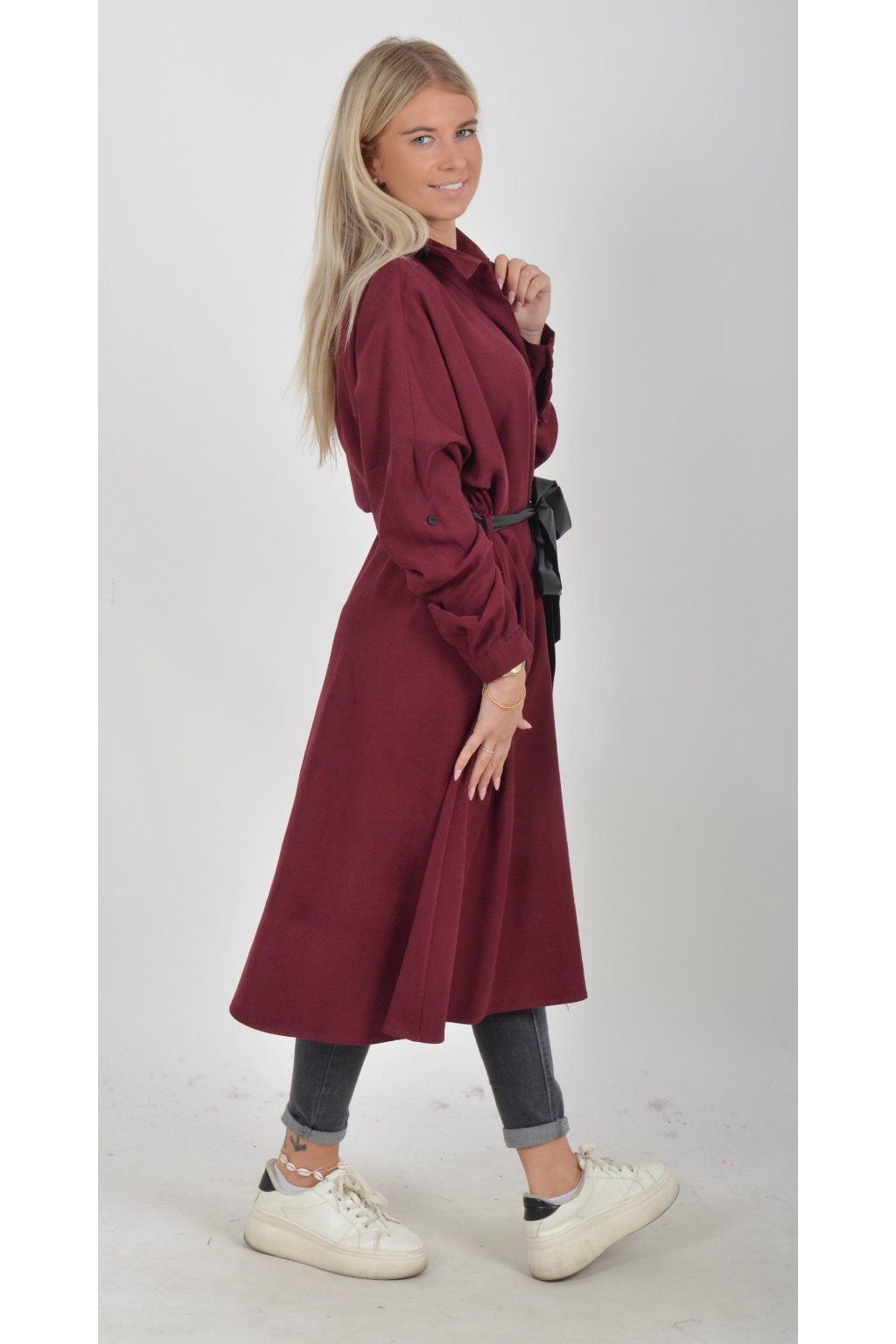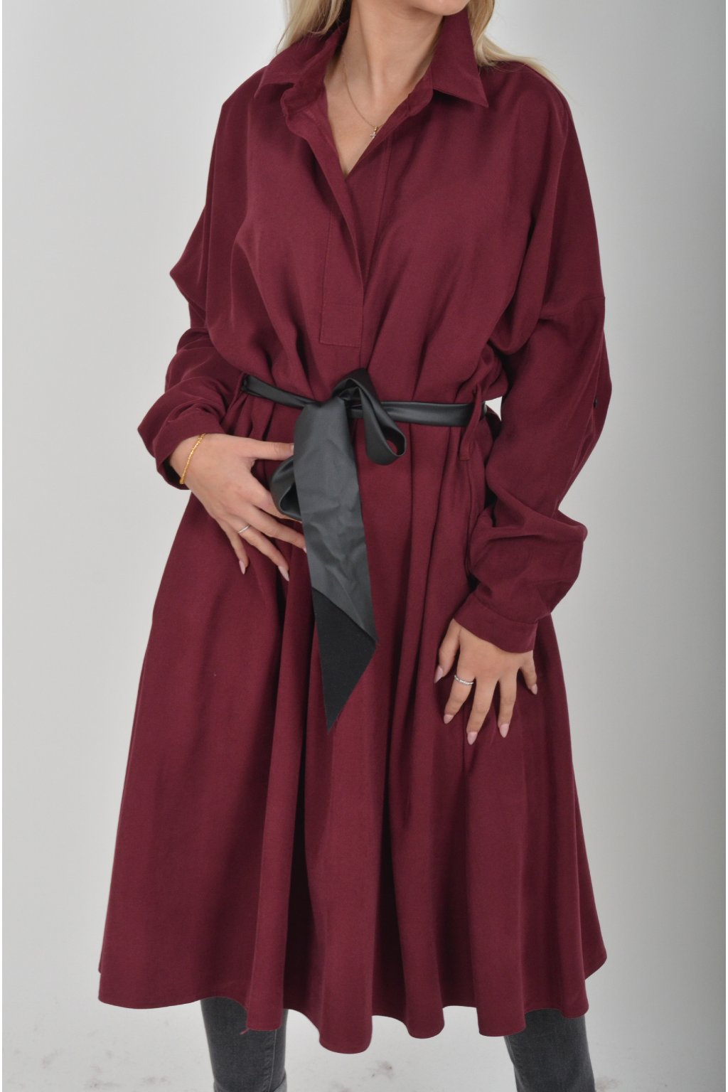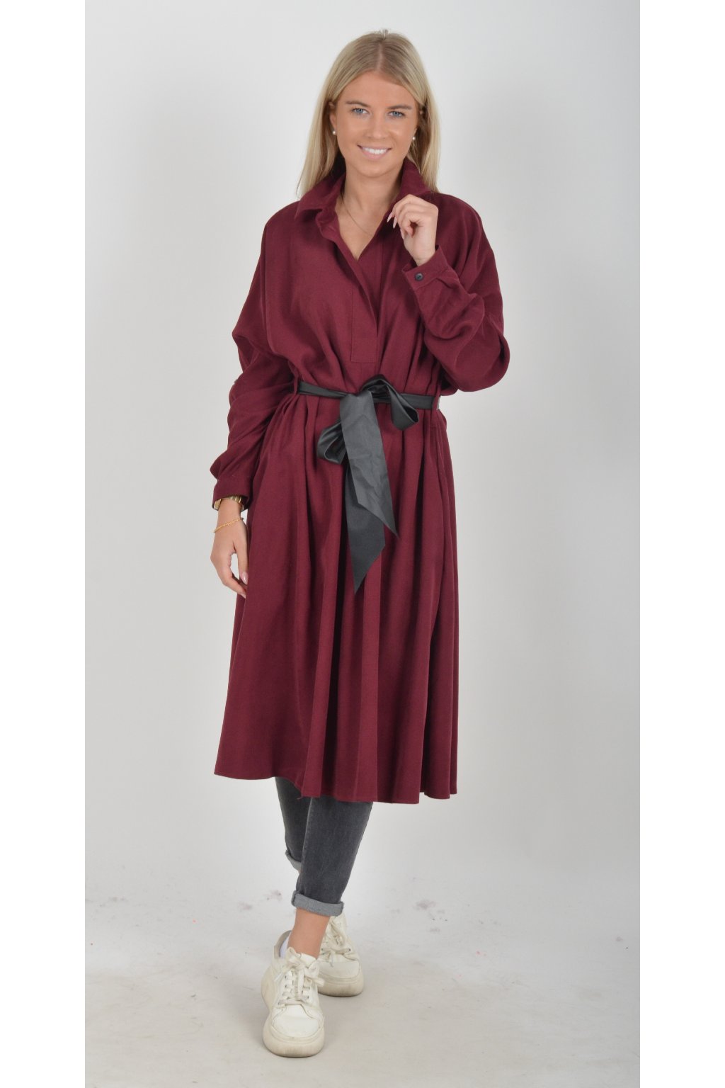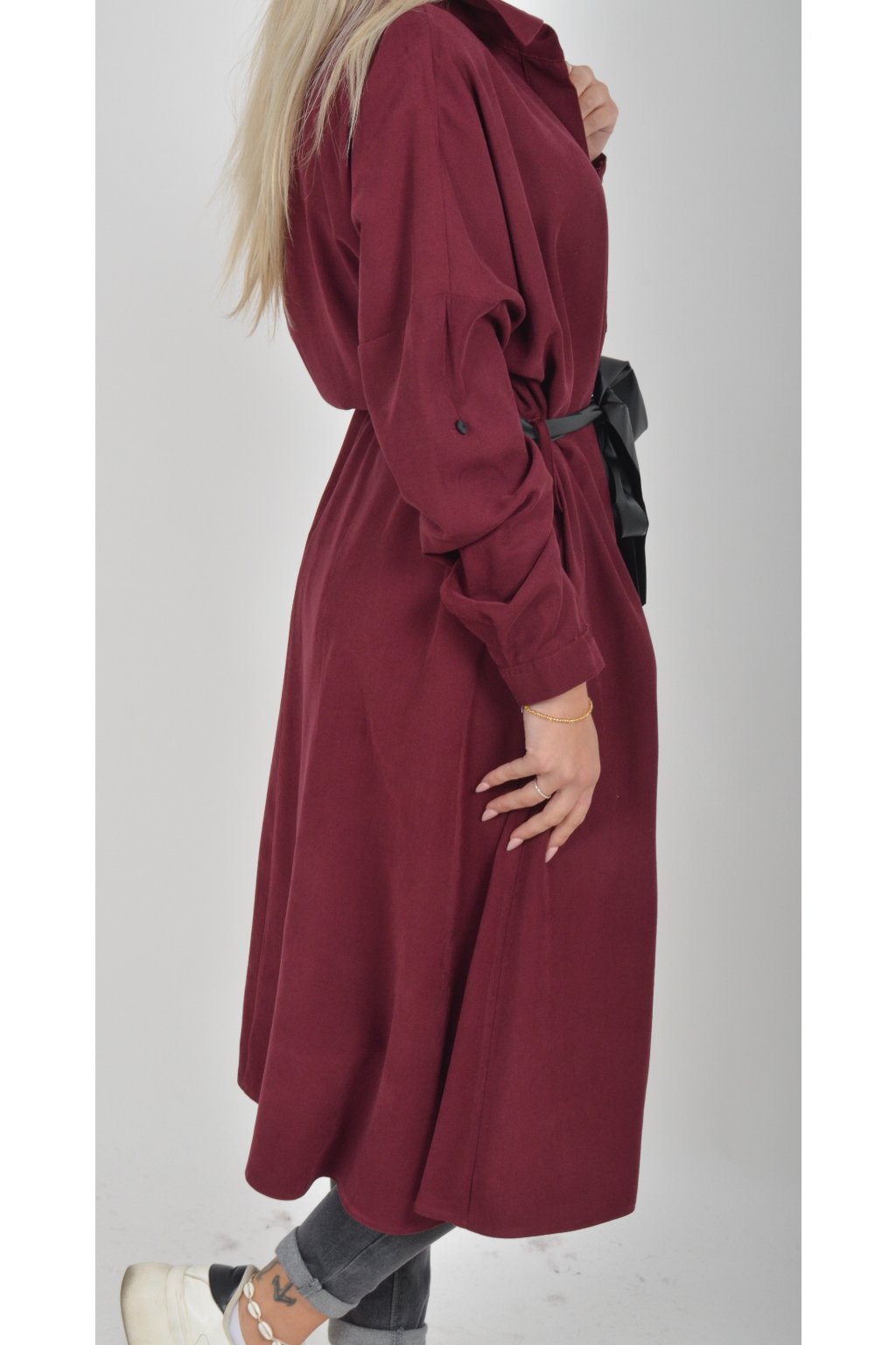 Jednou za dámu, jednou jen tak ven, tyto šaty splní oboje. Mají košilový áčkový střih s rozevlátou sukní, která je v zadní části mírně delší. Šaty mají na bocích kapsy. Rukávy jsou dlouhé, ale dají se zkrátit na knoflíček. Výrazným doplňkem šatů je pásek s imitací kůže, který můžete jakkoliv vázat a kombinovat. K šatům doporučujeme ozdobnou brož nebo šperky z naší kolekce.