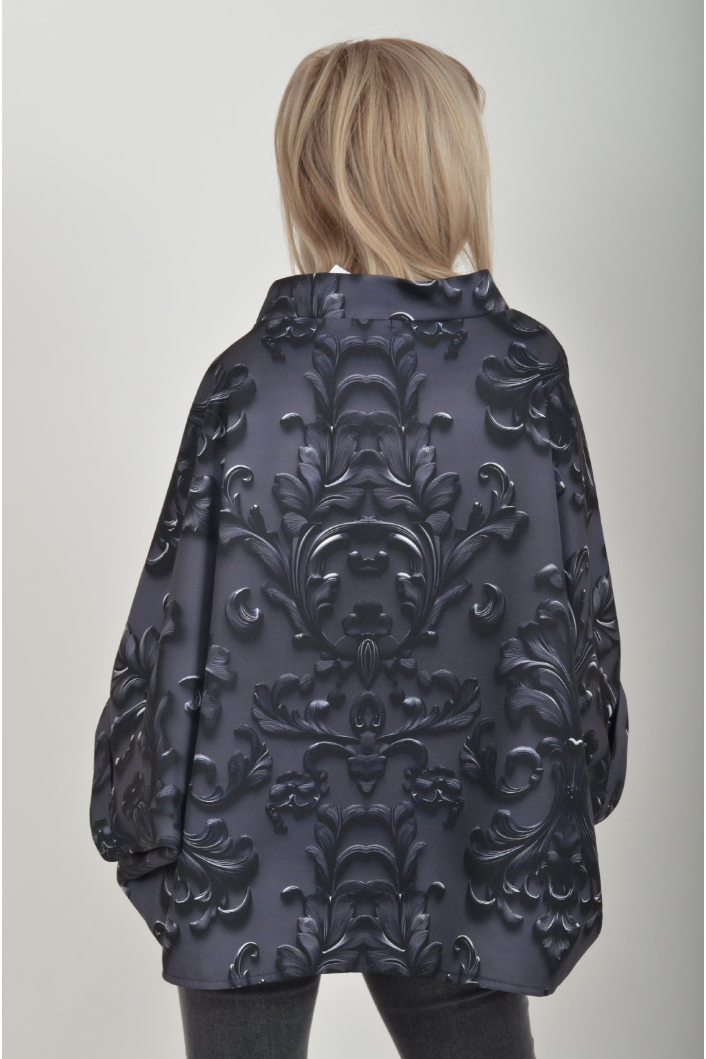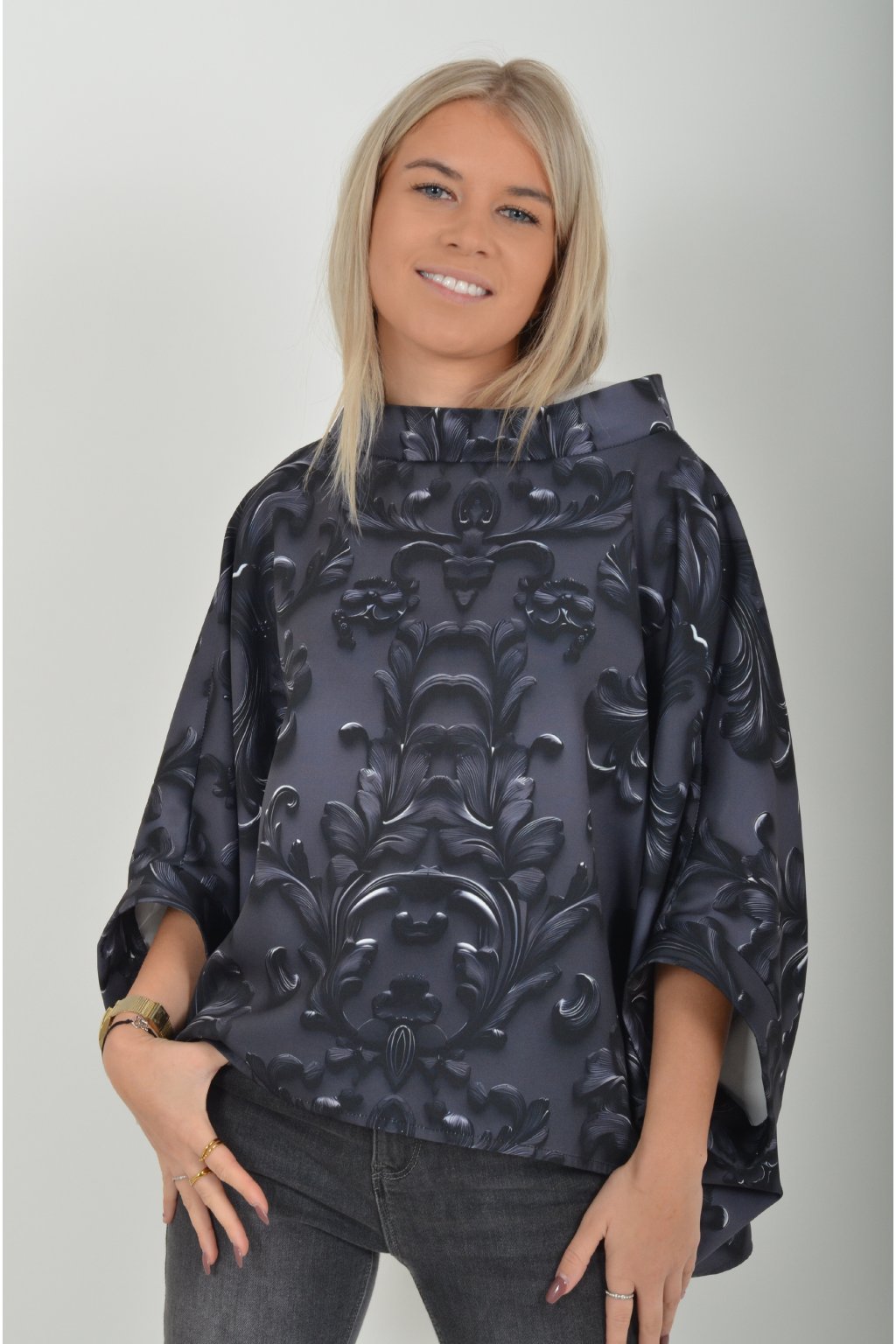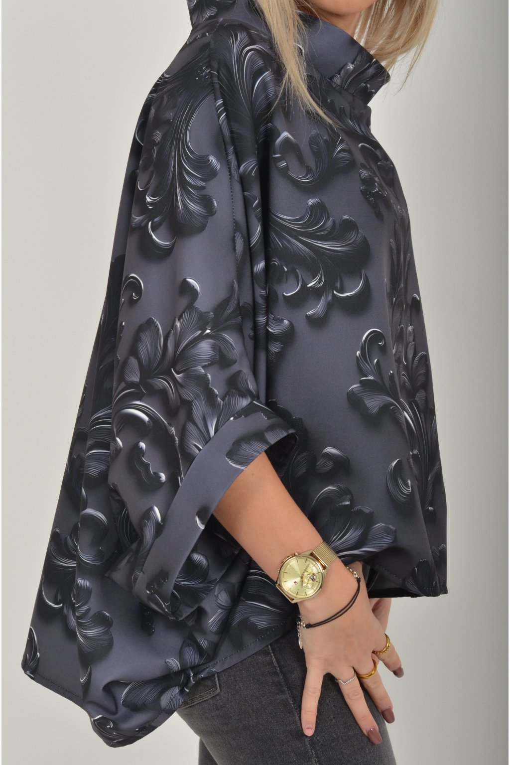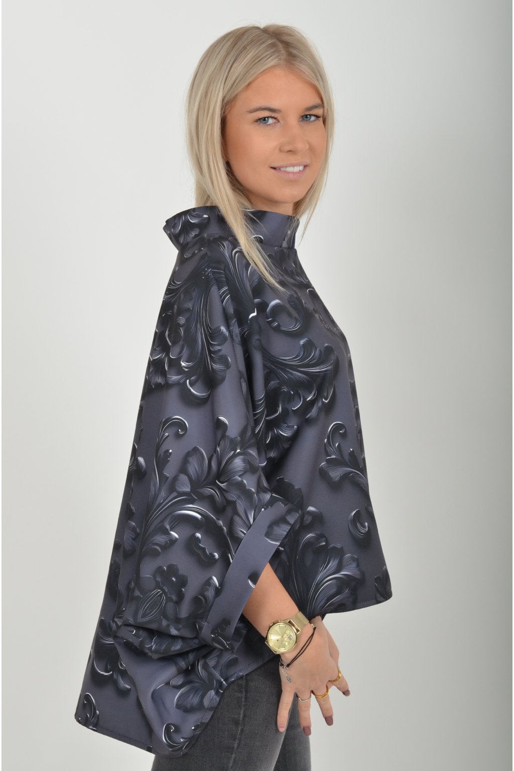 Halenka s netopýřím rukávem vhodná jak pro společenské události, tak i volnočasové nošení. Je vyrobena z velice příjemného a pevného materiálu. Přední část halenky je kratší než zadní. Je volnějšího střihu.